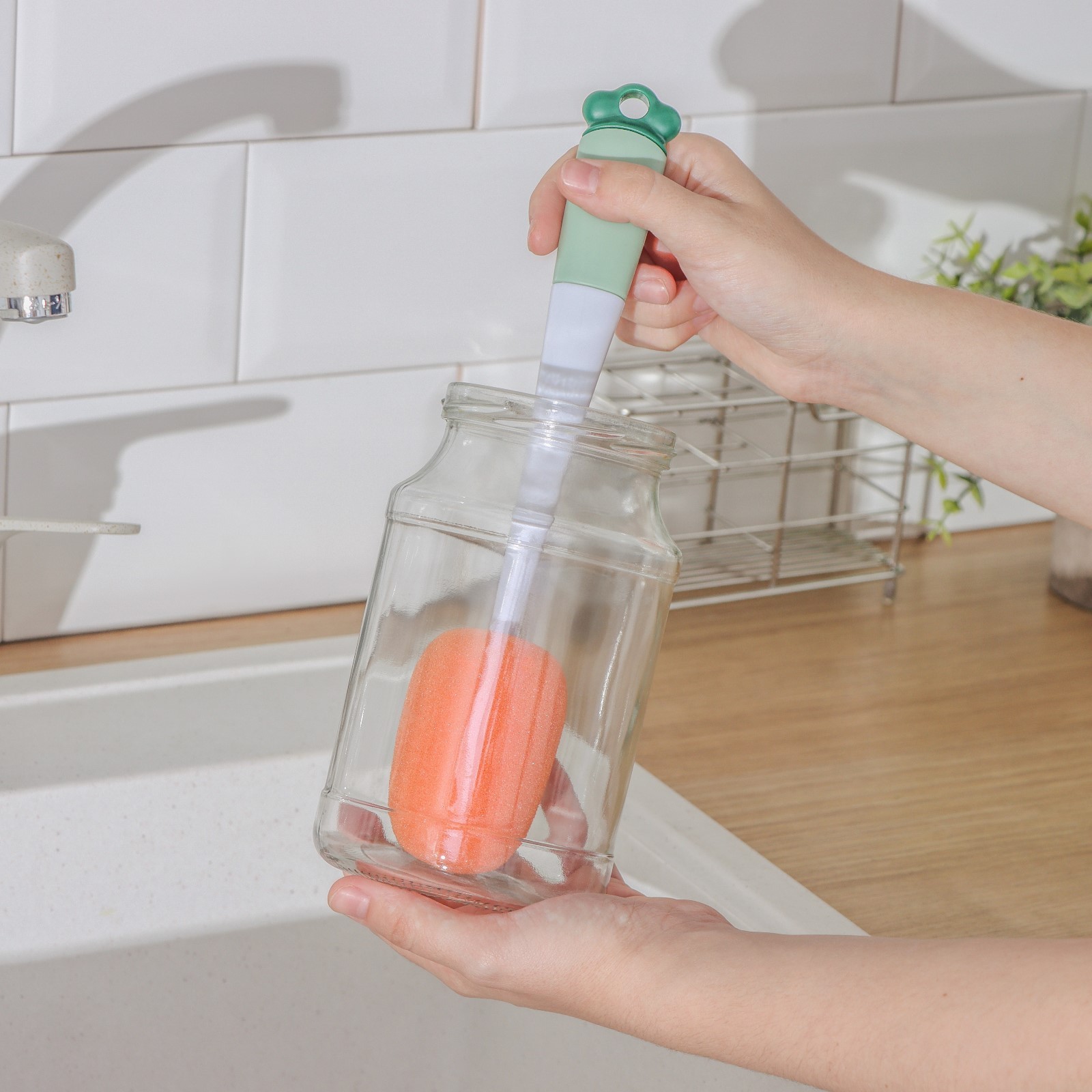 Ершик-щетка для мытья бутылочек, с двумя дополнительными щетками, губка 5 см, длина 28 см