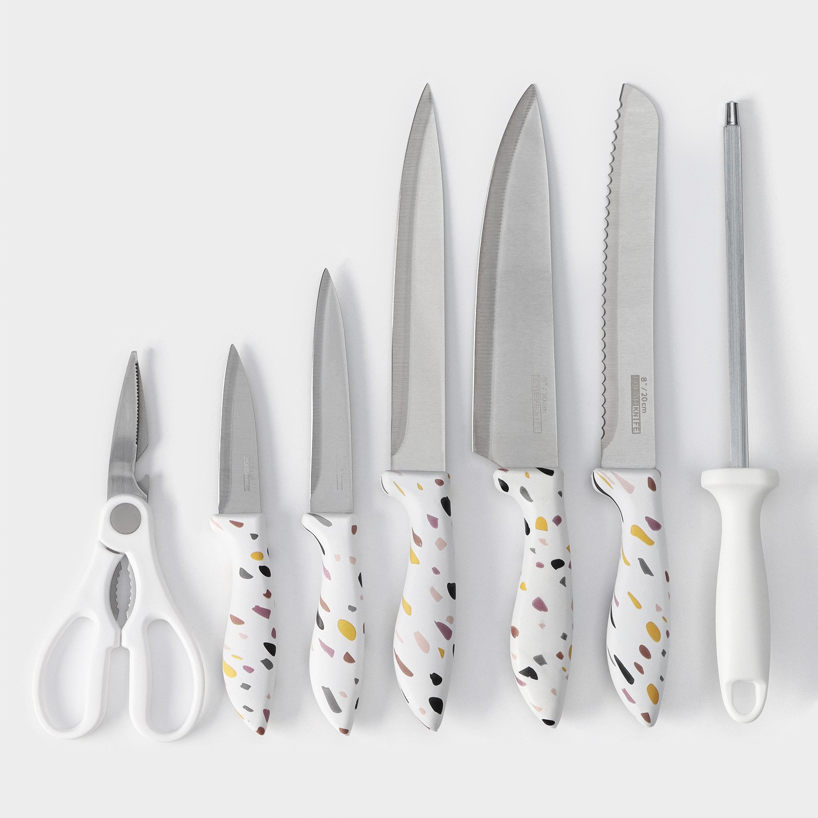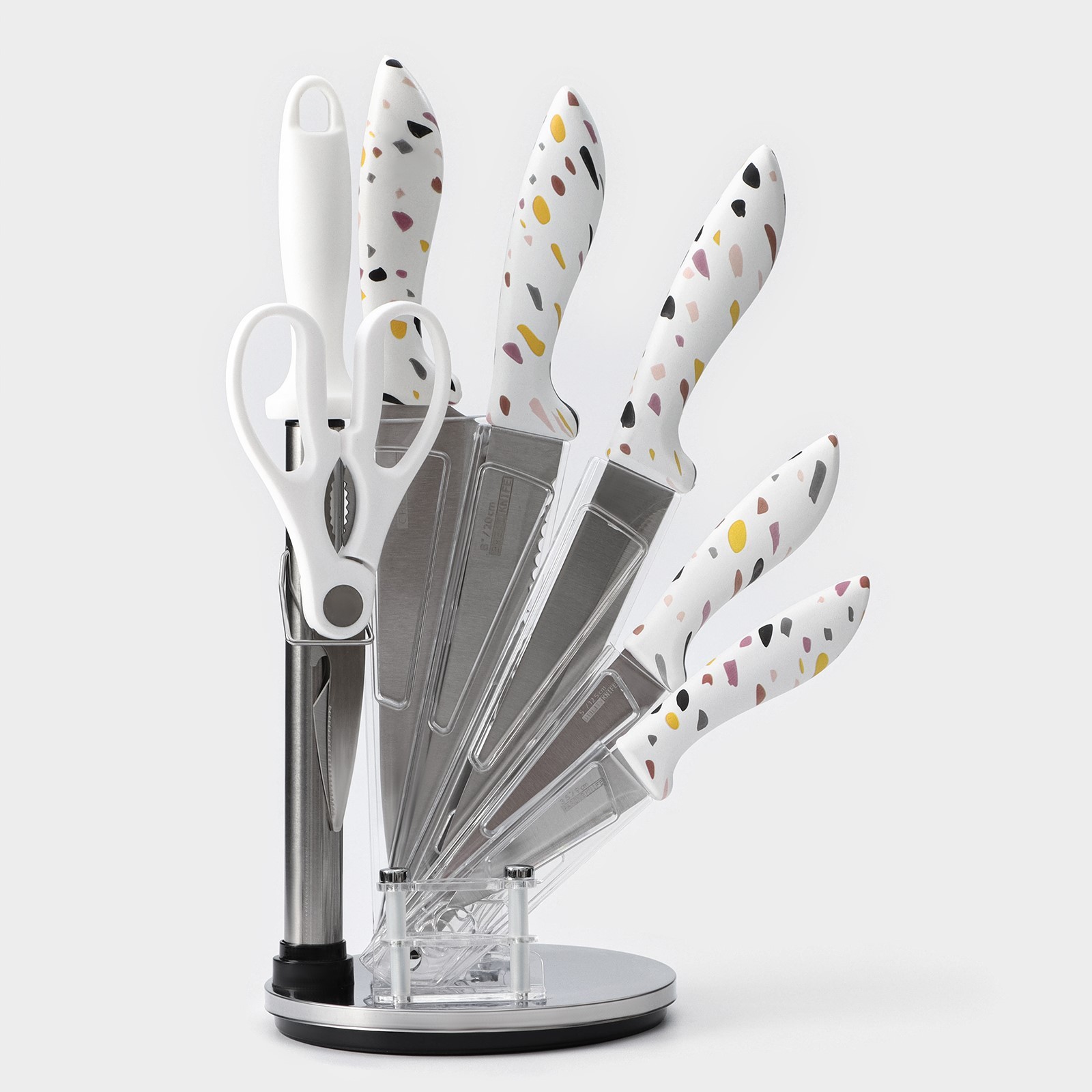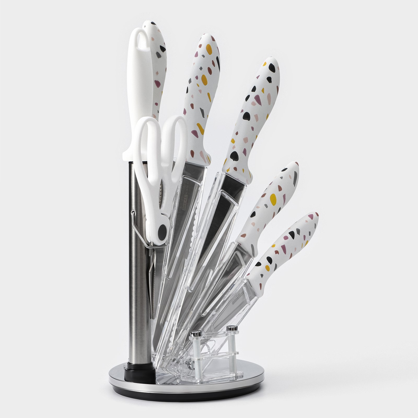 Набор кухонных принадлежностей на подставке доляна Sparkle, 7 предметов: 5 ножей, мусат и ножницы