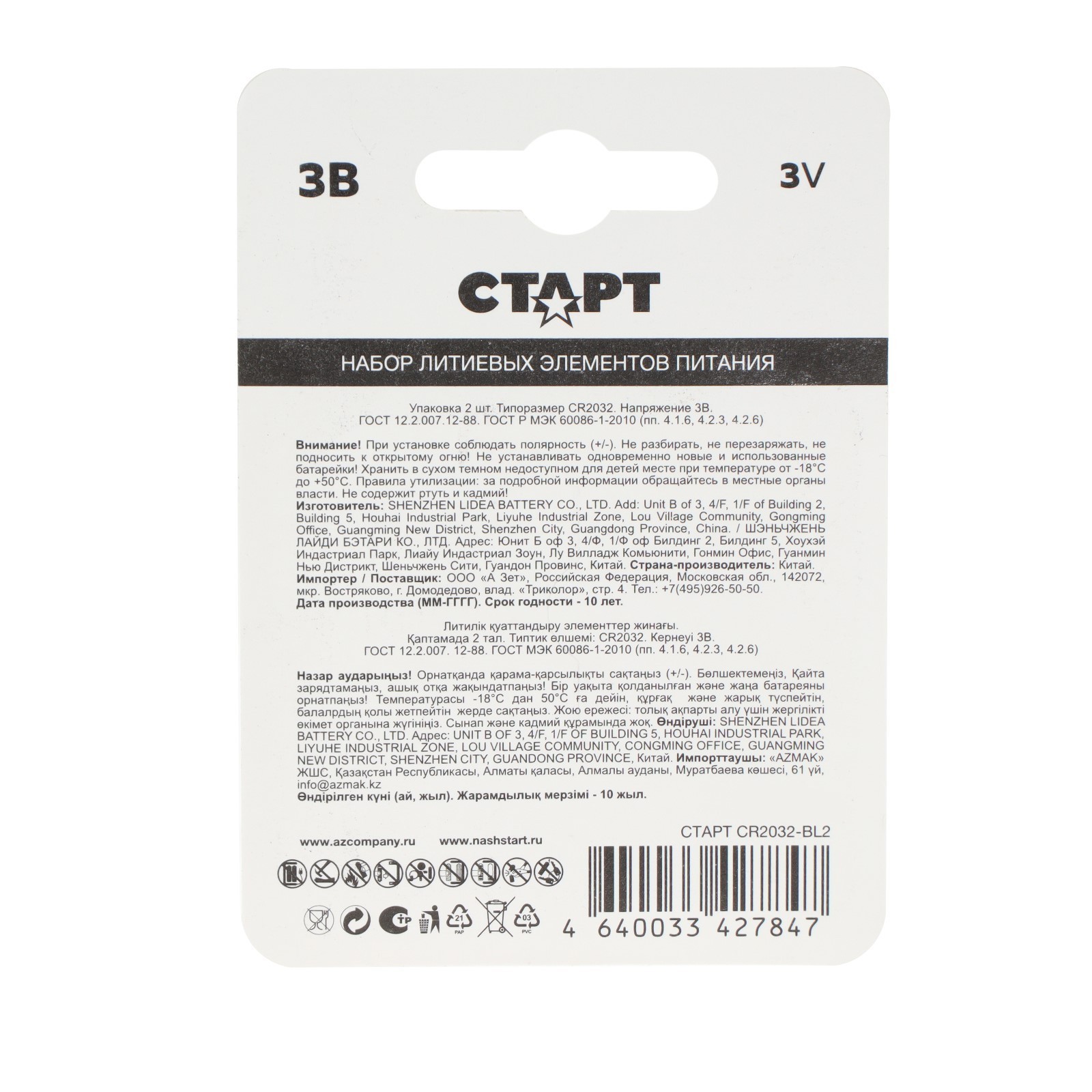 Батарейка литиевая старт, Cr2032-2bl, 3в, блистер, 2 шт.