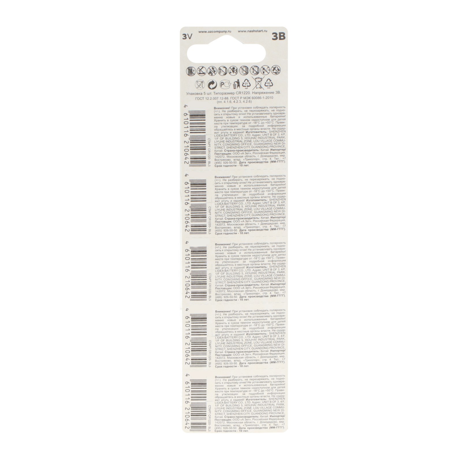 Батарейка литиевая старт, Cr1220-5bl, 3в, блистер, 5 шт.