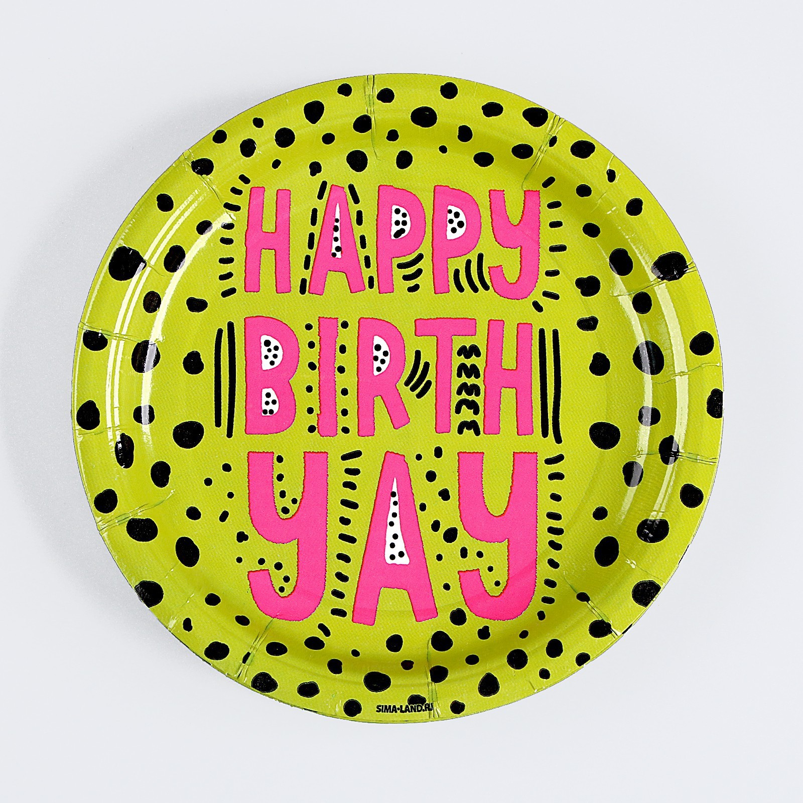 Тарелка одноразовая бумажная «happy Birthday. яркая», 18 см