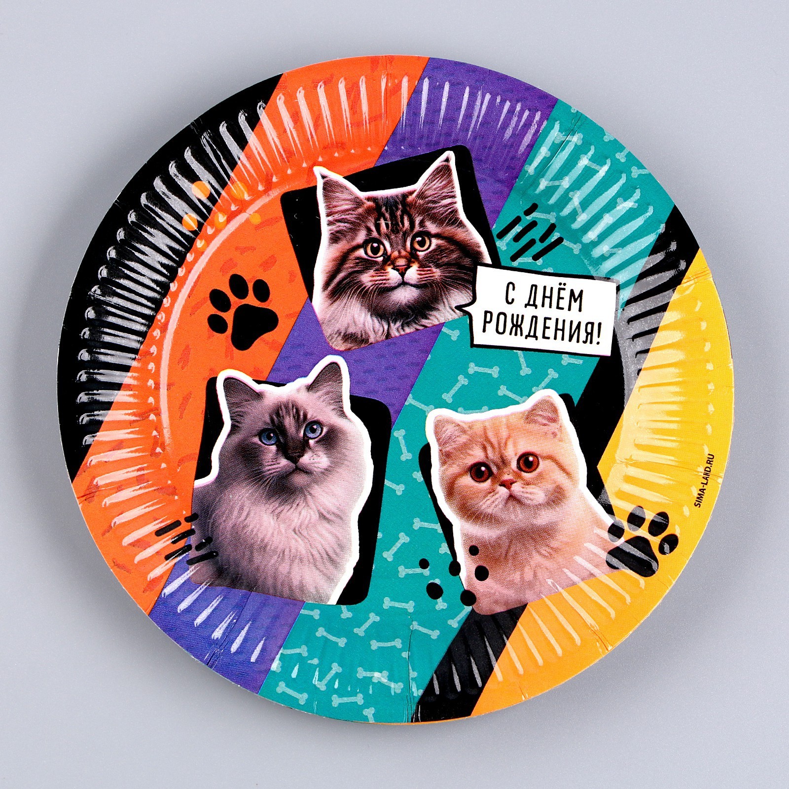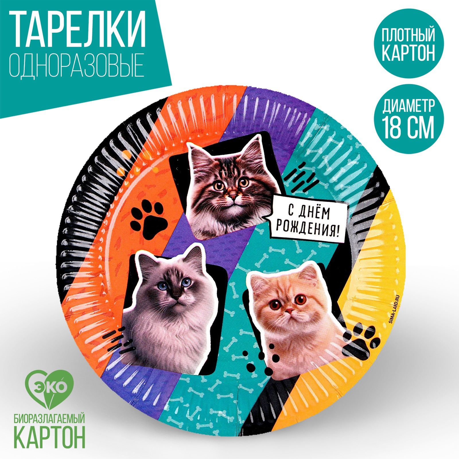 Тарелка одноразовая бумажная "с днём рождения",коты, 18 см