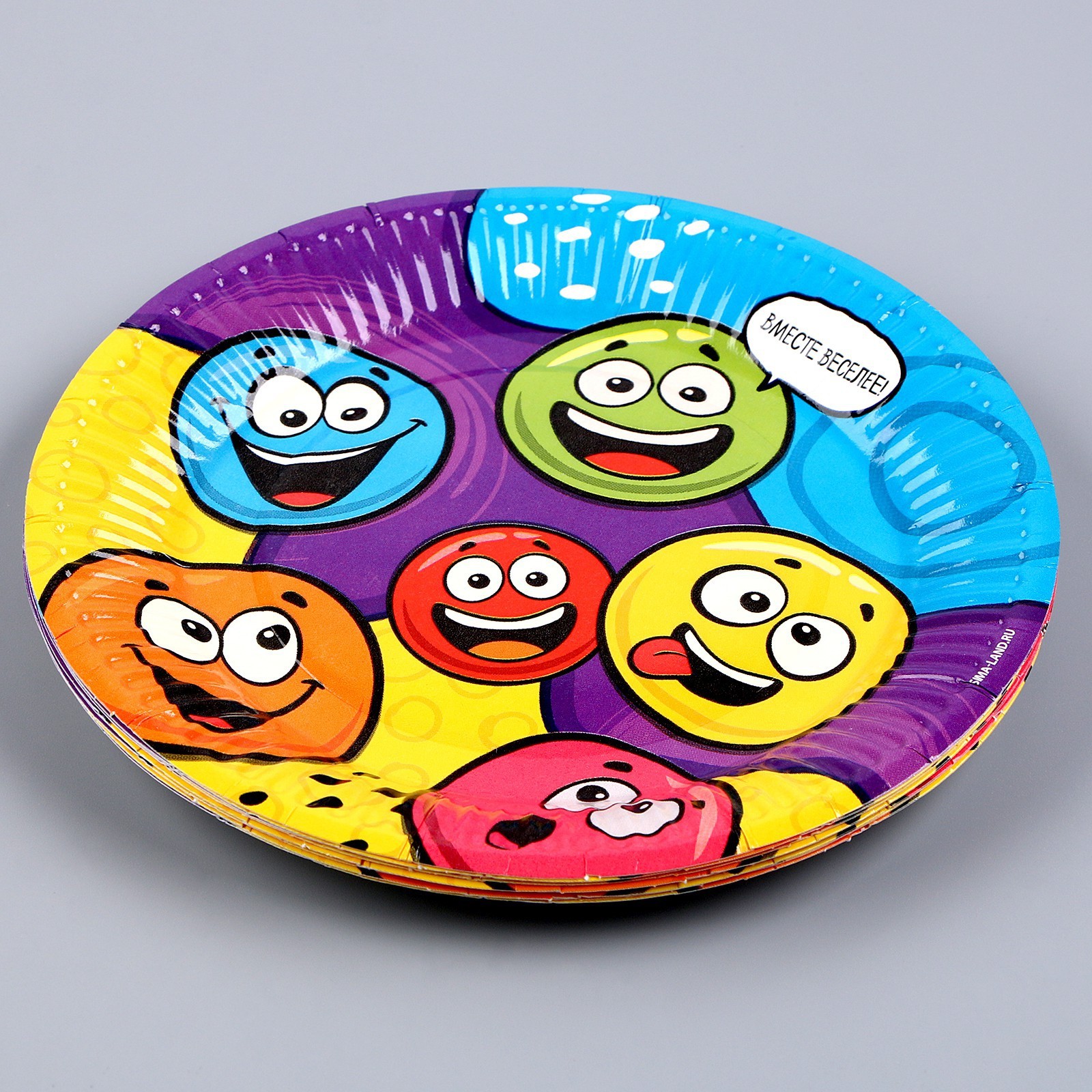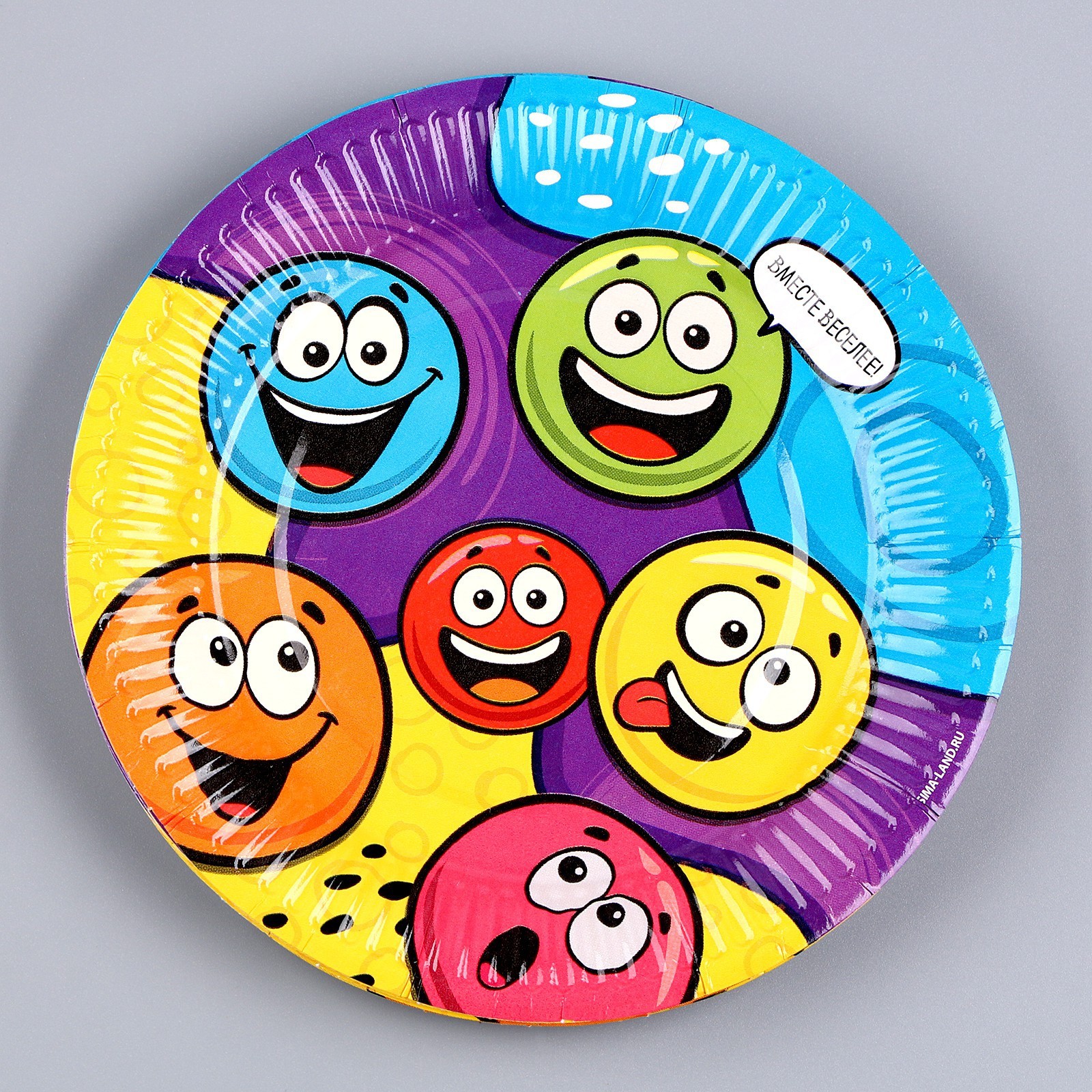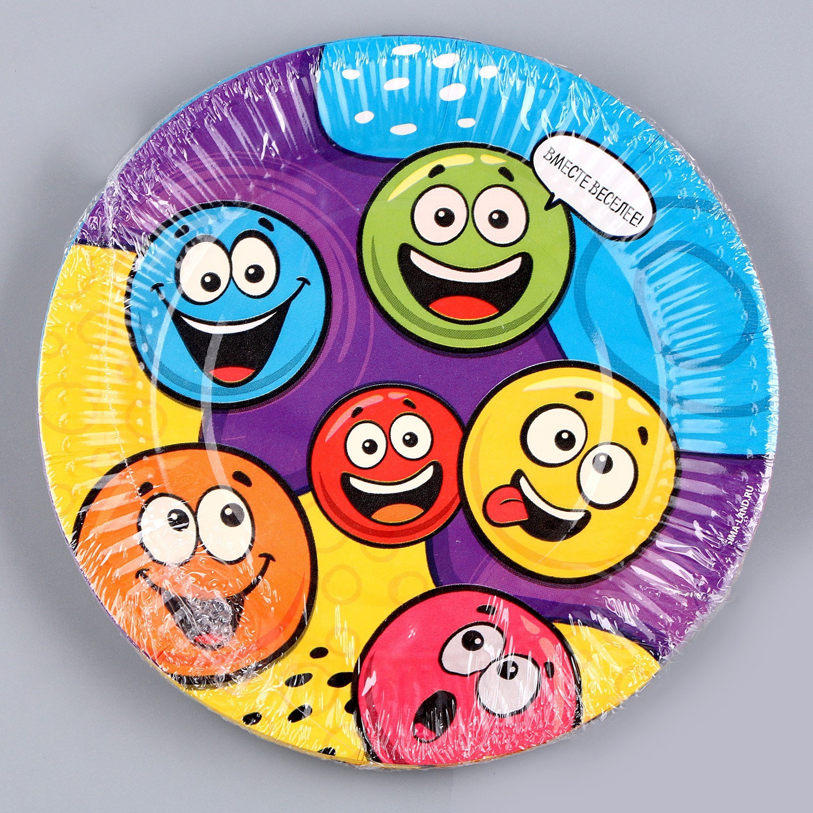 Тарелка одноразовая бумажная "смайлы", 18 см