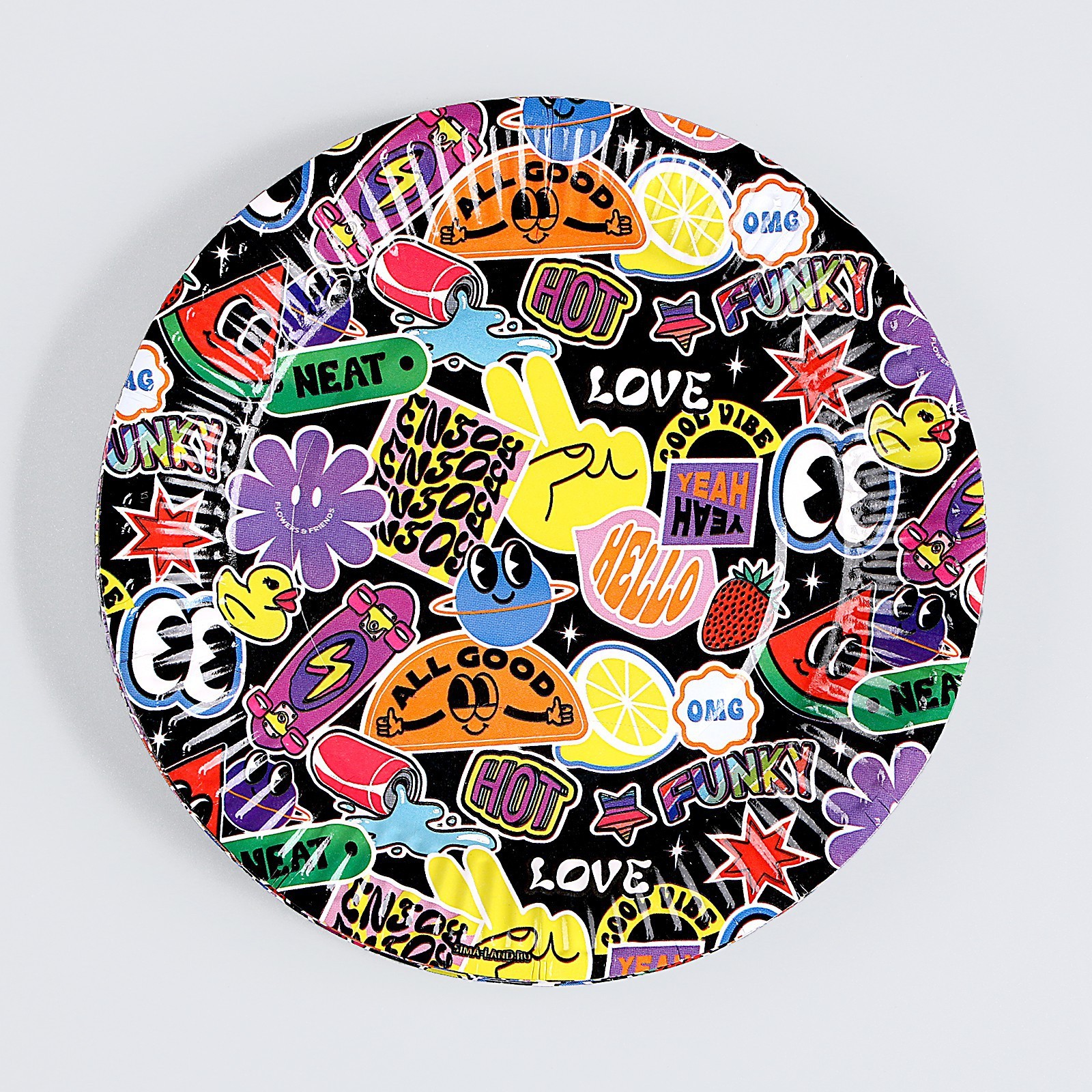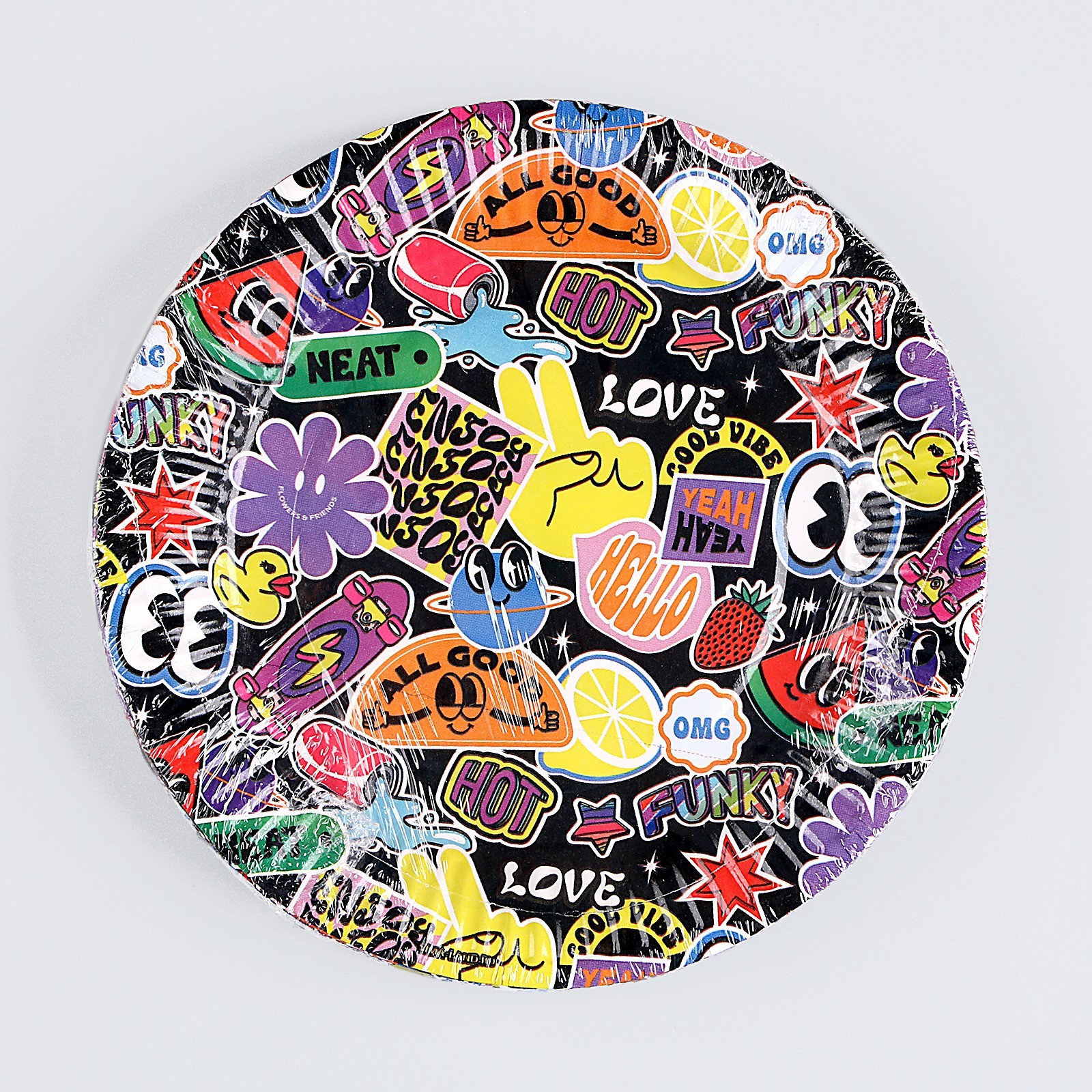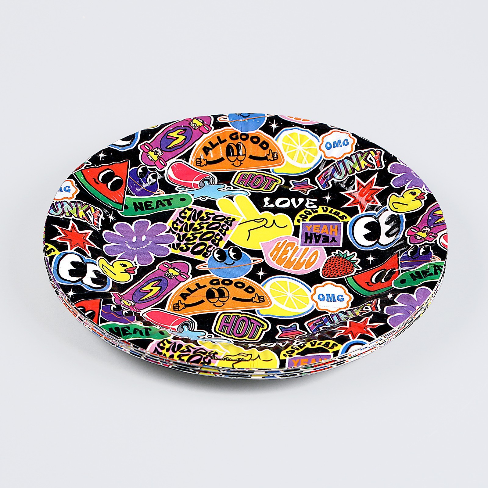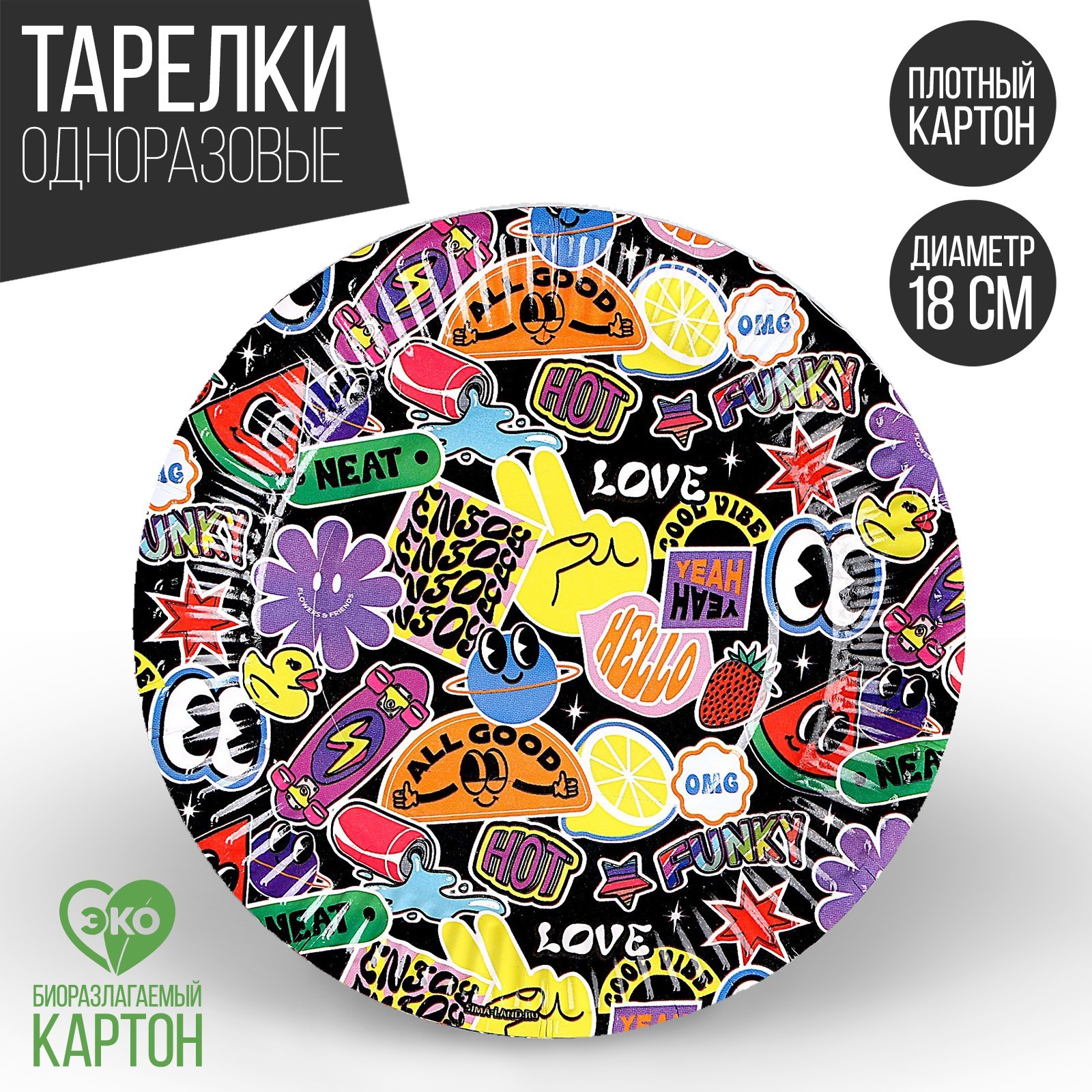 Тарелка одноразовая бумажная "стикеры", 18 см