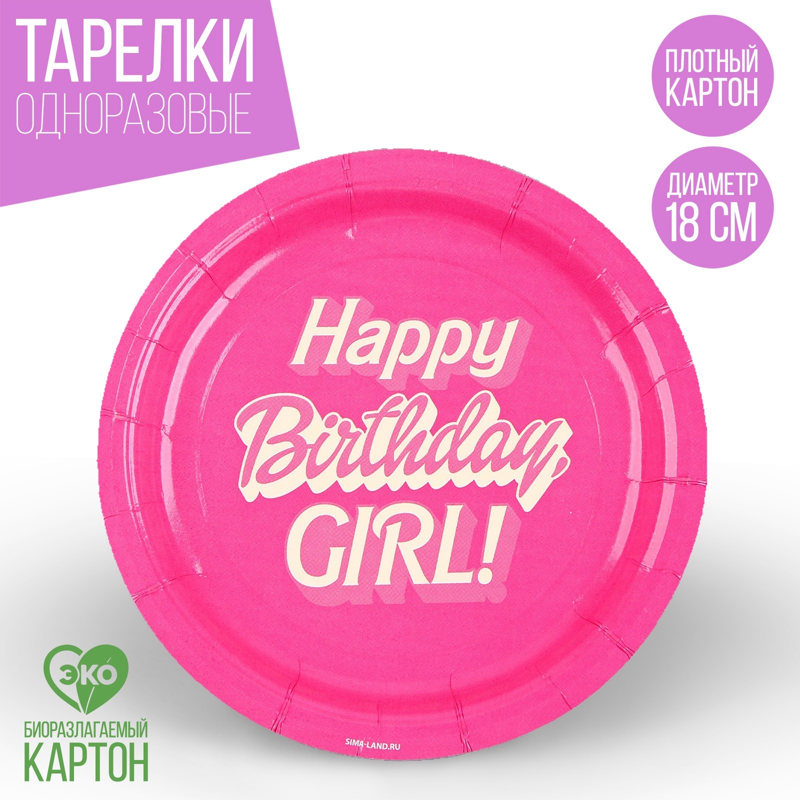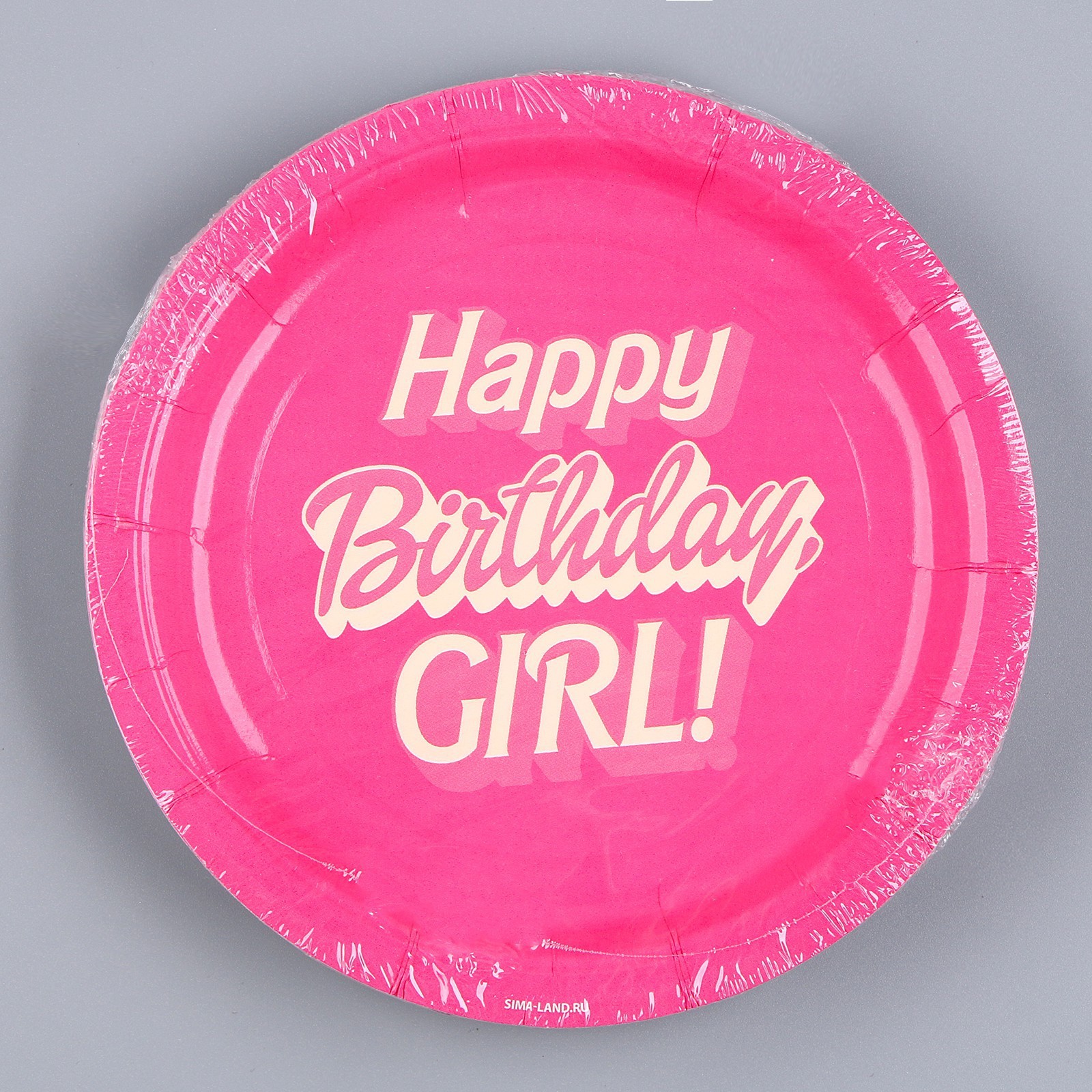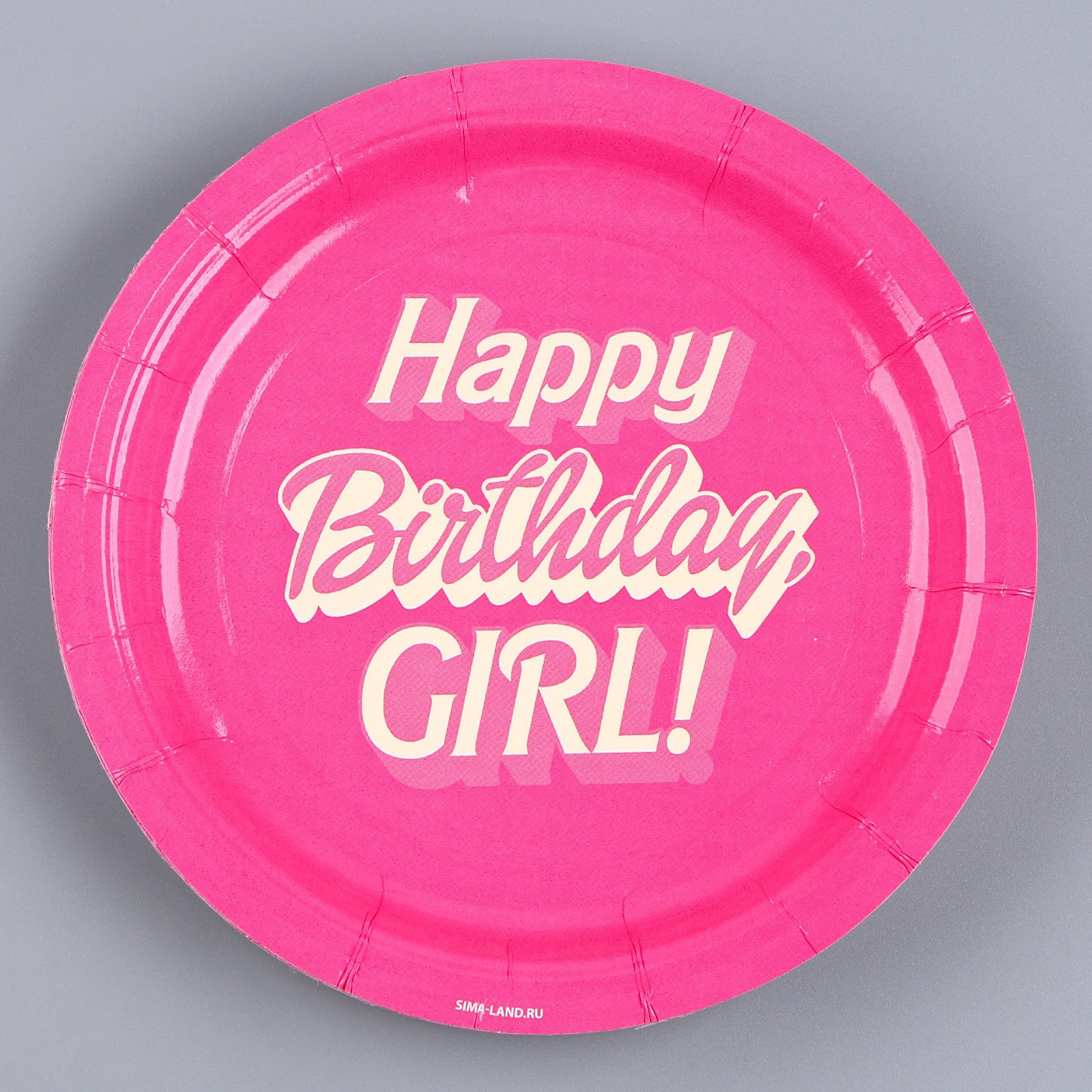 Тарелка одноразовая бумажная "Happy Birthday,girl", кукла, 18 см