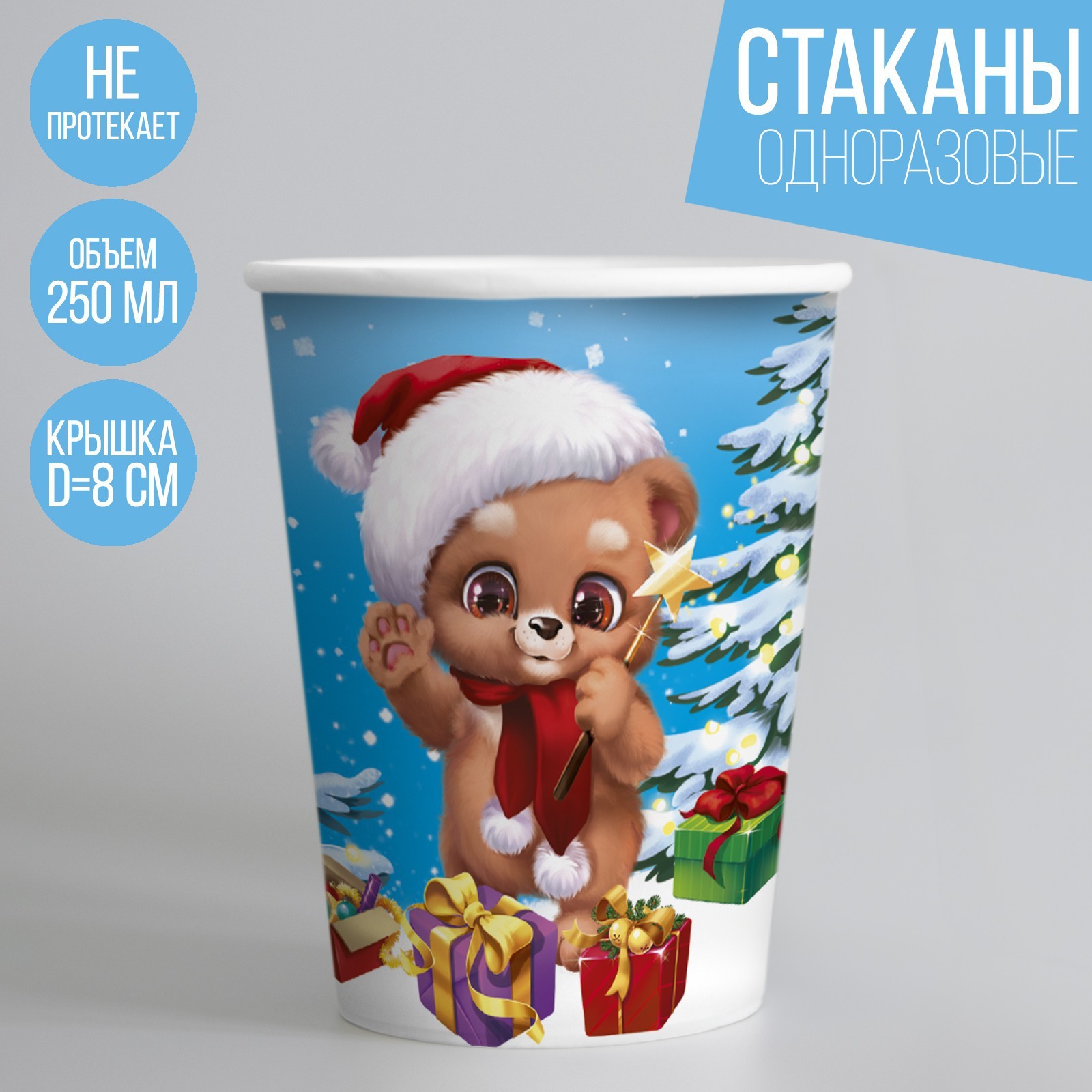 Новогодний стакан одноразовый бумажный одноразовый «с новым годом», мишка