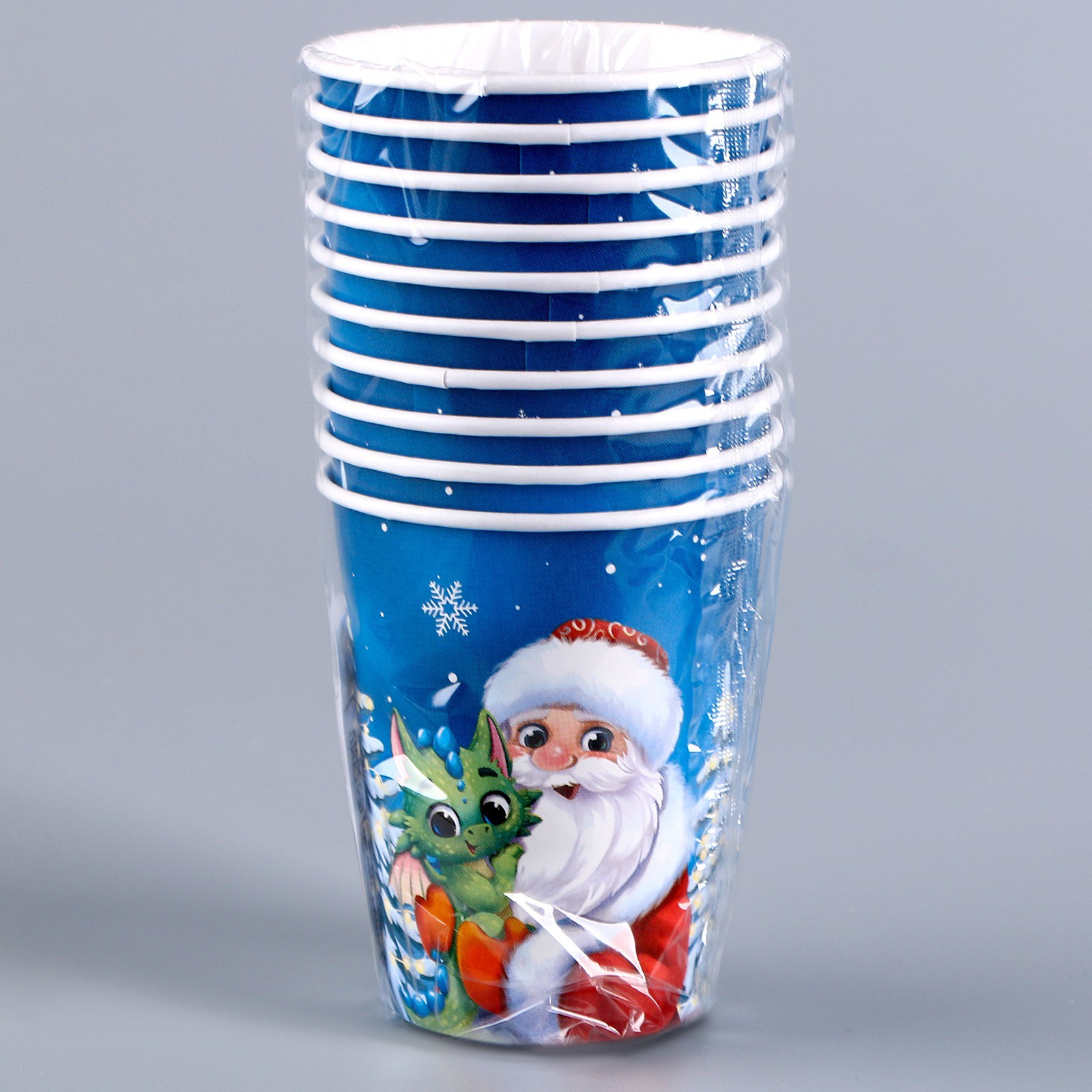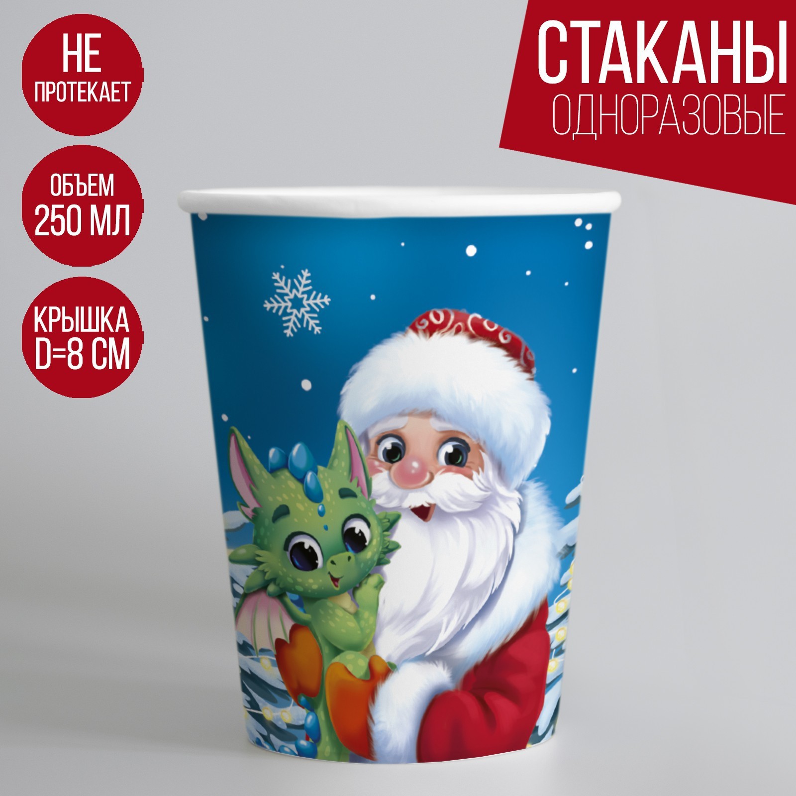 Стакан одноразовый бумажный «с новым годом», дед мороз, 250 мл
