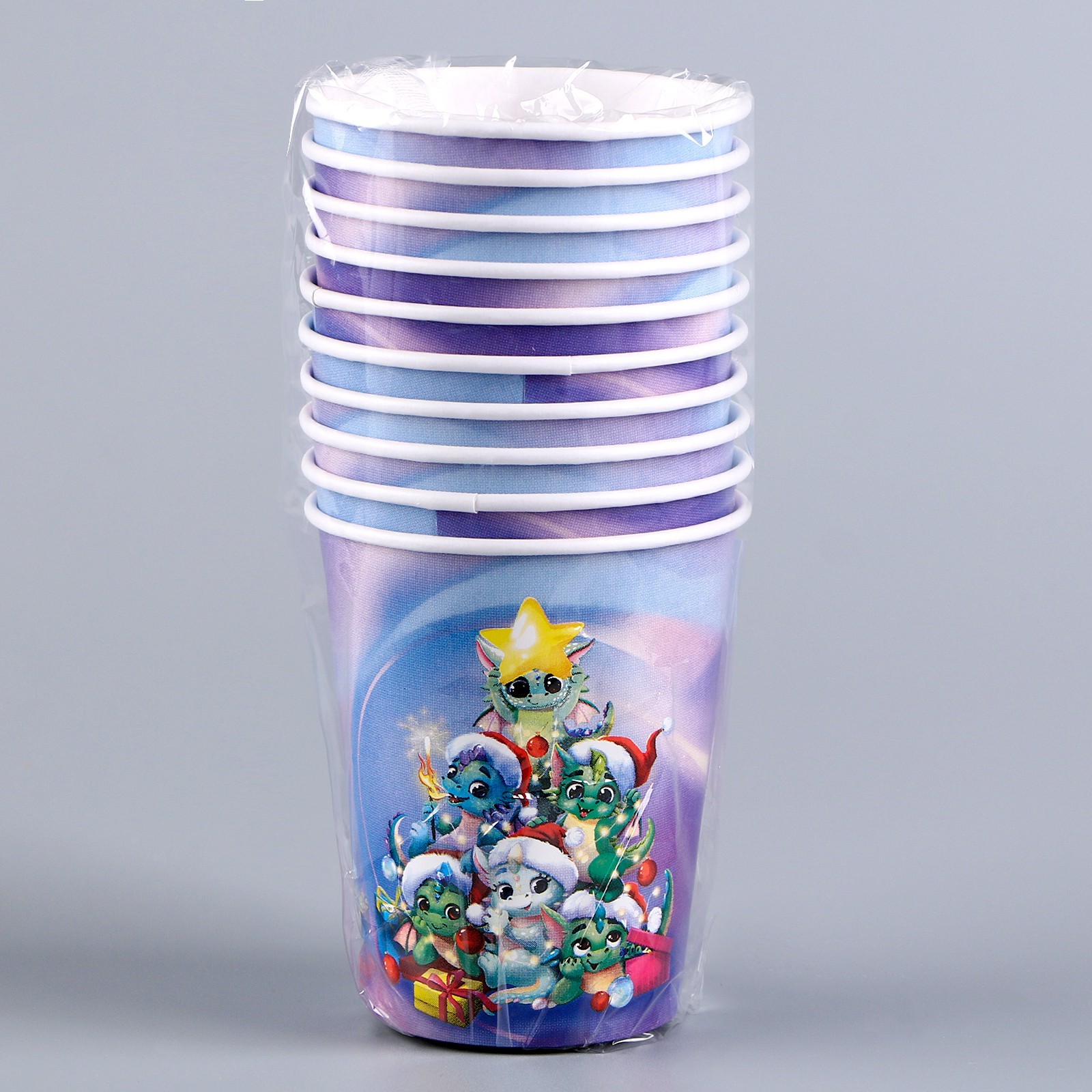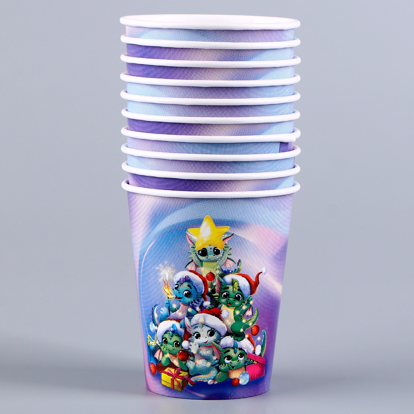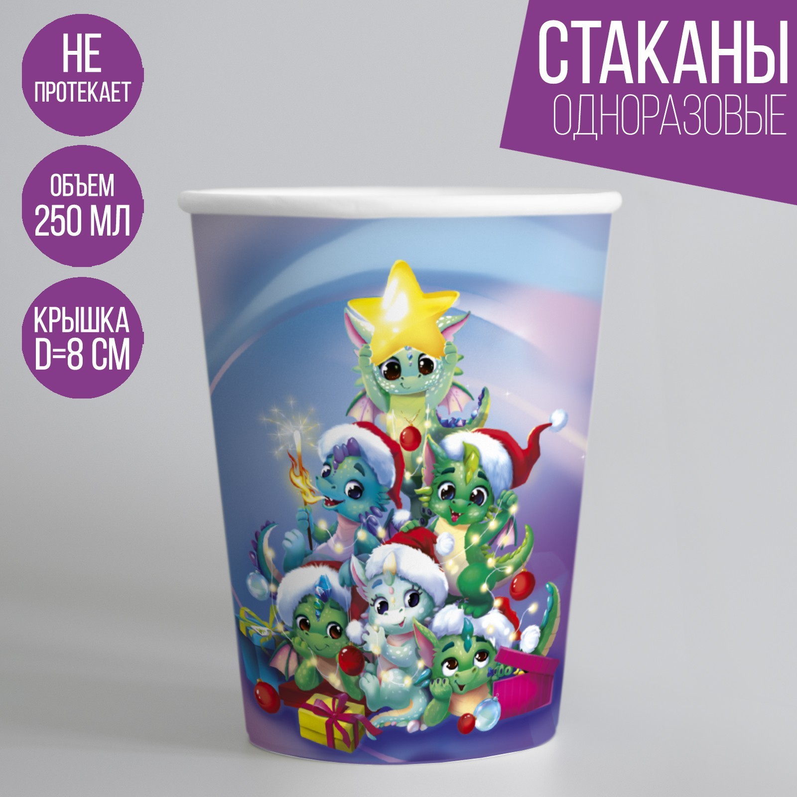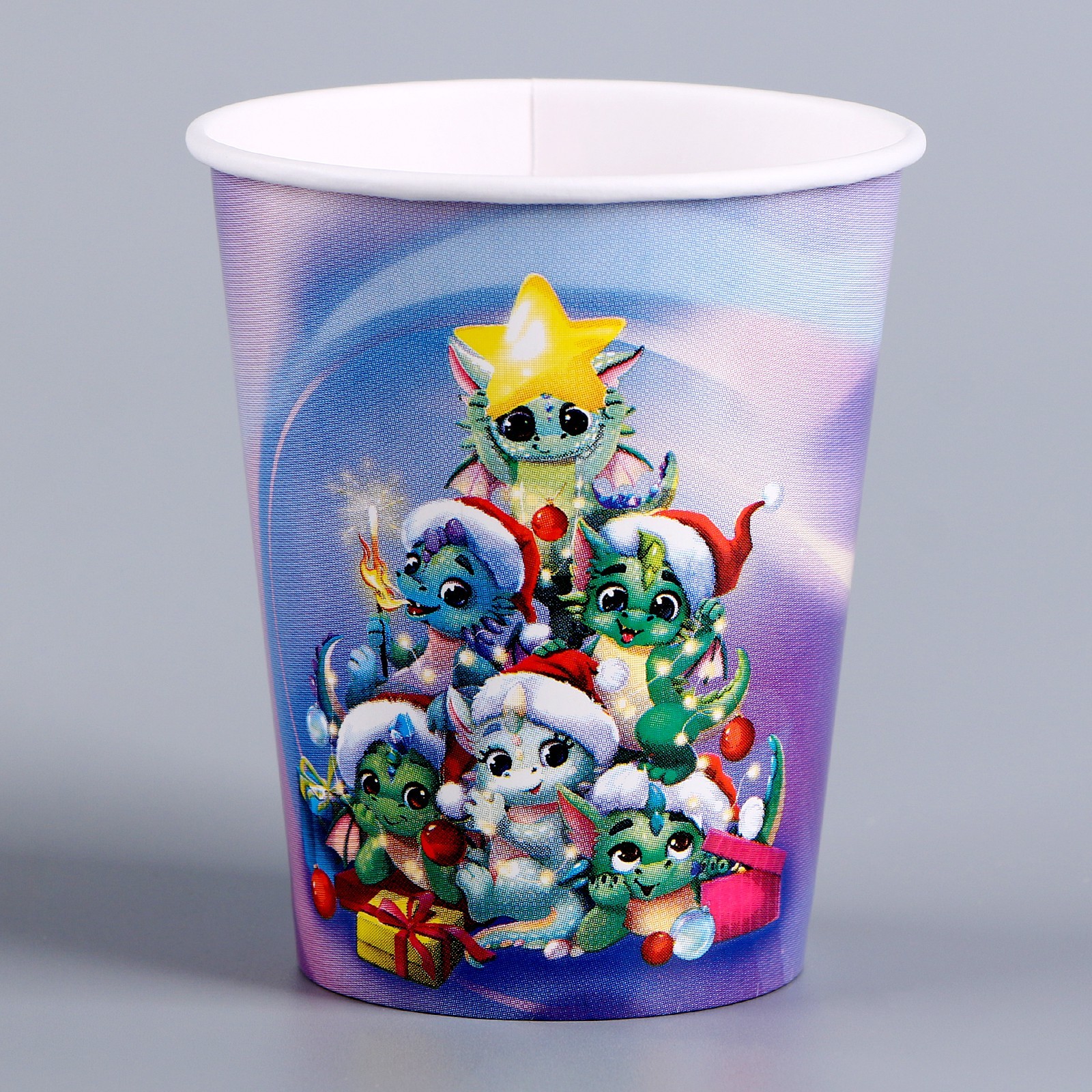 Стакан одноразовый бумажный «с новым годом», ёлка и драконы, 250 мл