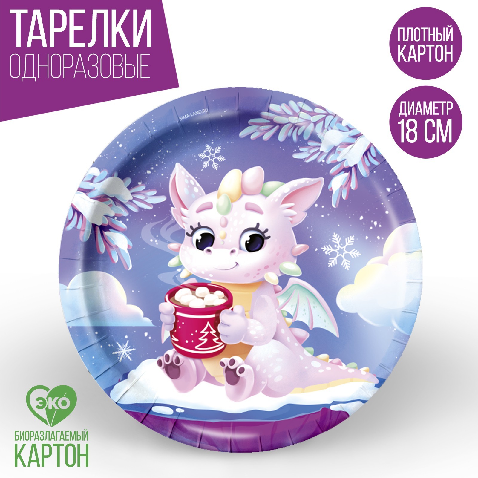 Тарелка одноразовая бумажная «с новым годом», дракоша