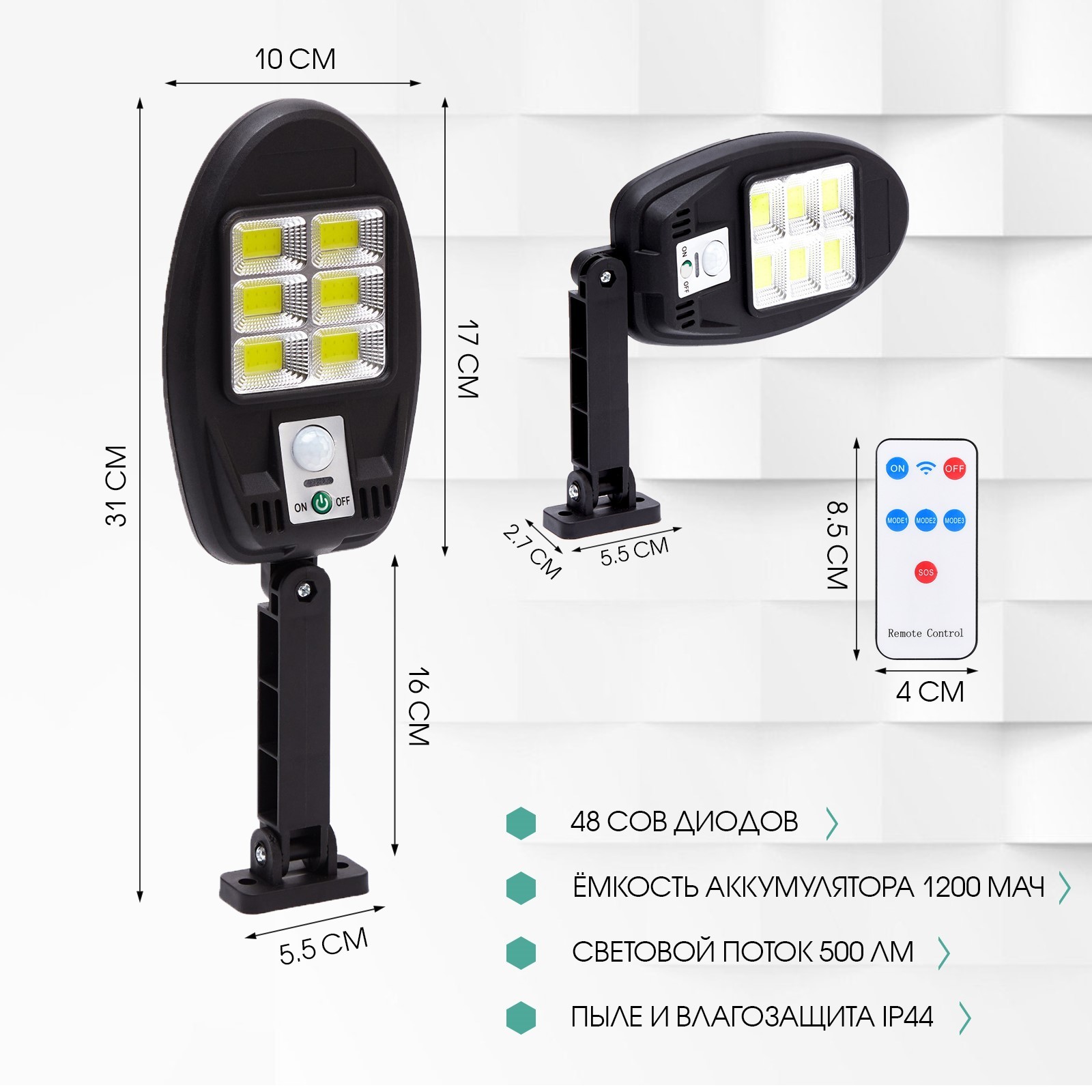 Светильник уличный аккумуляторный настенный, фонарь, 48 диодов, 3 режима