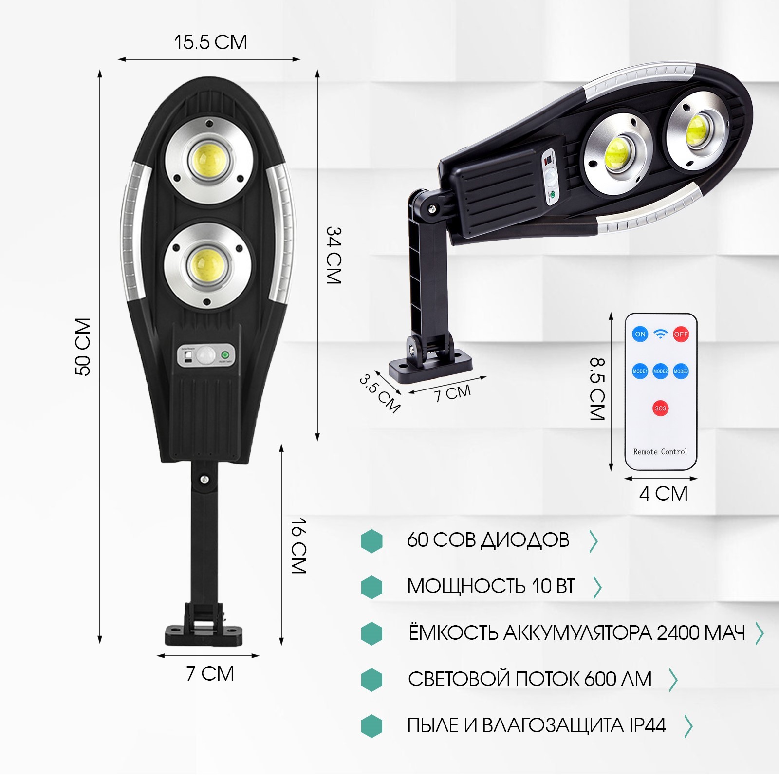 Светильник уличный аккумуляторный настенный, фонарь, 60 диодов