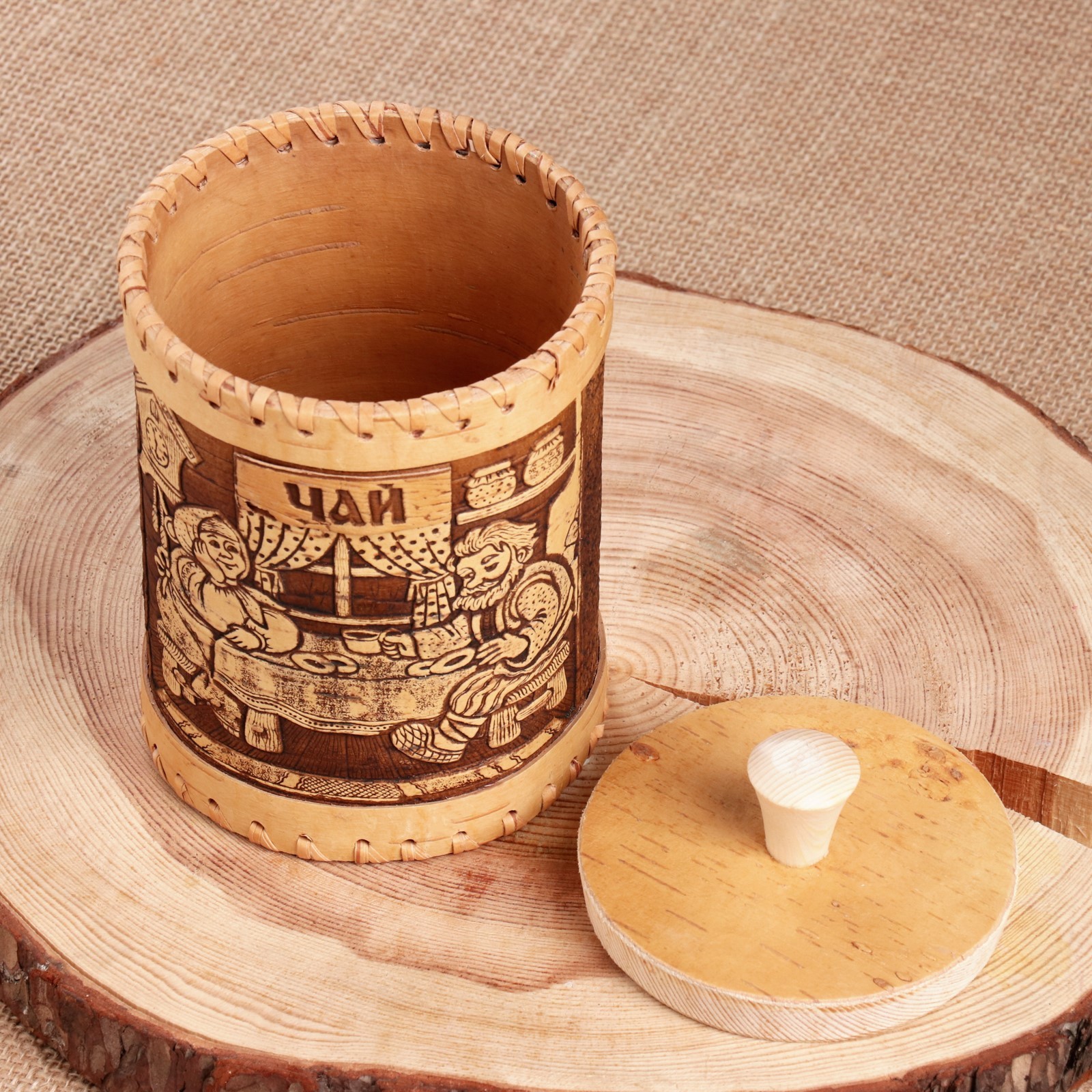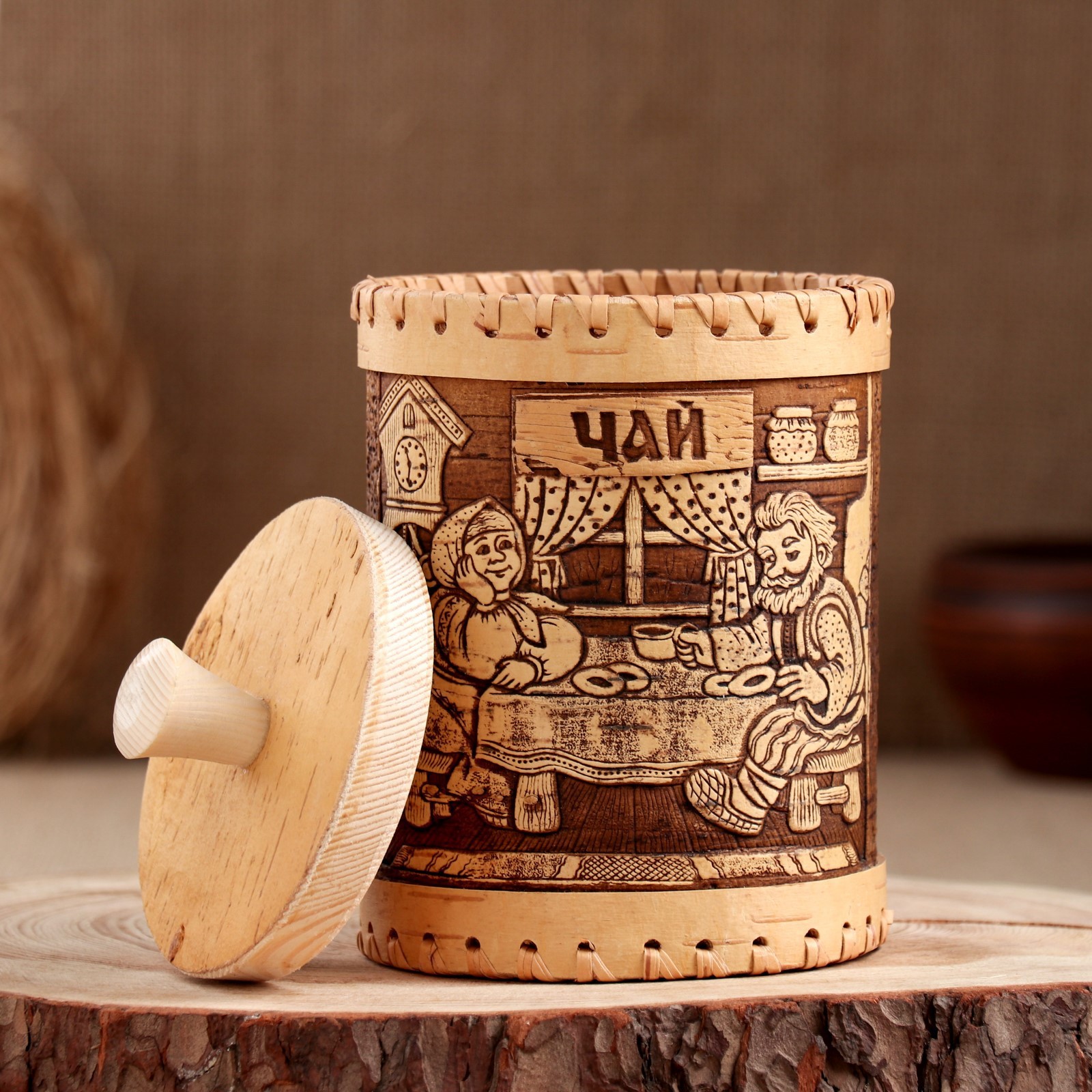 Туес "чай. чаепитие", 10 х 10 х 15 см, береста