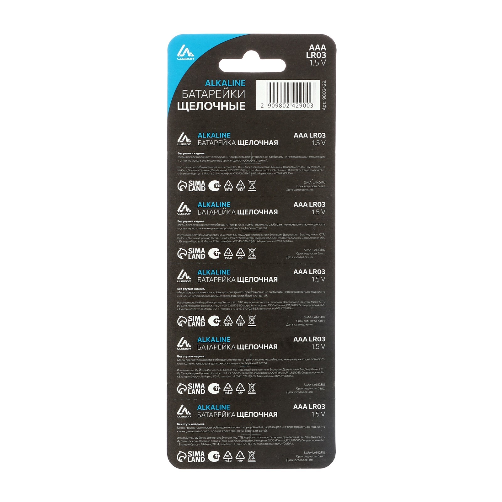 Батарейка алкалиновая (щелочная) Luazon, Aaa, Lr03-5bl, отрывной блистер, 5 шт