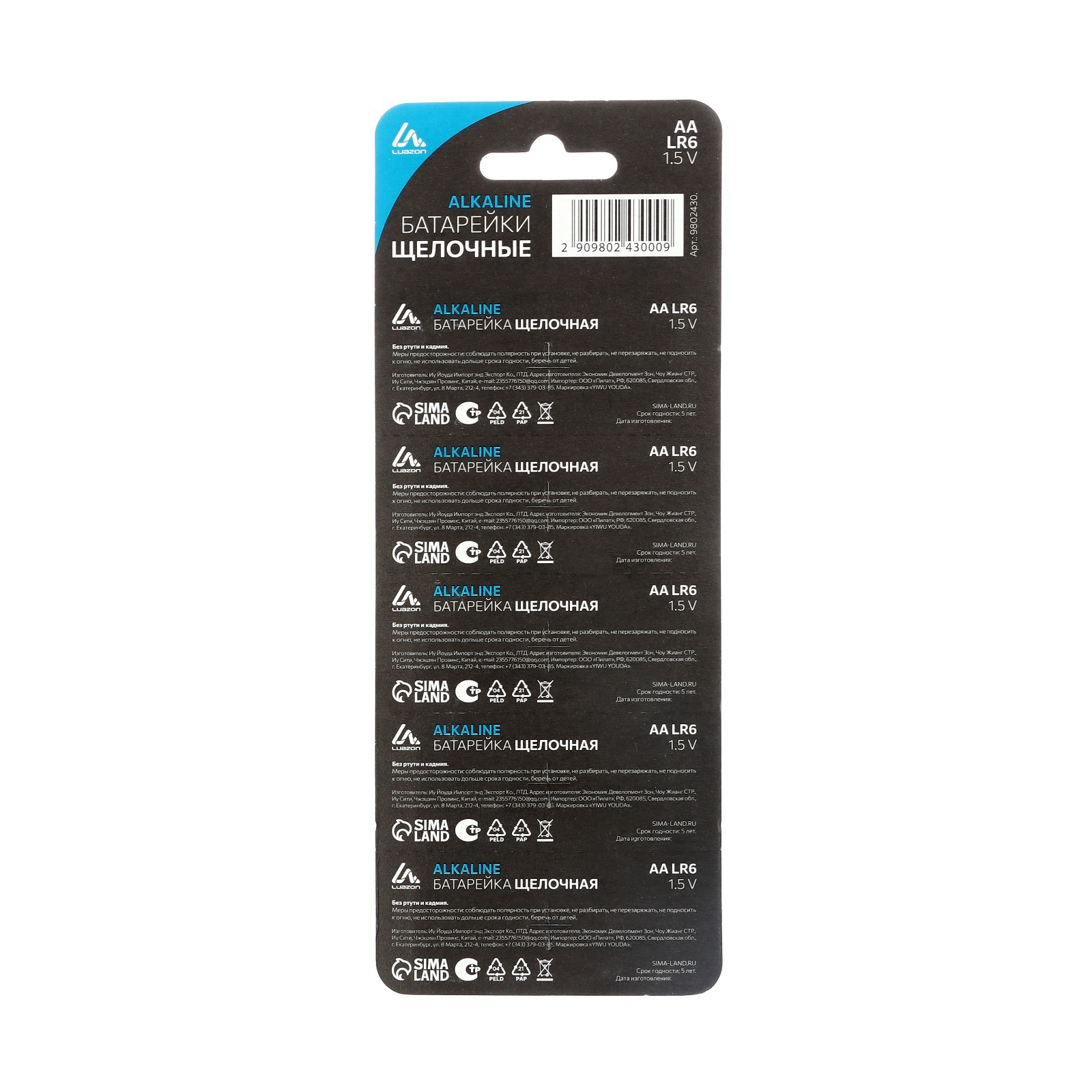 Батарейка алкалиновая (щелочная) Luazon, Aa, Lr6-5bl, отрывной блистер, 5 шт