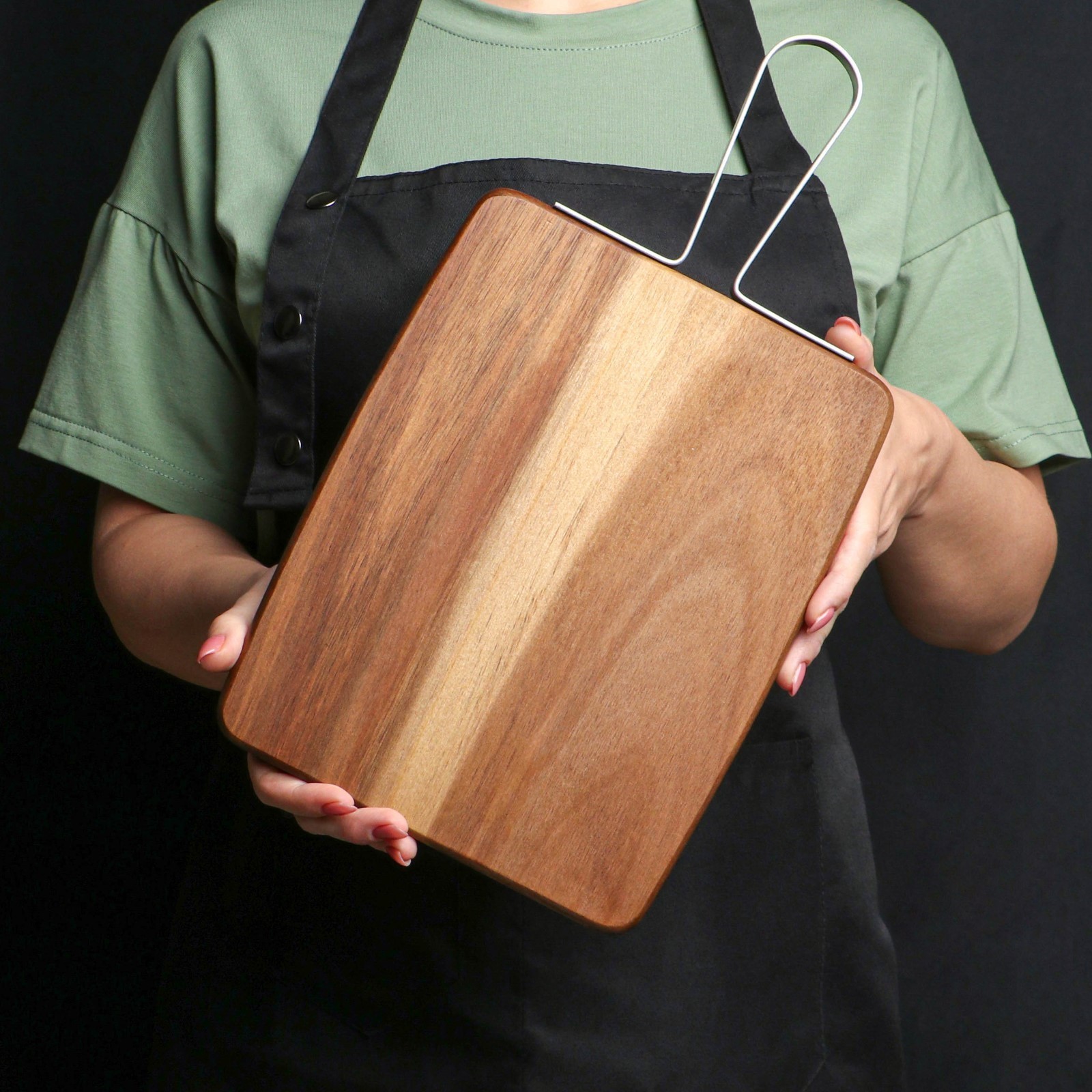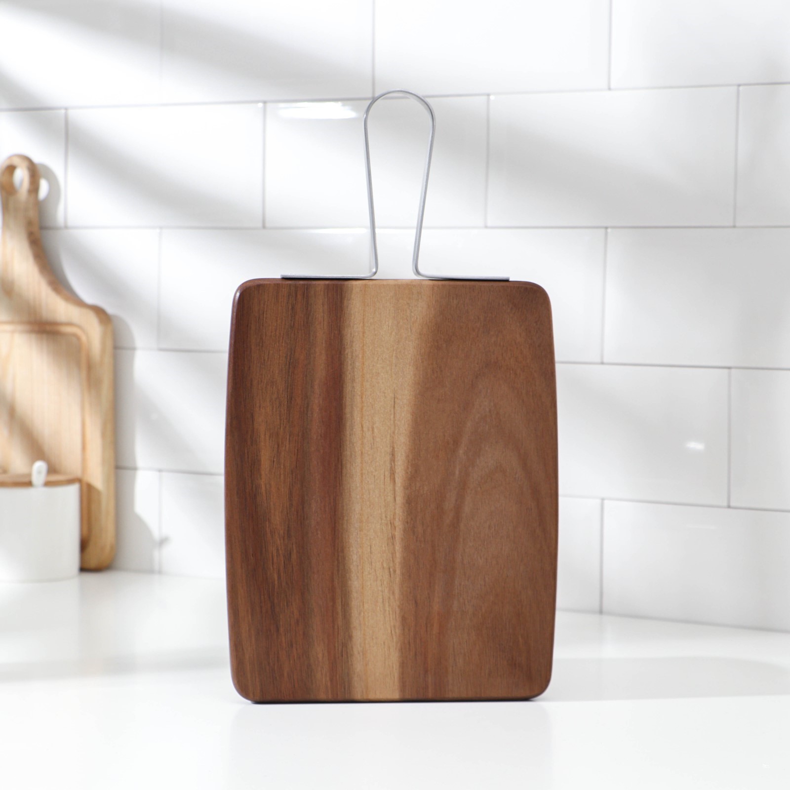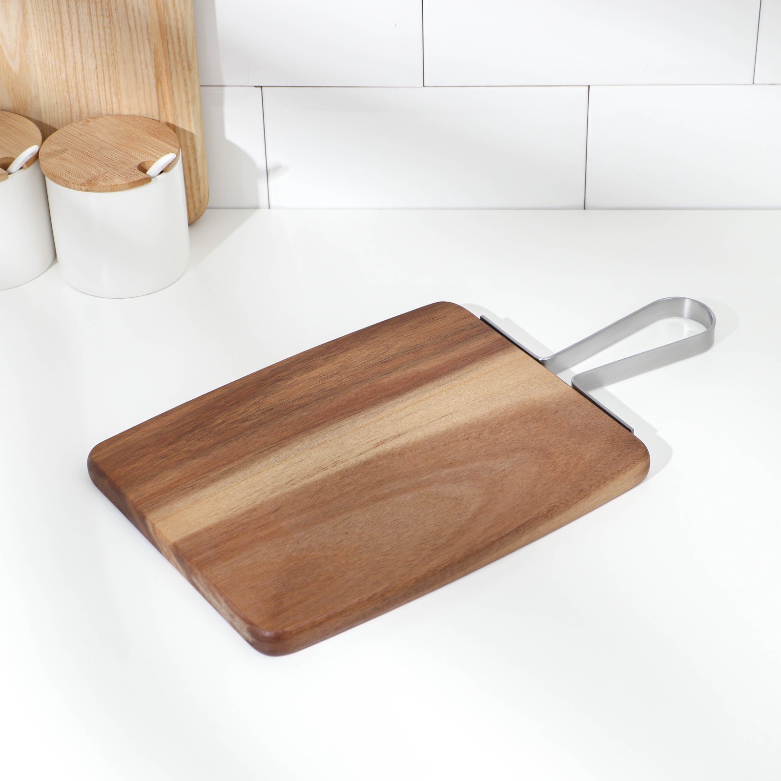 Доска разделочная с металлической ручкой, 35,8x20x1,6 см, тропическая акация