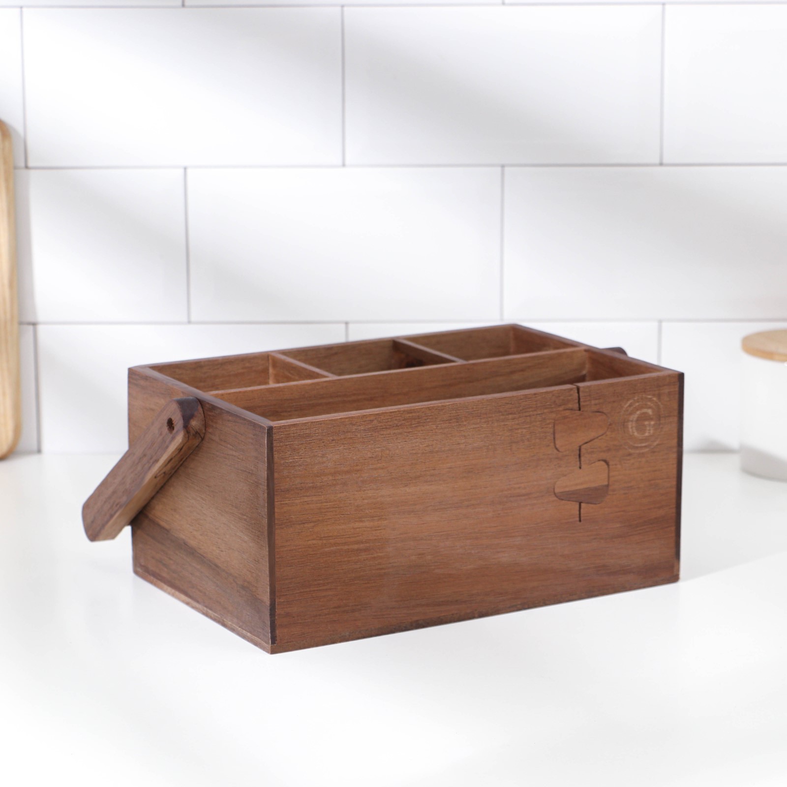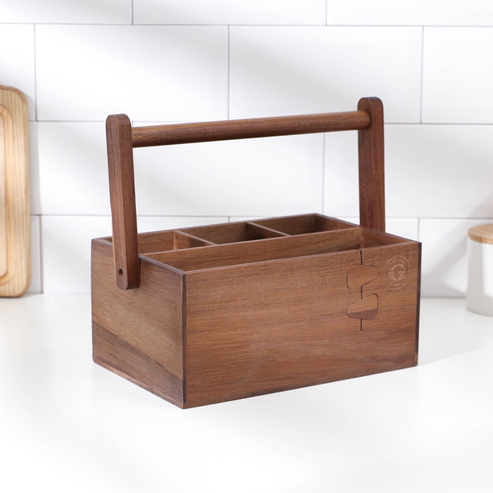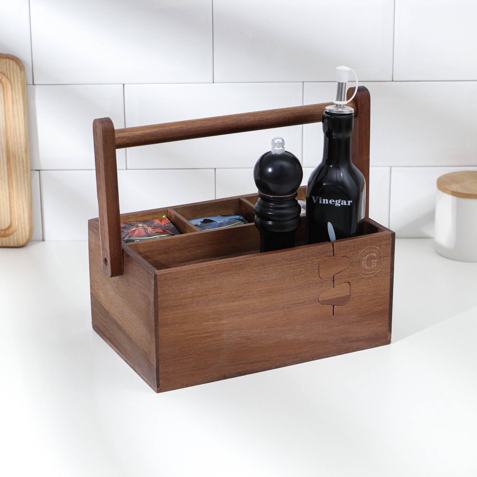Органайзер для чая и кухонных принадлежностей с ручкой, 27x19x11,5 см, тропическая акация
