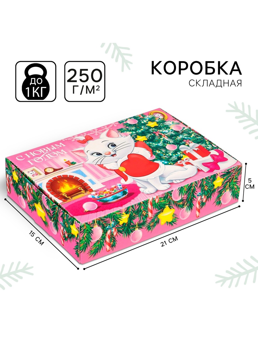 Коробка подарочная «с новым годом», 21 х 15 х 5 см, коты аристократы. Цвет:Розовый|Для кого:Для девочки|Форма:Прямоугольная|Плотность, г/м :250|Длина, см:21|Ширина, см:15|Высота, см:5|Допустимый вес вложения, г:1000|Тематика:Новогодняя|Тематика:Мультфильмы|Тематика:Детская|Символ года:Нет|Тематика праздника:Новый год|Материал:Картон|Вид:Складные коробки|Размер:Средний (18-24 см)|Окошко:Нет|Крышка-дно:Нет|Страна:Россия  развернуть описание ▼