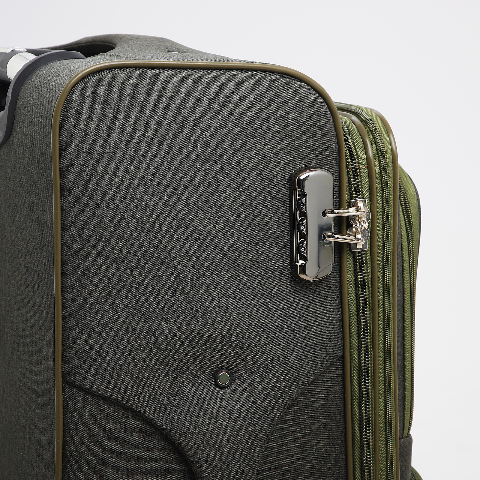 Чемодан большой 95 л (l), отдел на молнии, кодовый замок, 3 колеса, 2 наружных кармана, цвет хаки