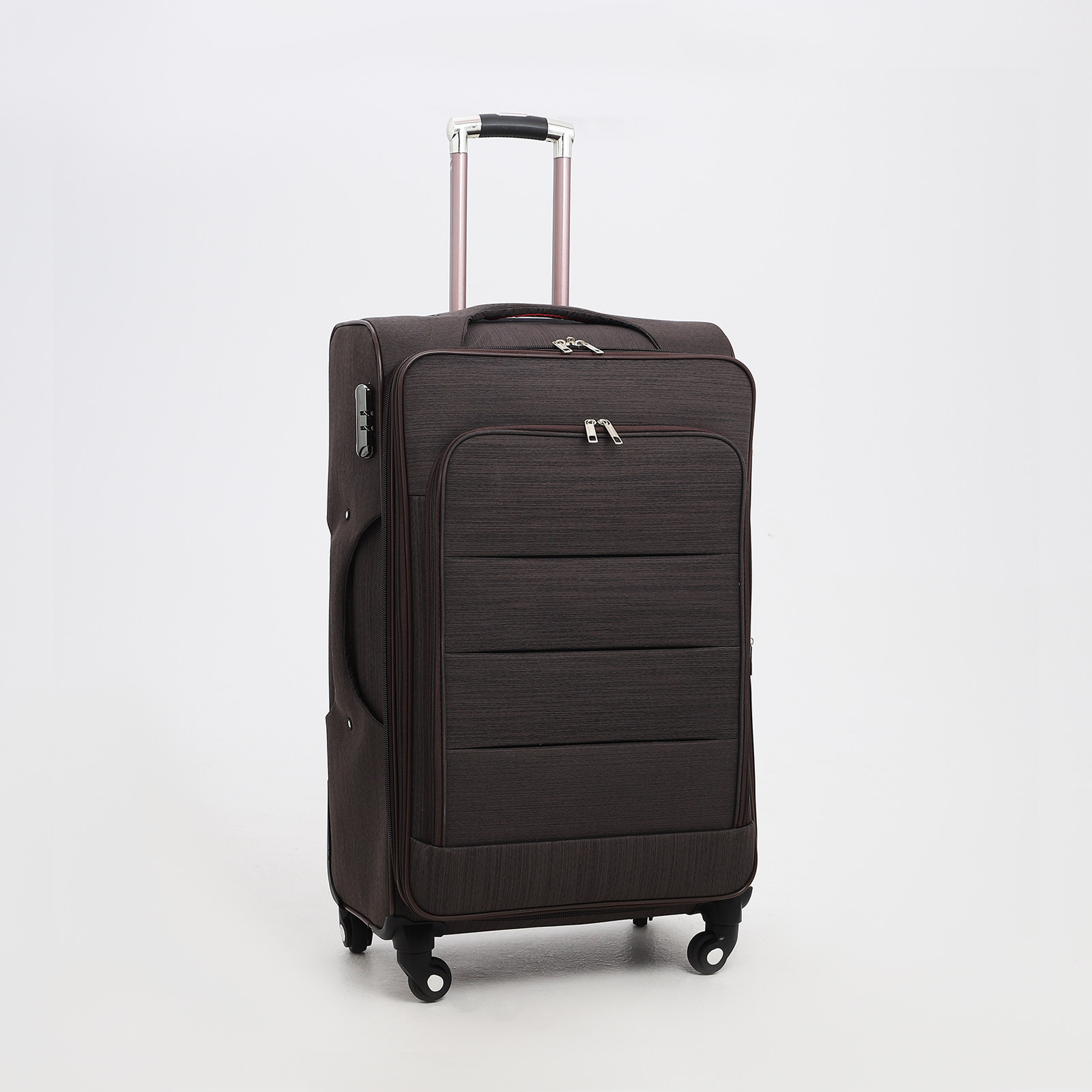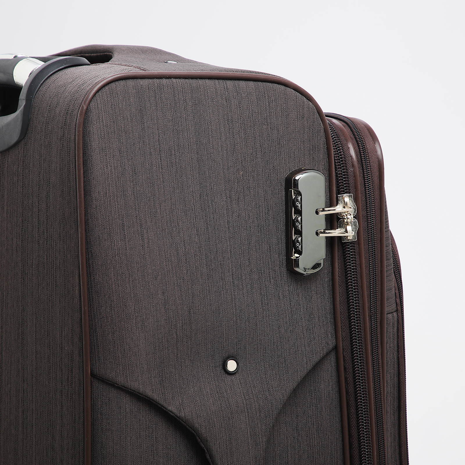 Чемодан большой 95 л (l), отдел на молнии, кодовый замок, 4 колеса, наружный карман, цвет коричневый