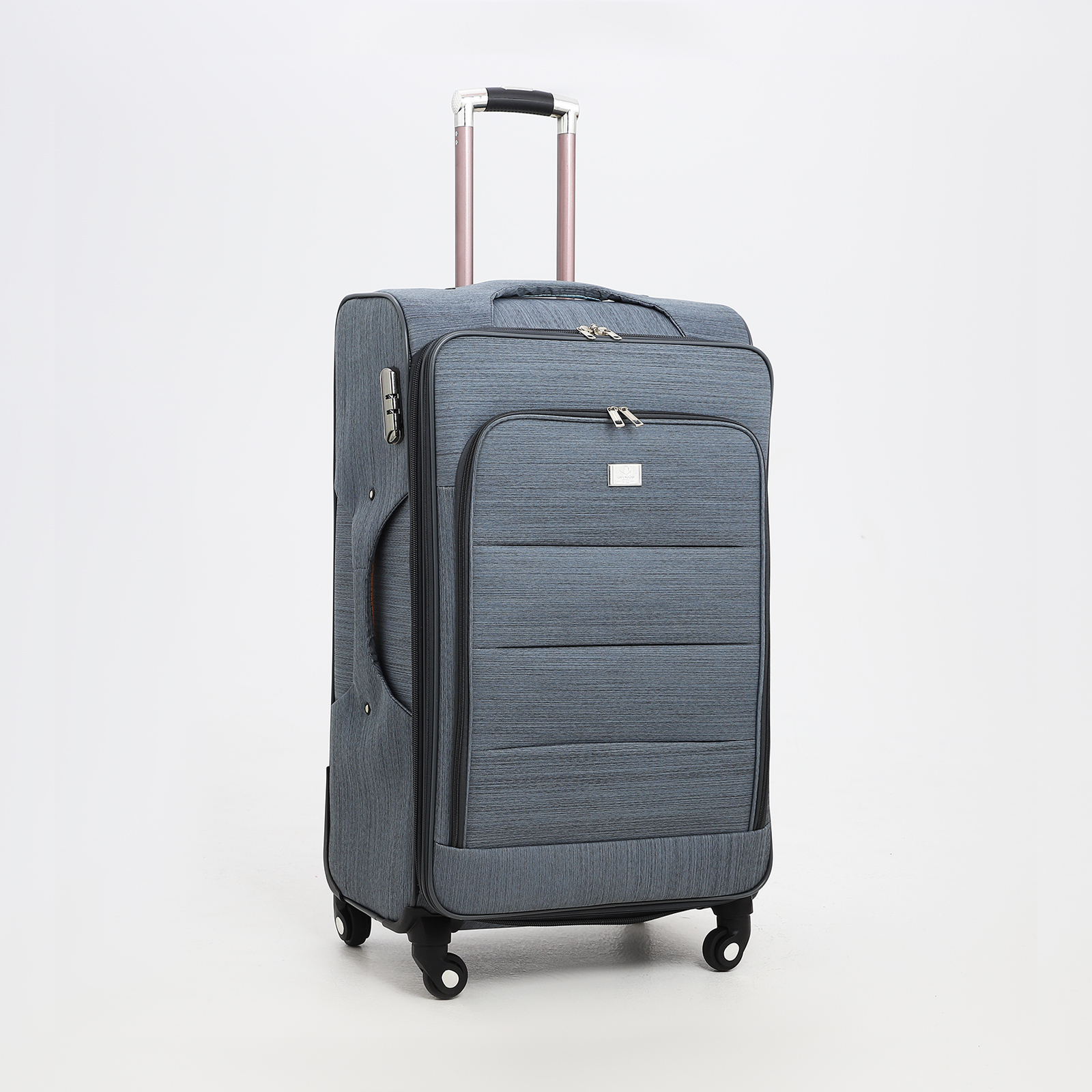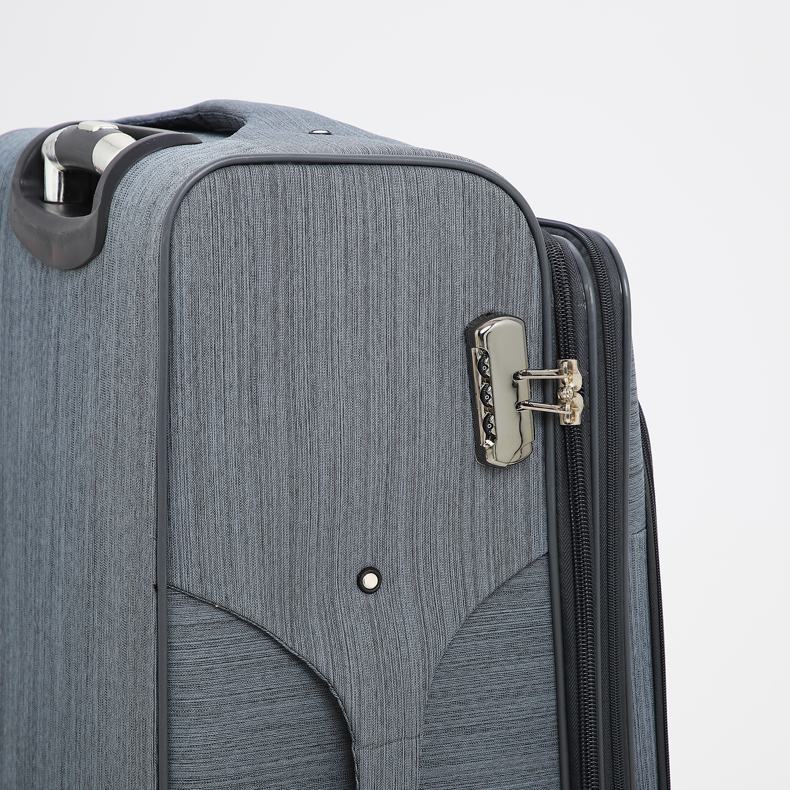 Чемодан большой 95 л (l), отдел на молнии, кодовый замок, 4 колеса, наружный карман, цвет серый