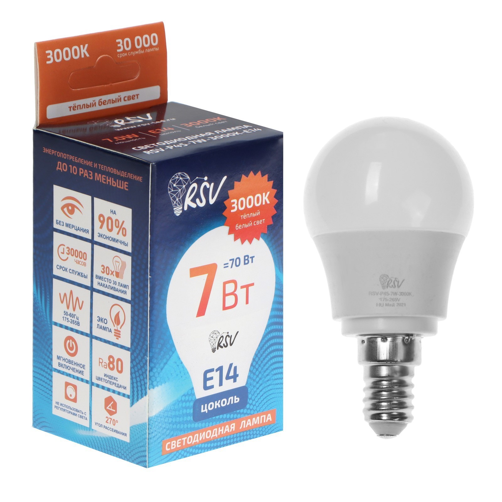Светодиодная лампа Rsv-p45-7w-3000k-e14