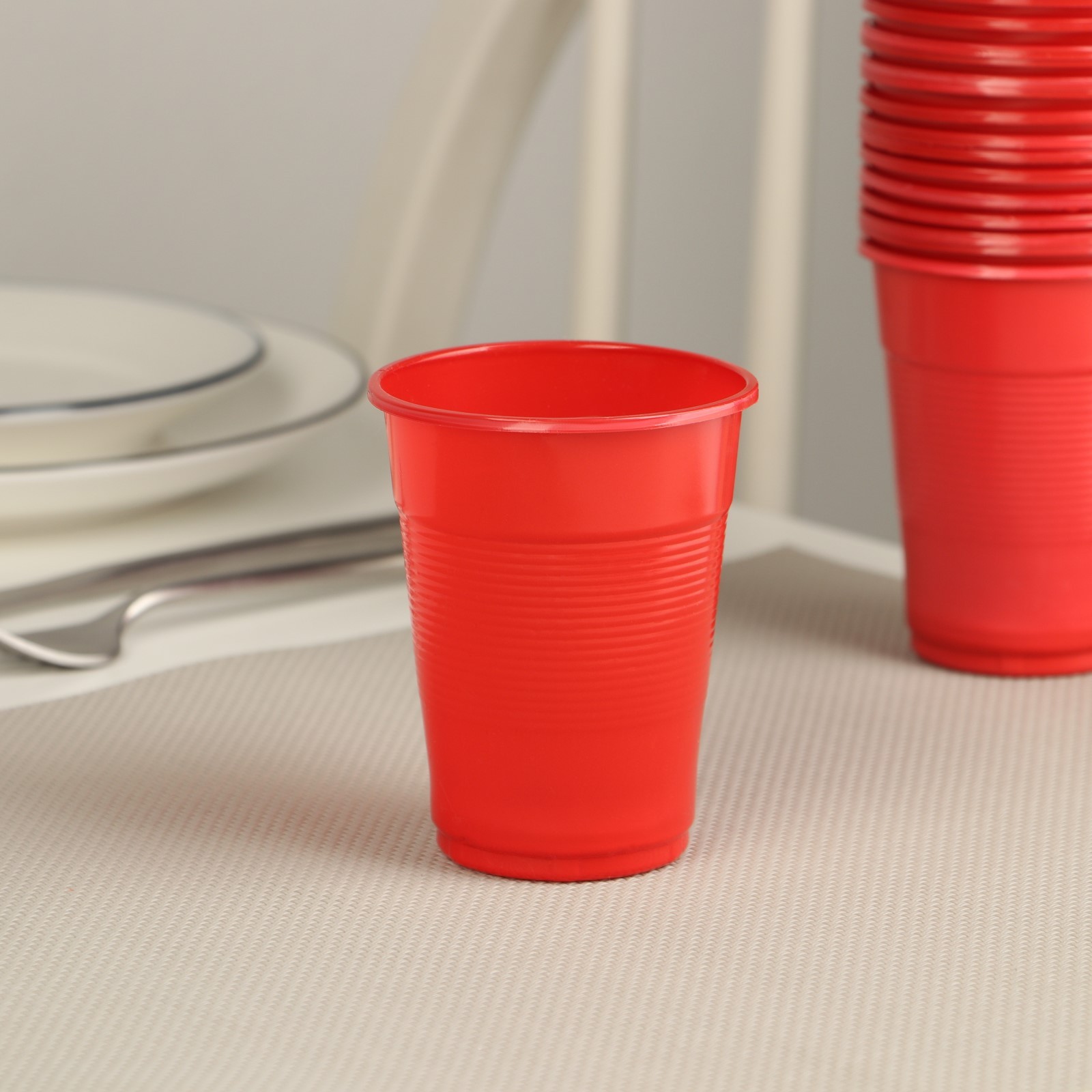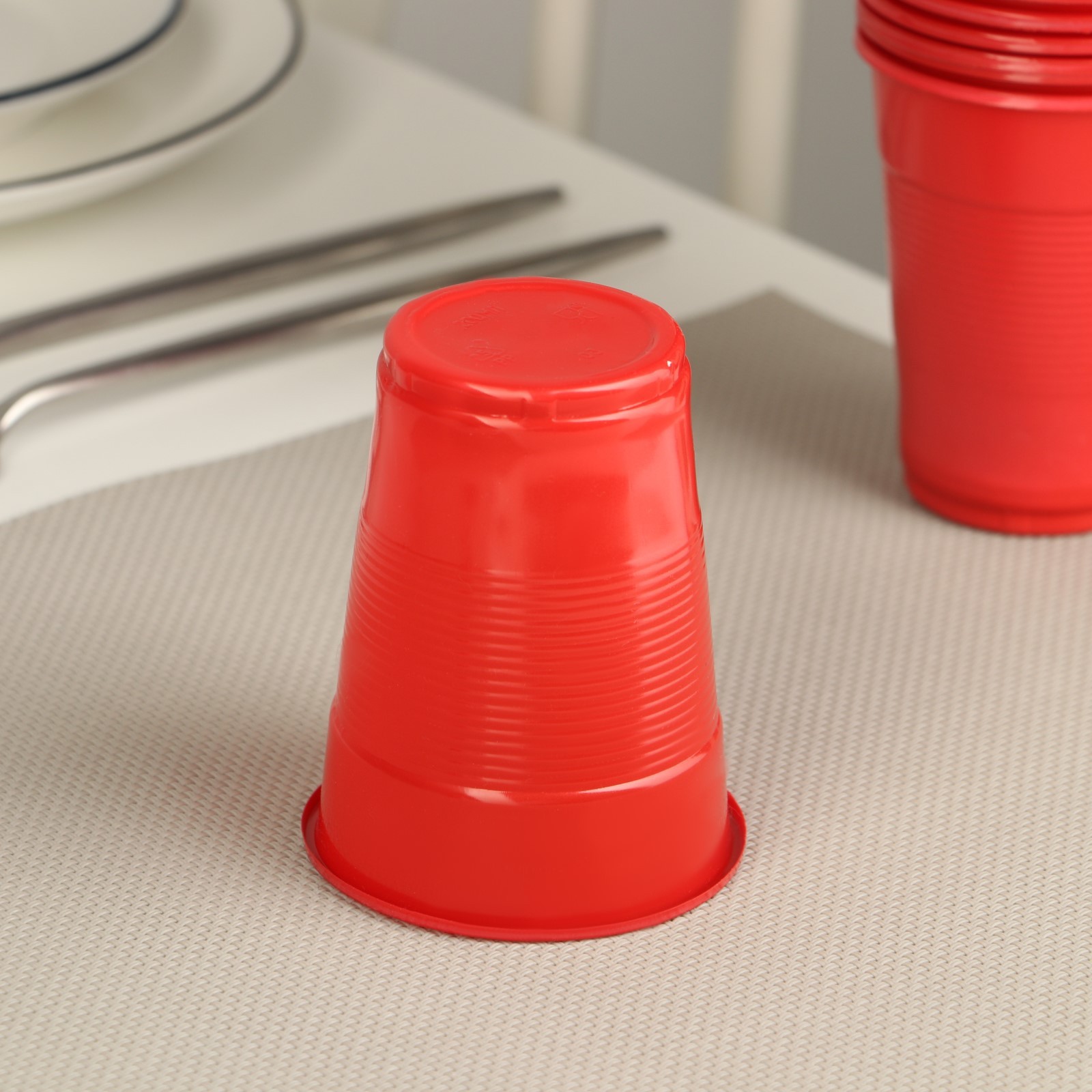 Стакан одноразовый пластиковый «мопс», 200 мл, цвет красный