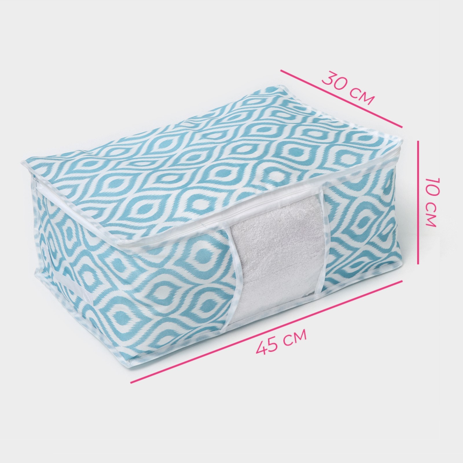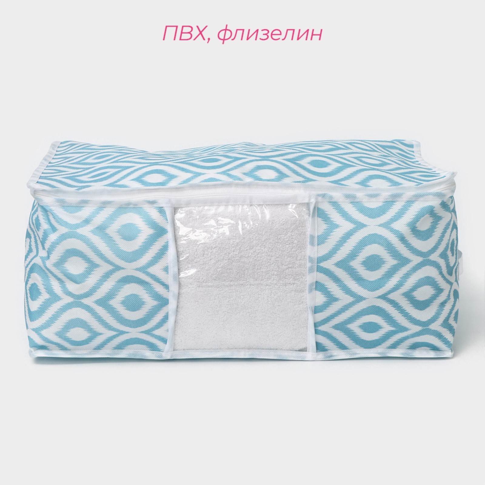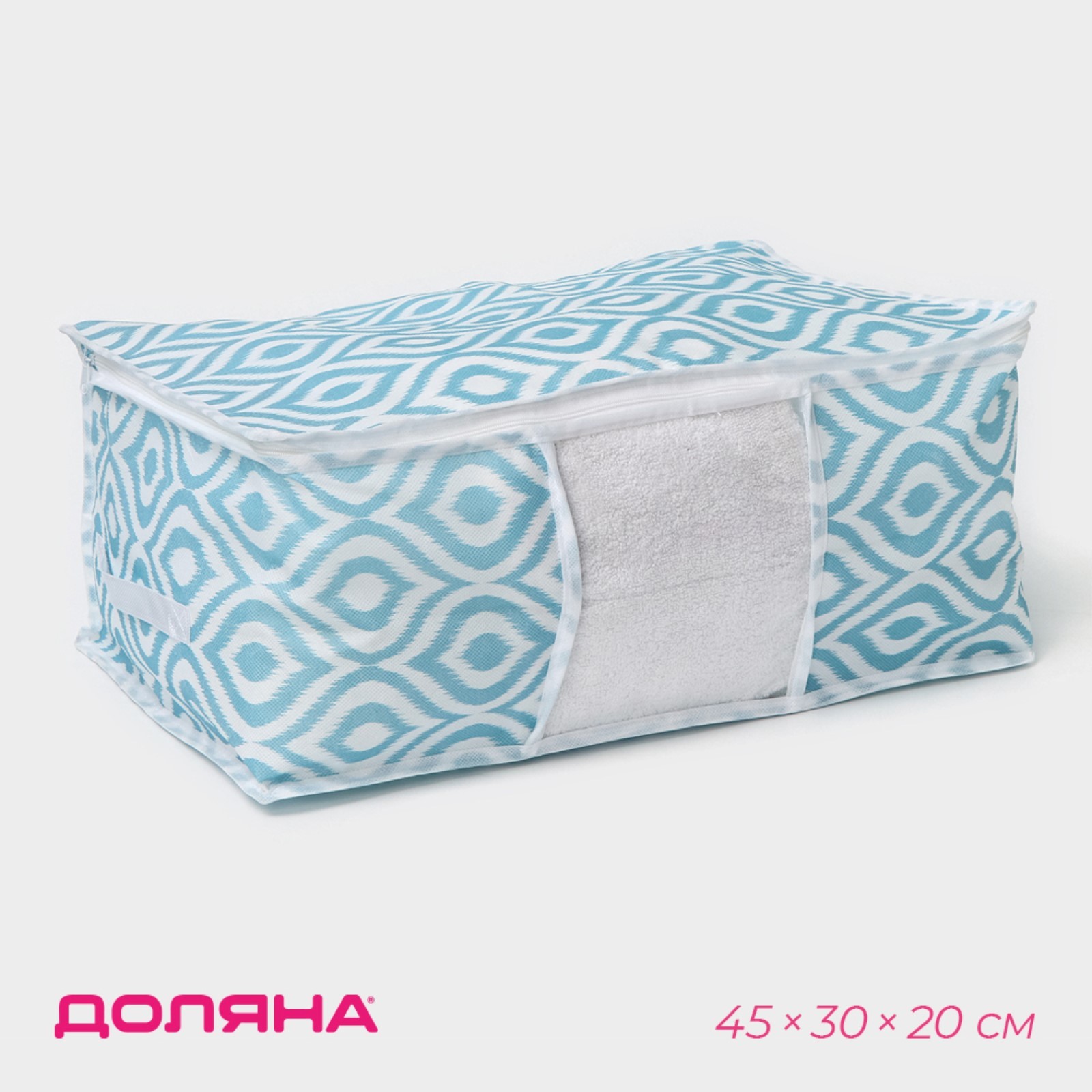 Кофр для хранения вещей доляна «лагуна» с пвх-окном, 45x30x20 см, цвет бирюзовый. Кофр для хранения вещей позволит навести порядок дома раз и навсегда! Подходит для удобного хранения постельного белья, сезонный одежды, детской одежды, одеял, пледов. Преимущества: Нейтральная цветовая гамма кофров впишется в интерьер спальной, гардеробной или гостиной комнаты, а также в детскую комнату. Органайзеры для хранения легко очистить от загрязнений и компактно сложить в кладовку. Идеально подходит для хранения, удобен для размещения в шкафу. Цвет: Бирюзовый Количество отделений: 1 Материал: Флизелин Материал: ПВХ  развернуть описание ▼