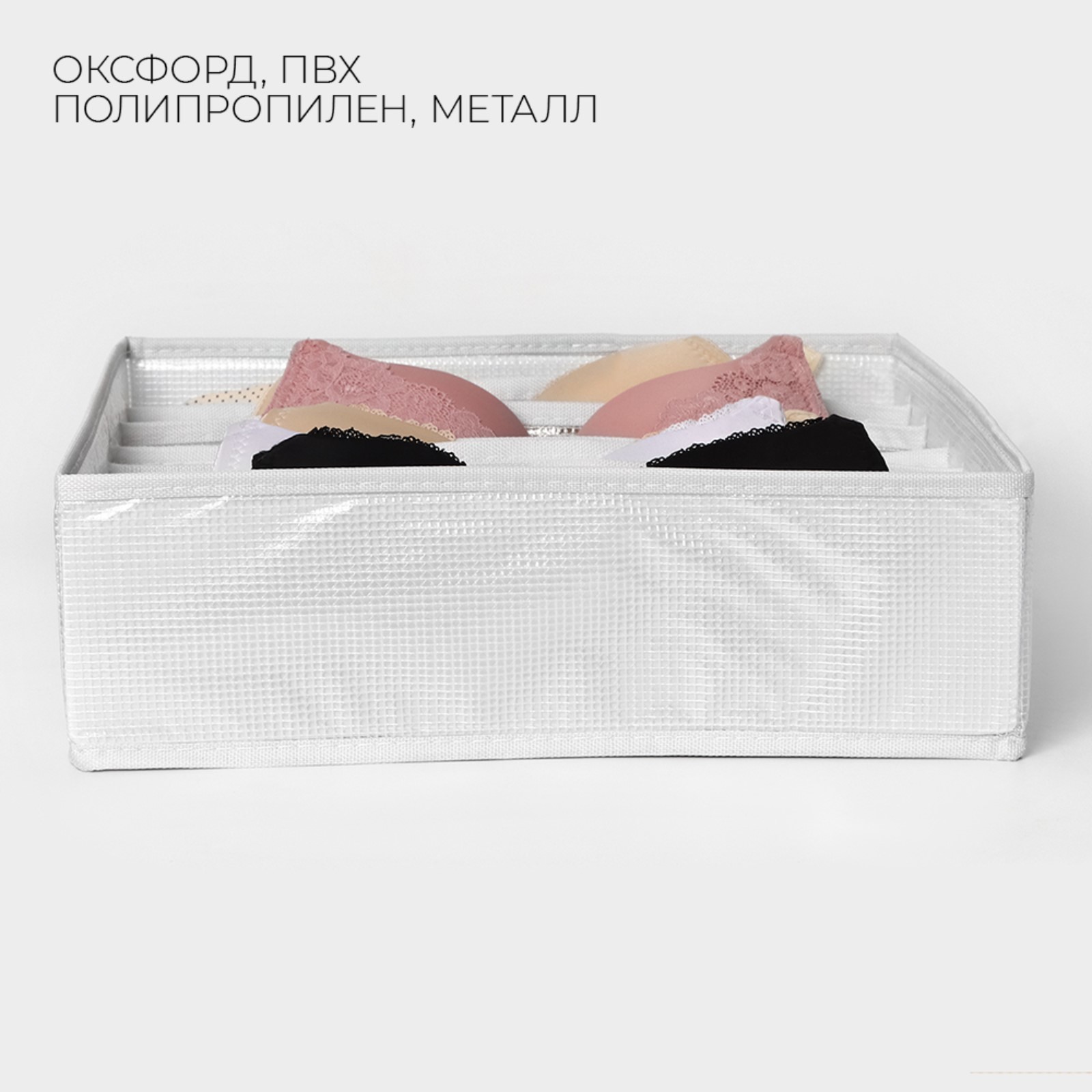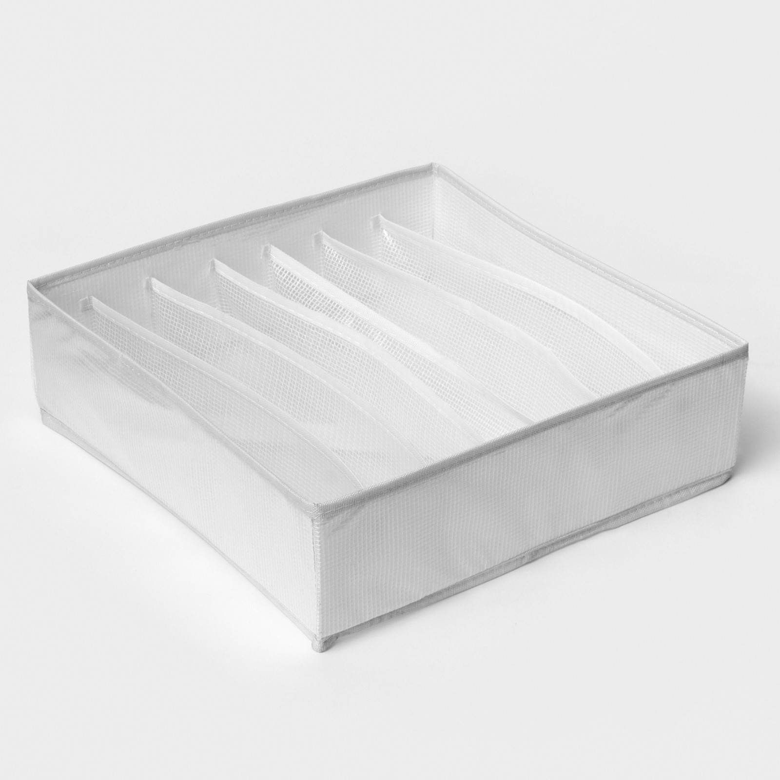 Array. Многие сталкиваются с проблемой размещения небольших вещей. Занимать ими целую полку жалко, а хранить в других местах неэстетично. Решение есть! Органайзер поможет разобраться с беспорядком. Поставьте его в гардероб или на пол, и вы всегда будете знать, где и что в нём находится. Благодаря лёгкости убрать изделие на возвышение смогут даже хрупкие девушки. Преимущества товара:Большой объем. Многофункциональность. Малый вес и отсутствие острых углов. Стильный дизайн. Вместе с этим простым предметом в доме поселятся порядок и уют. Оригинальное изделие дополнит ваш интерьер и станет украшением помещения. Цвет: Белый Ширина, см: 32 Высота, см: 10 Глубина, см: 10 parts count: 0 Количество ячеек: 7 Крышка: Нет Материал: Оксфорд  развернуть описание ▼