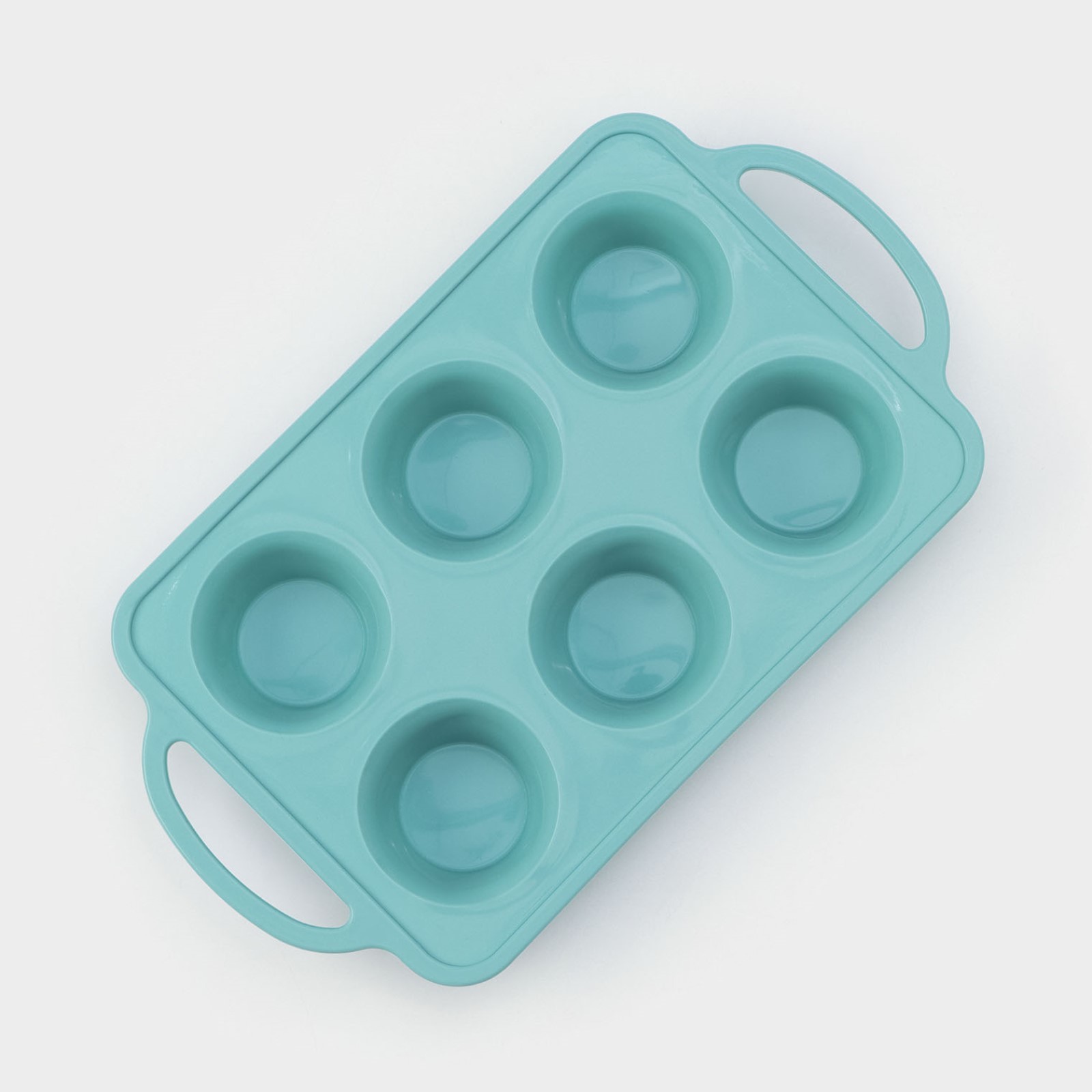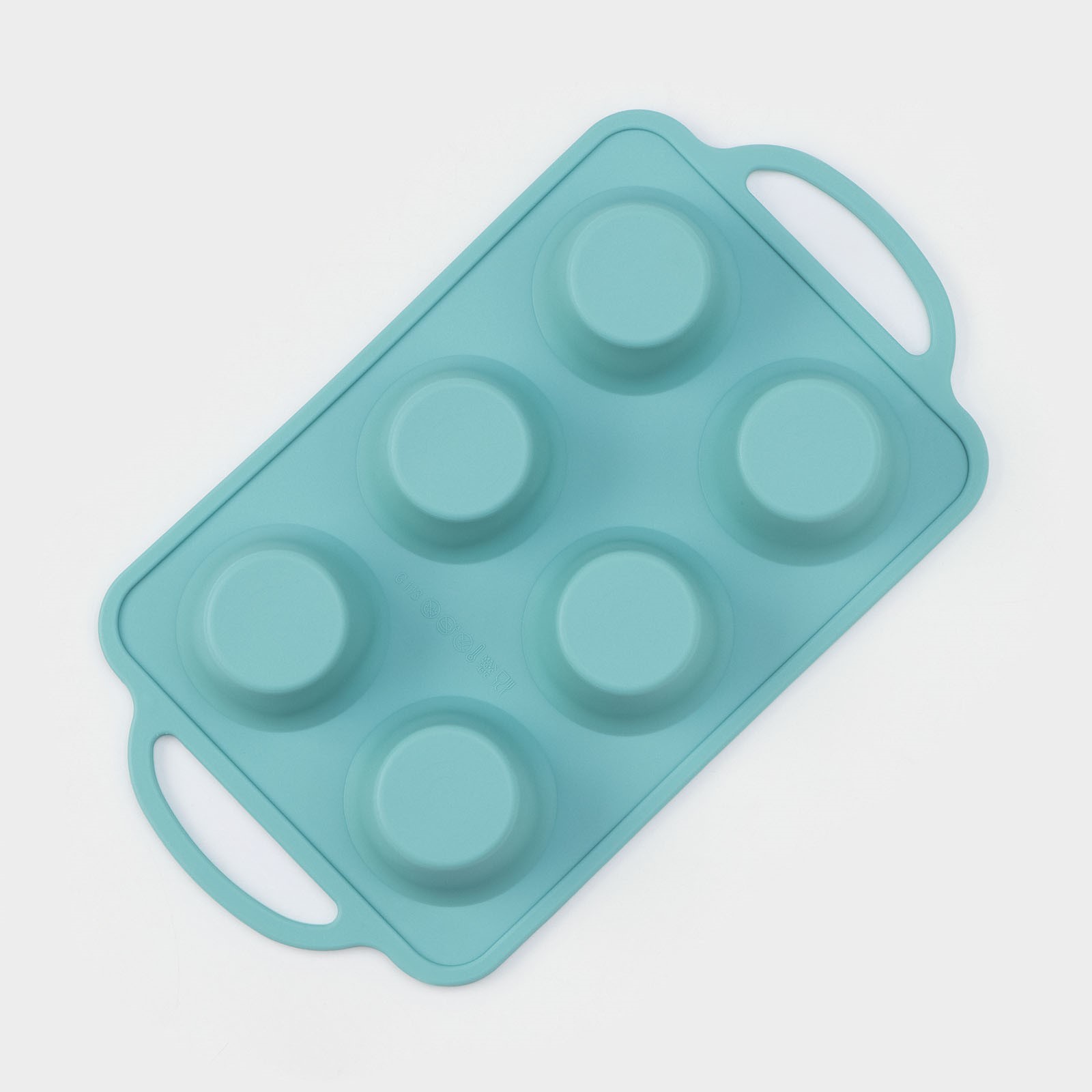 Форма для выпечки «фигуры. круг», 32,5x18,5x4 см, 6 ячеек, (7x7x4 см), цвет бирюзовый
