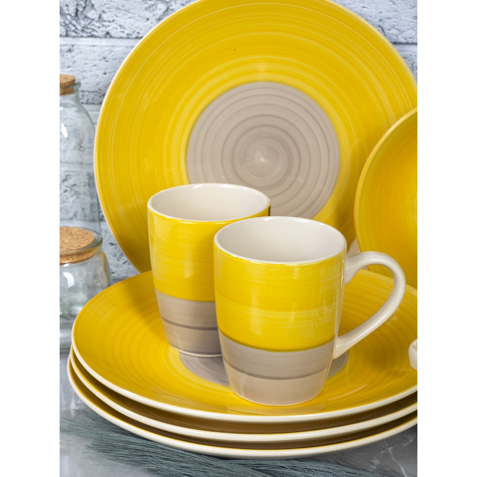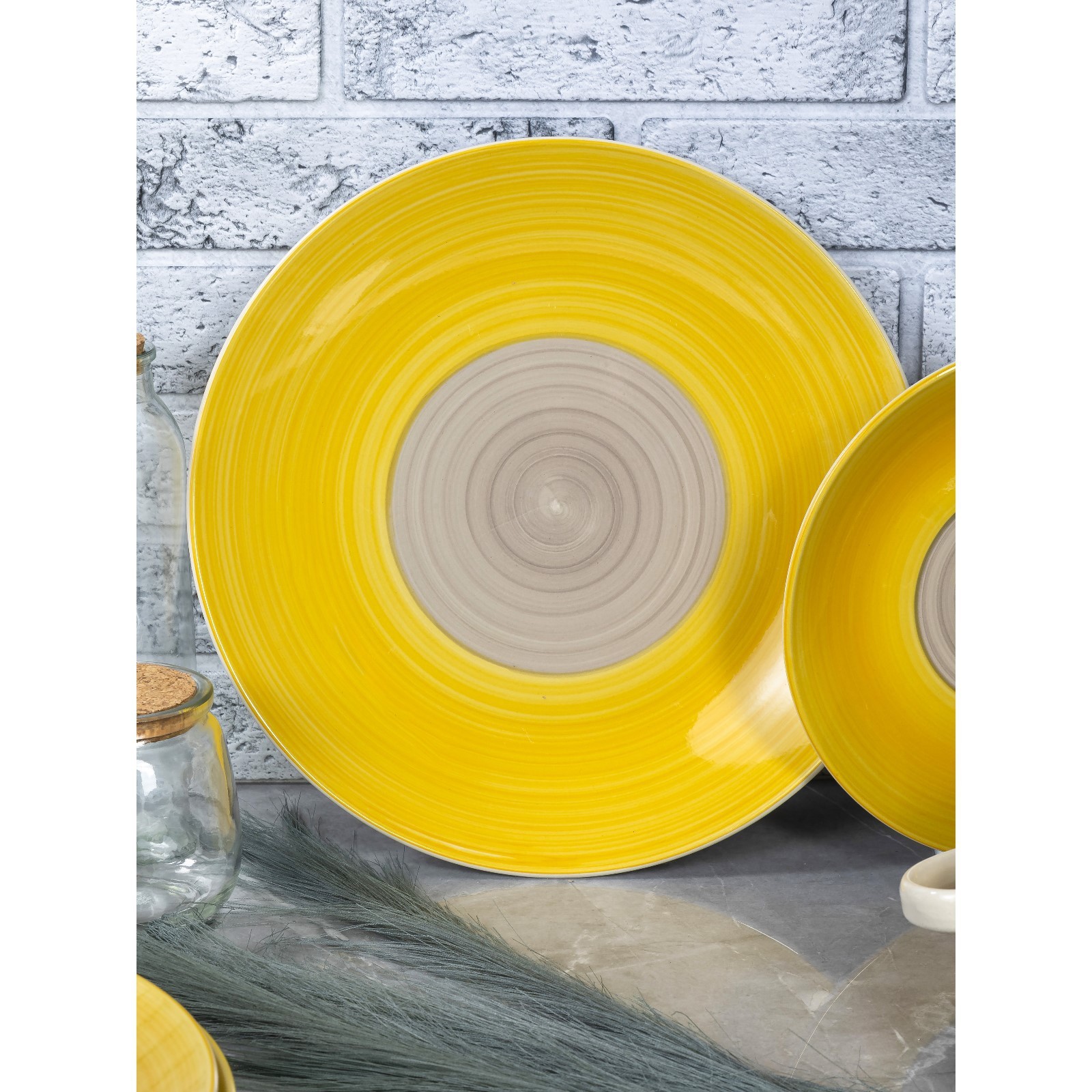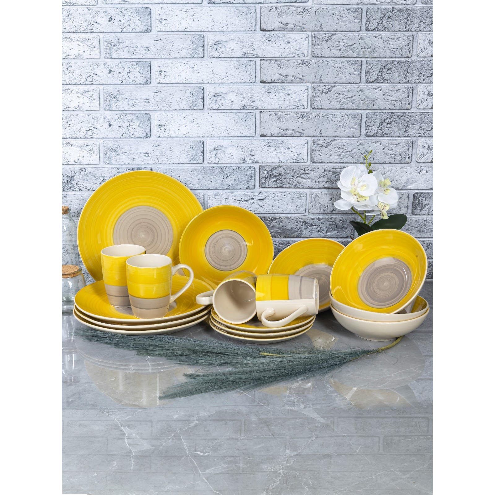 Столовый набор посуды выполнен из керамики высокого качества. Керамическая посуда для кухни идеально сочетается друг с другом по форме и цвету. Обеденный сервиз подходит для использования в СВЧ и посудомоечной машине, а значит, посуду легко помыть после еды.