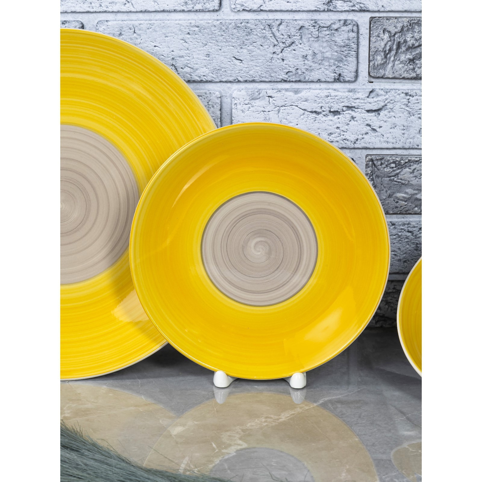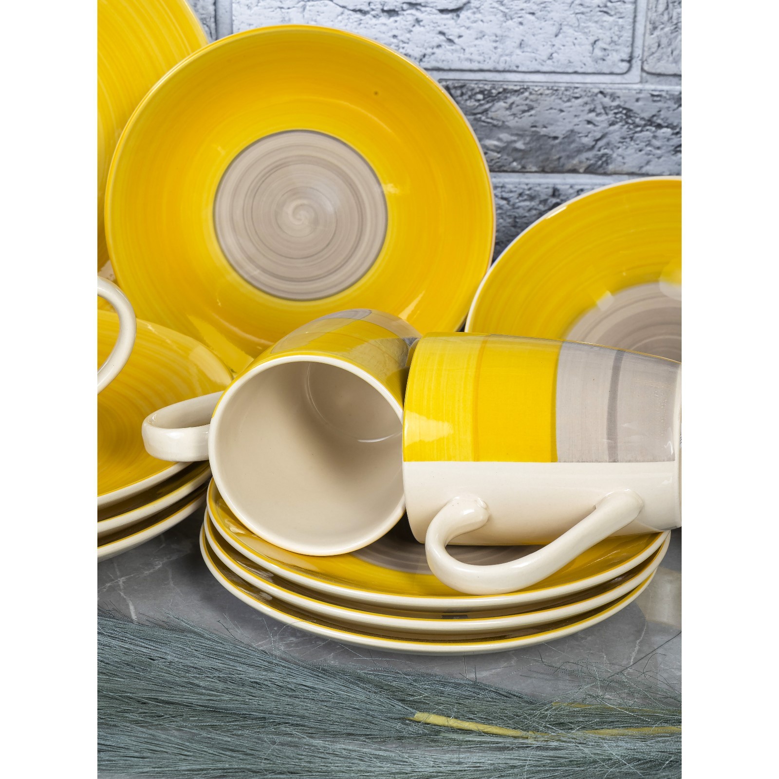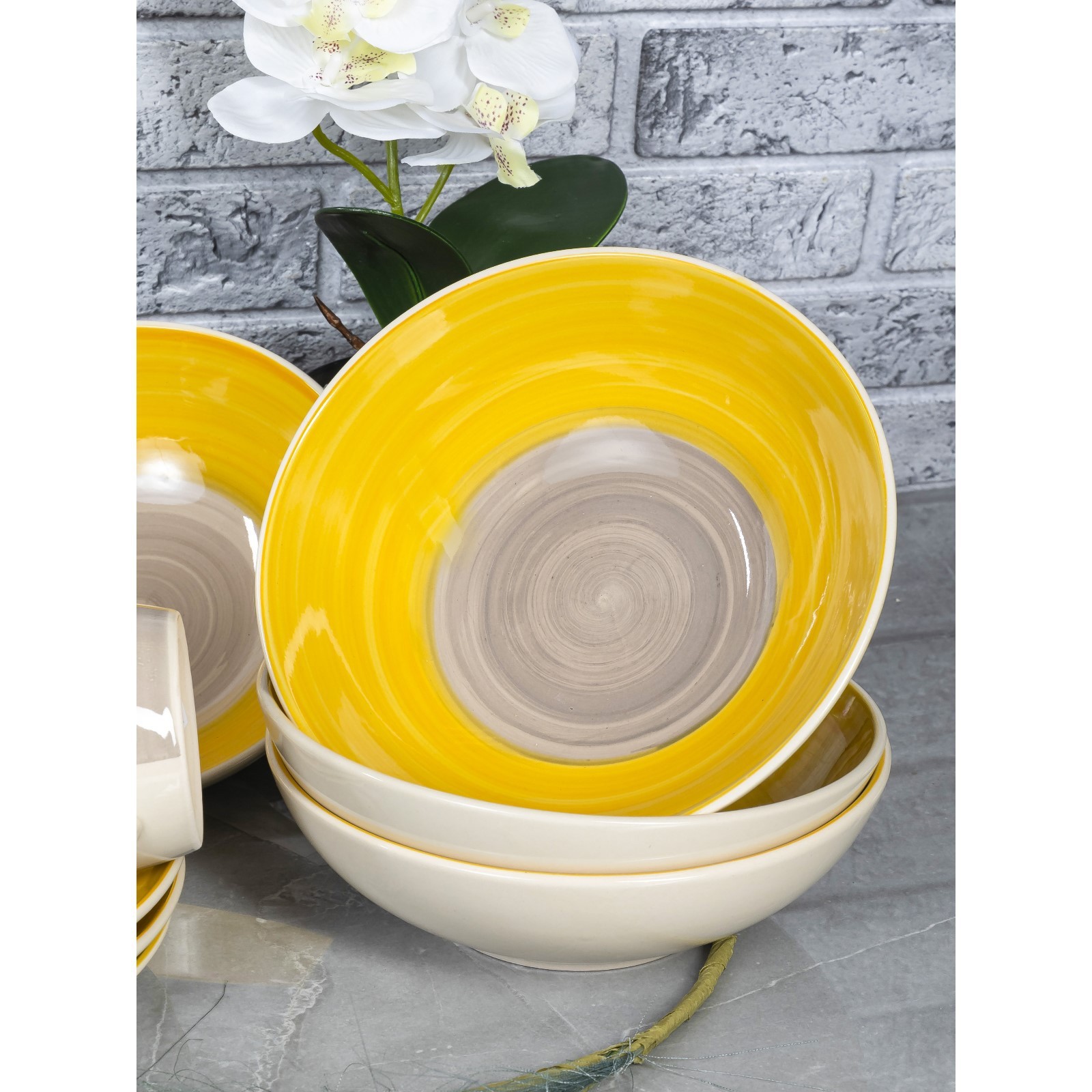 Столовый набор посуды выполнен из керамики высокого качества. Керамическая посуда для кухни идеально сочетается друг с другом по форме и цвету. Обеденный сервиз подходит для использования в СВЧ и посудомоечной машине, а значит, посуду легко помыть после еды.
