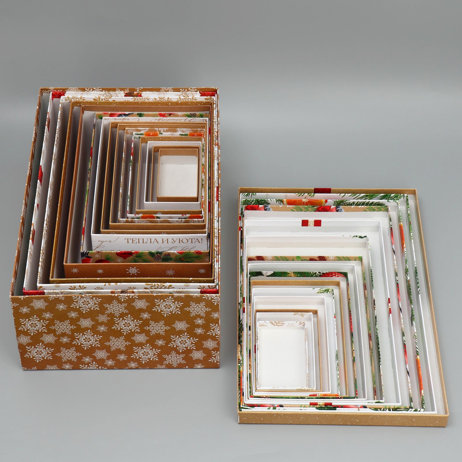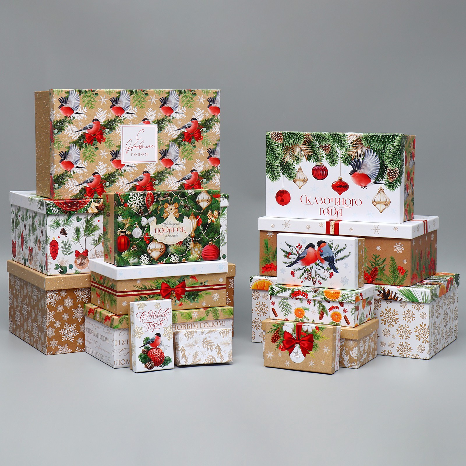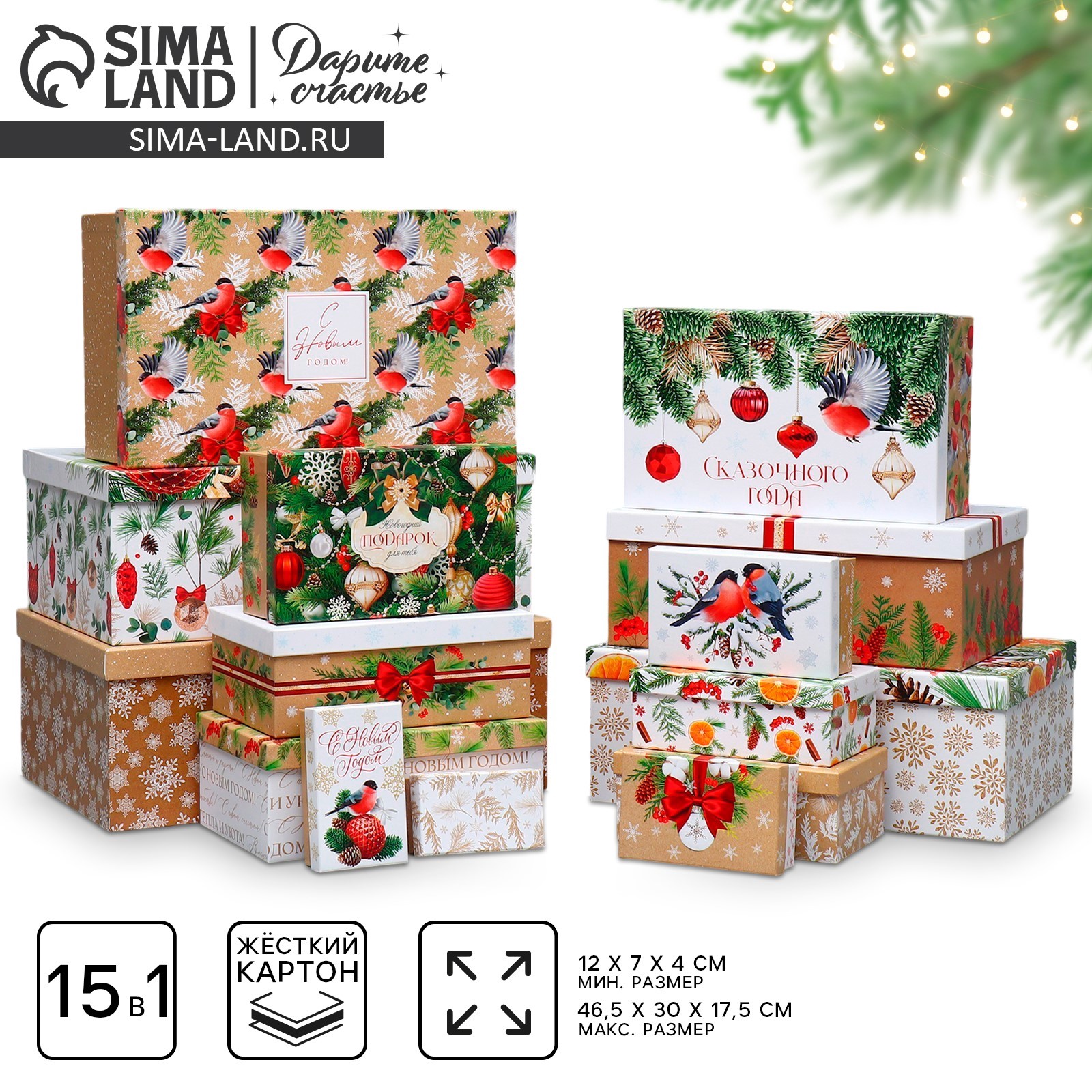 Набор новогодних подарочных коробок 15 в 1 «с новым годом!», 12 х 7 х 4 см - 46.5 х 30 х 17.5 см
