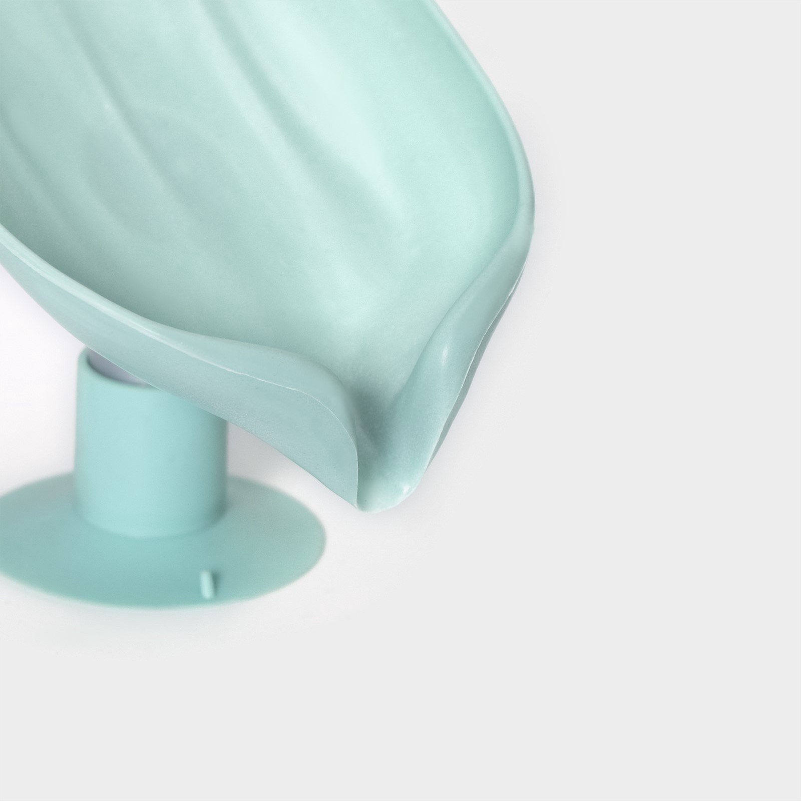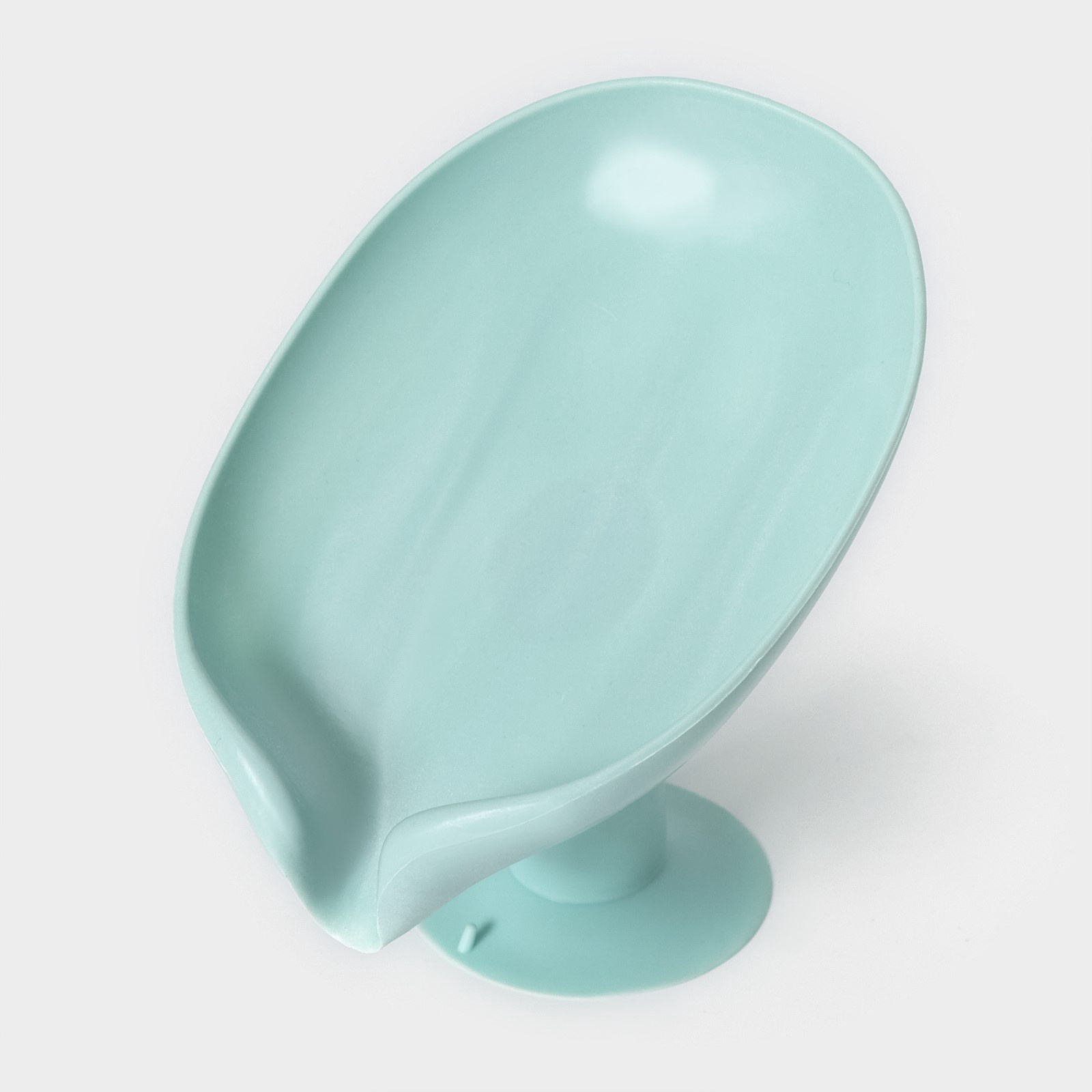 Мыльница со сливом для воды доляна, на присоске, 12.5 9 10 см, бирюзовая