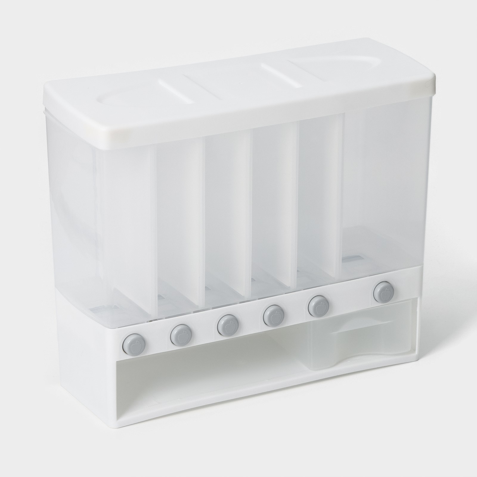 Контайнер - дозатор для хранения сыпучих, 6 ячеек, 39x14,5x32 см, цвет белый