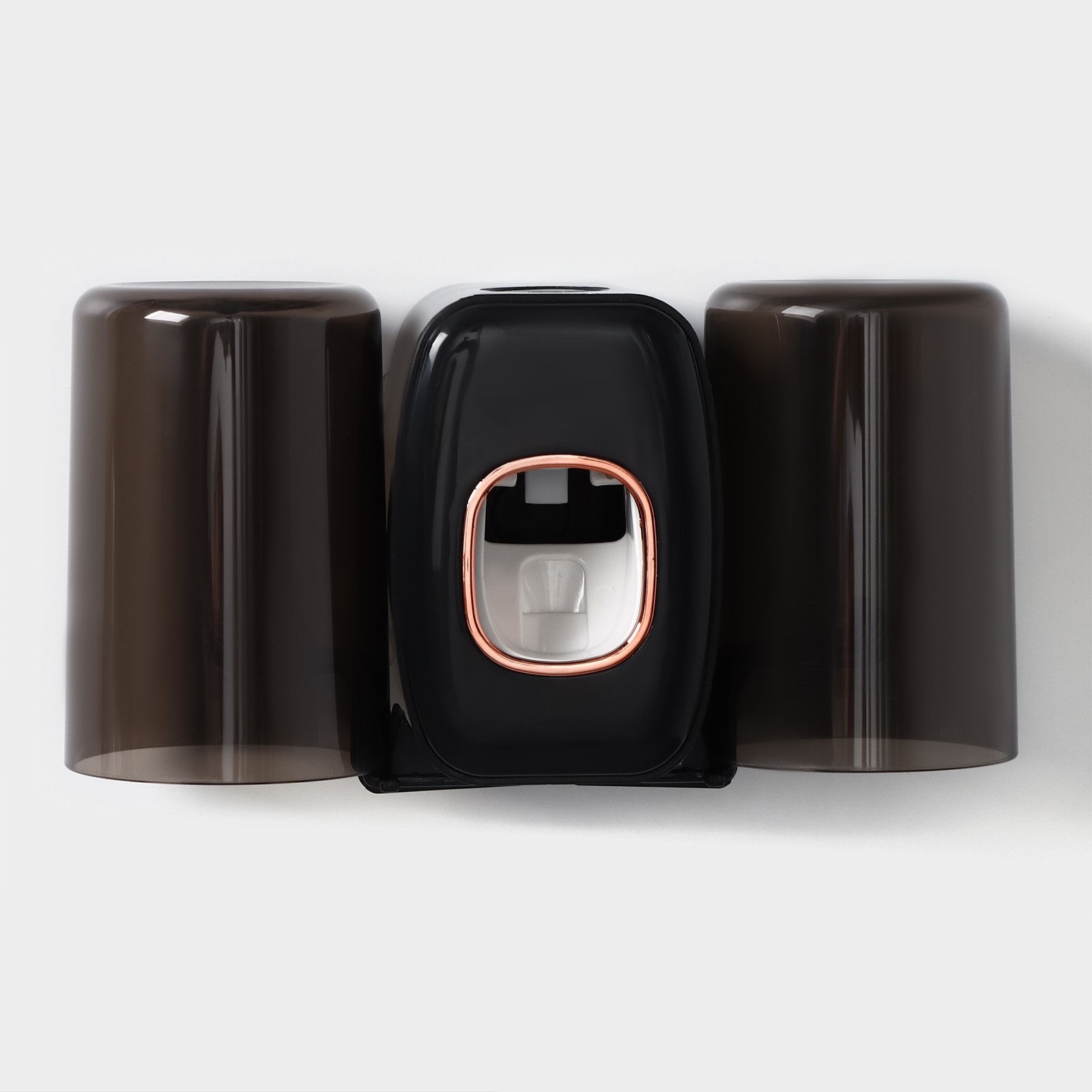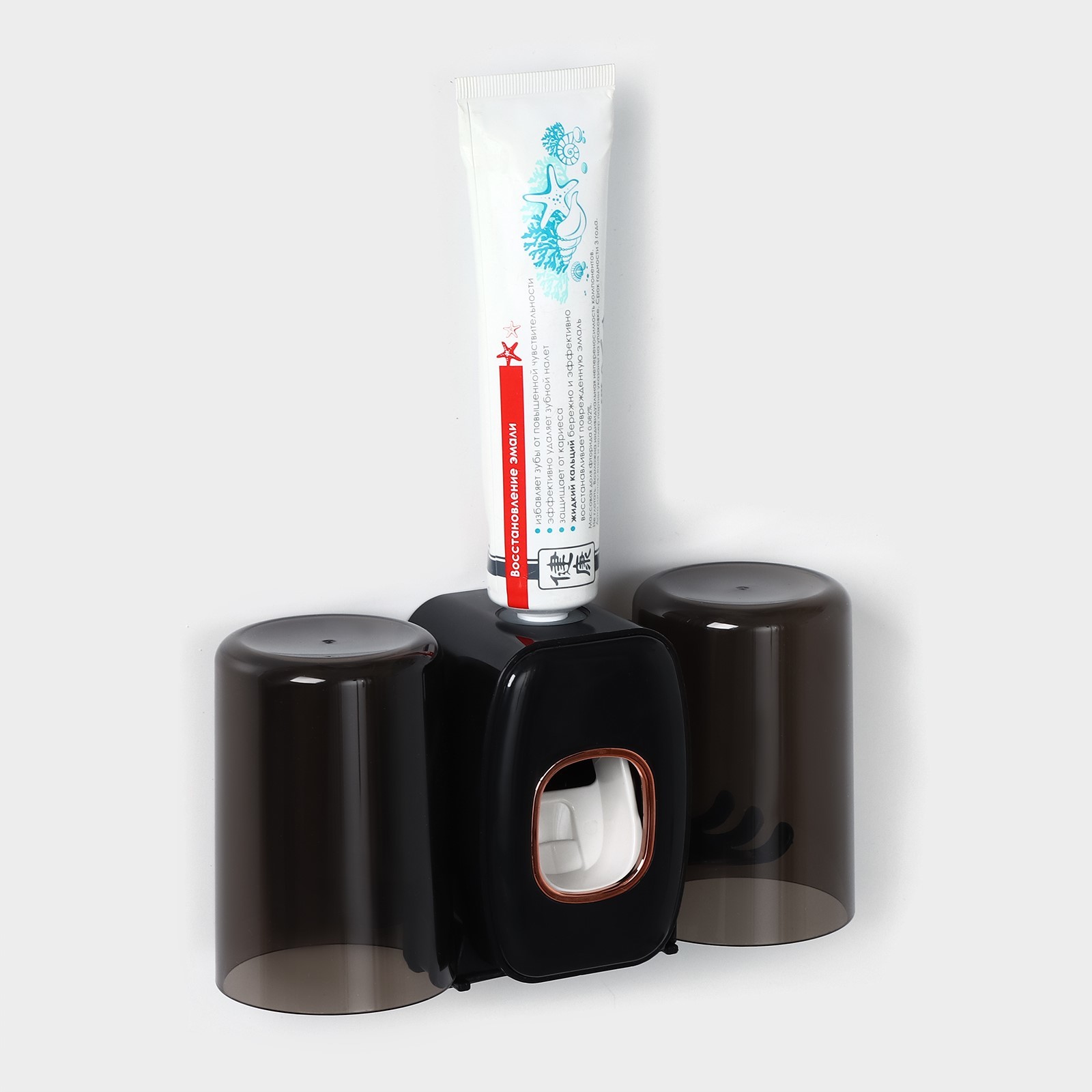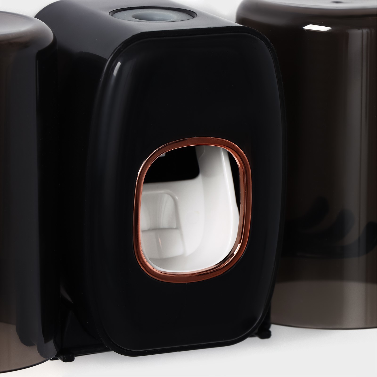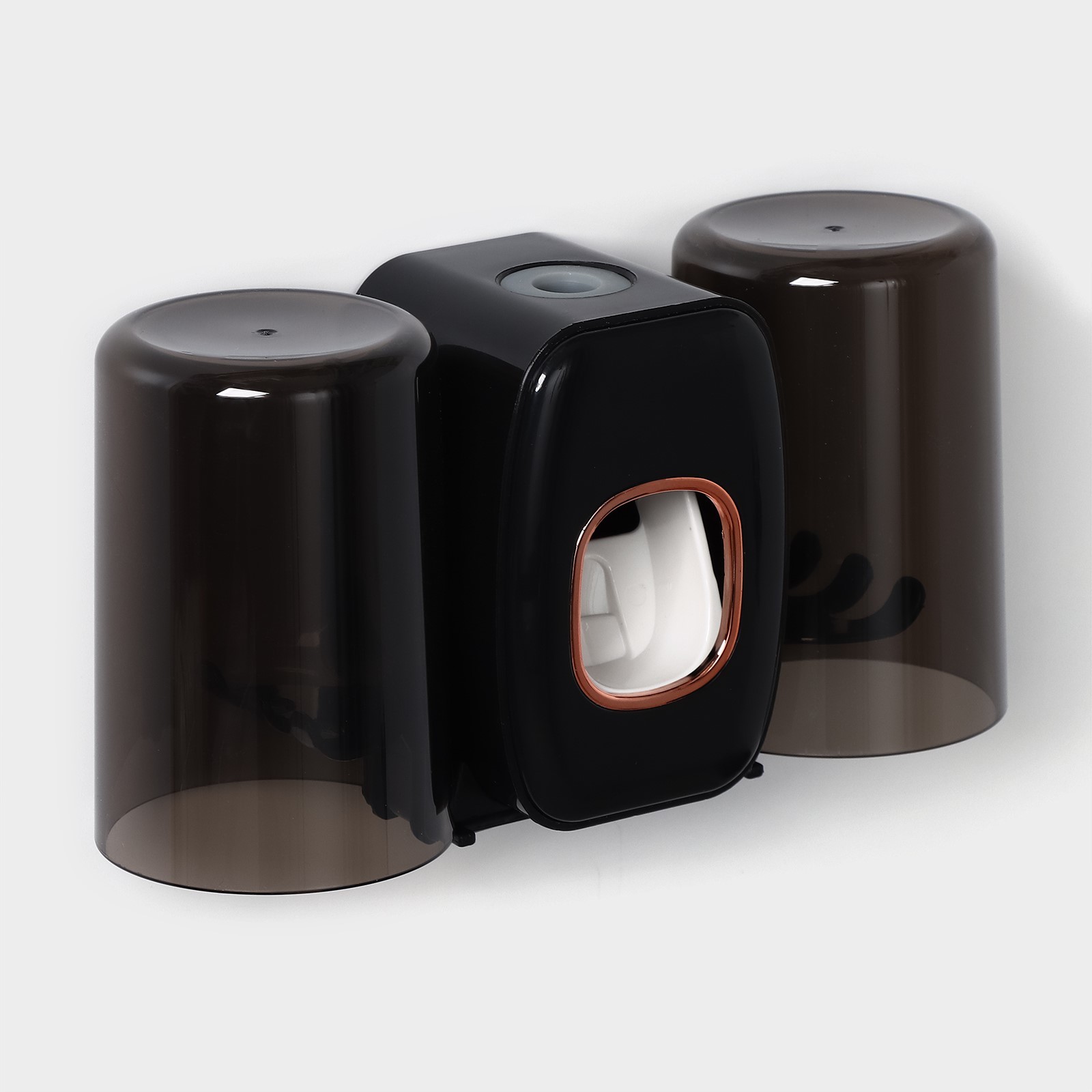 Держатель для зубных щёток с выдавливателем для зубной пасты, стакан 2 шт, 20x10,2x6,2 см, цвет чёрный