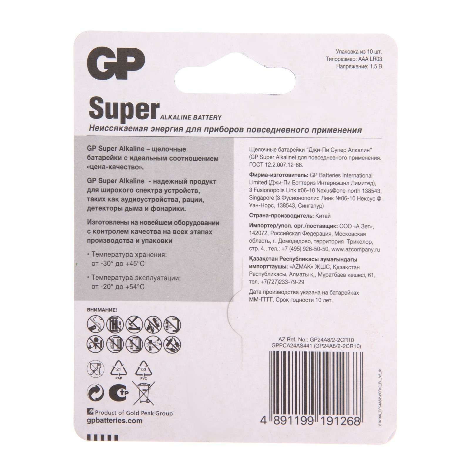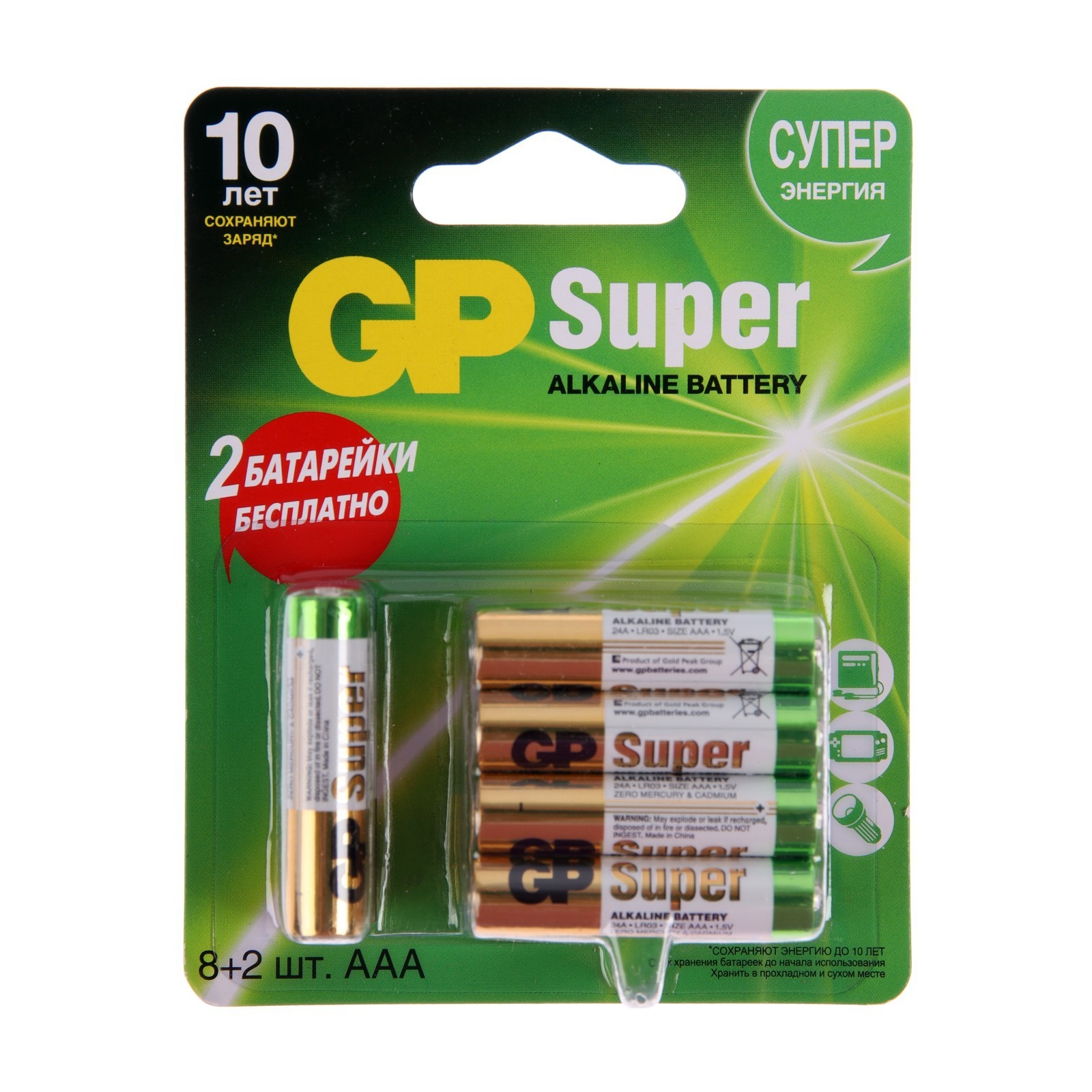 Батарейка алкалиновая Gp Super, Aaa, Lr03-10bl, 1.5в, 8+2 шт.