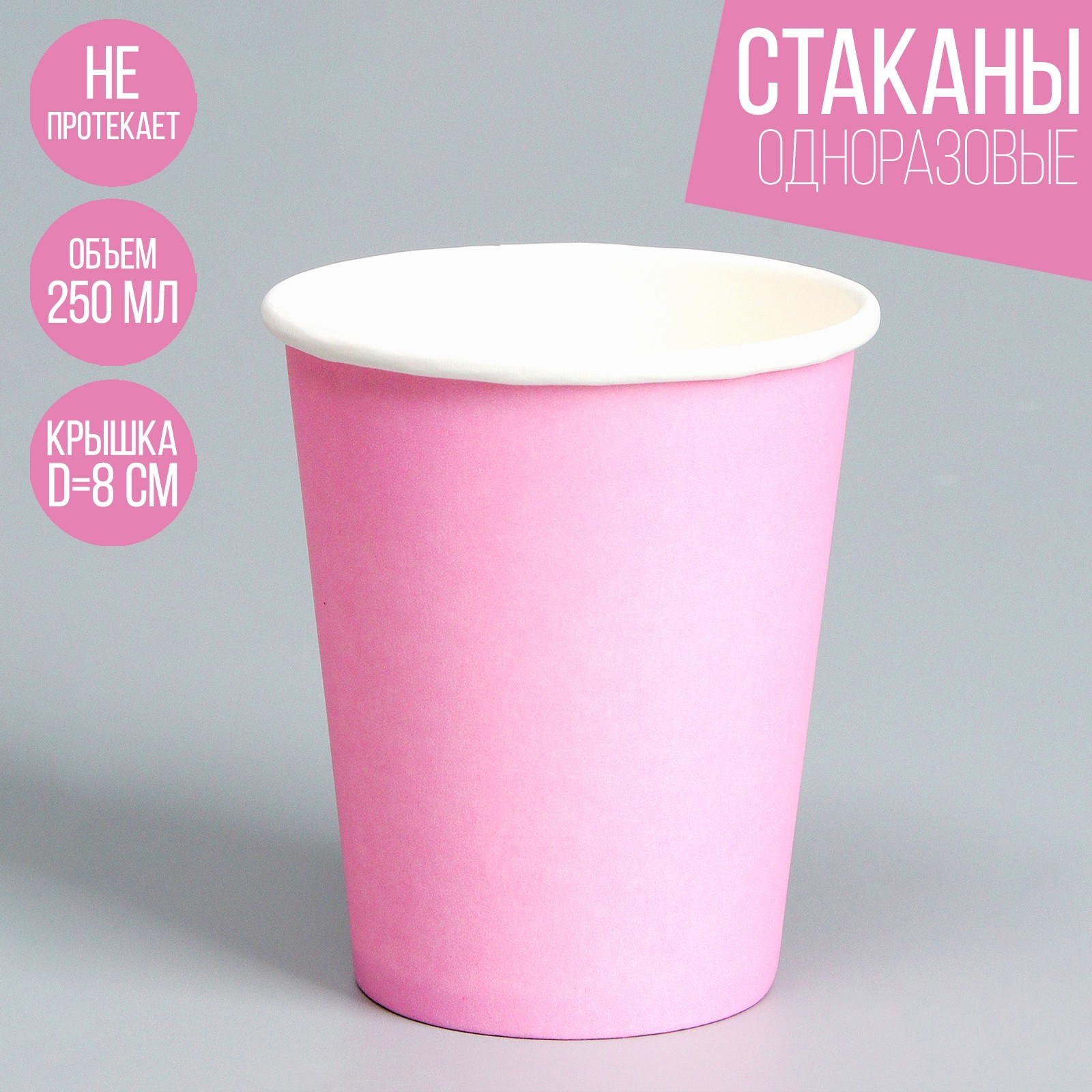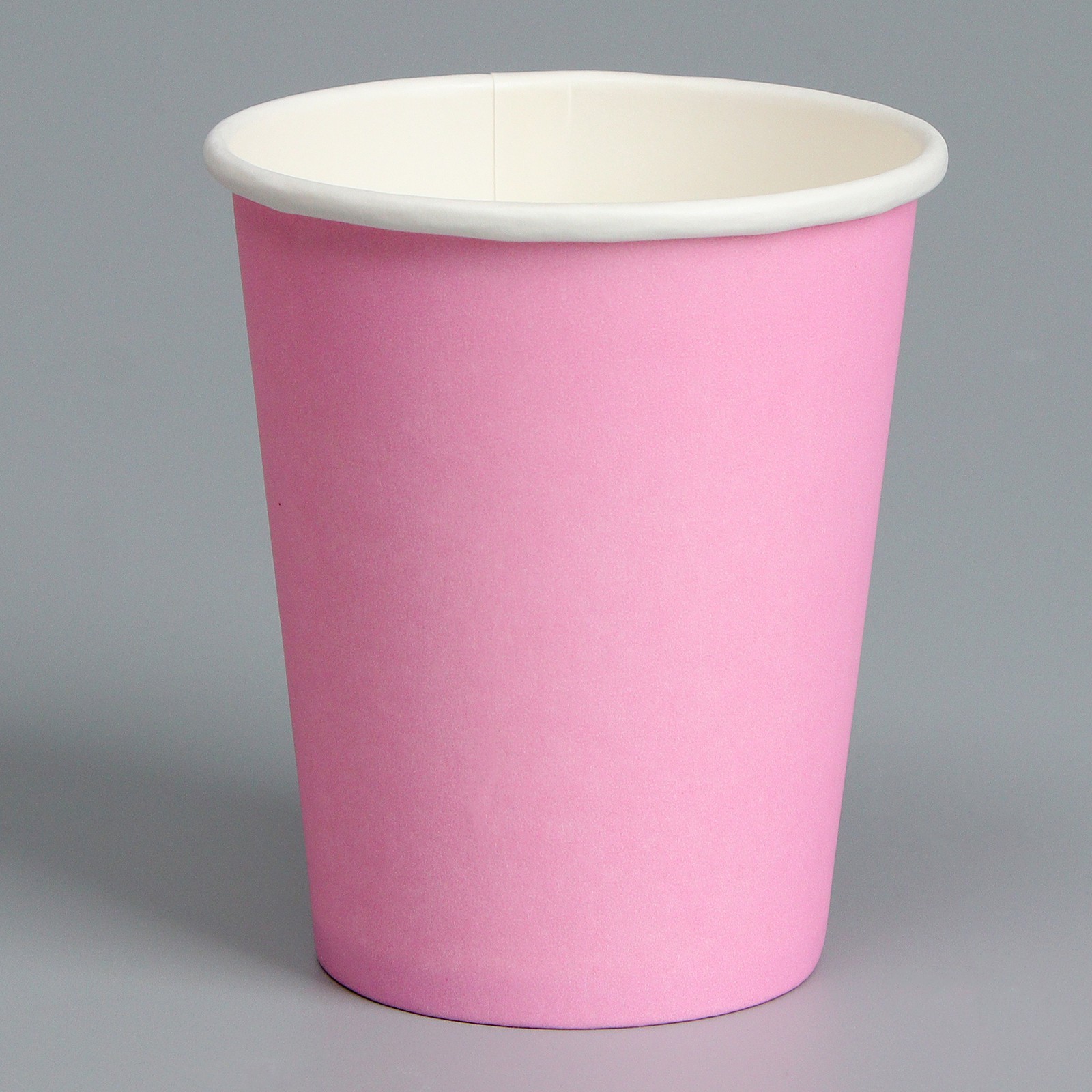 Стакан одноразовый бумажный, однотонный, цвет розовый, 250 мл, 50 шт