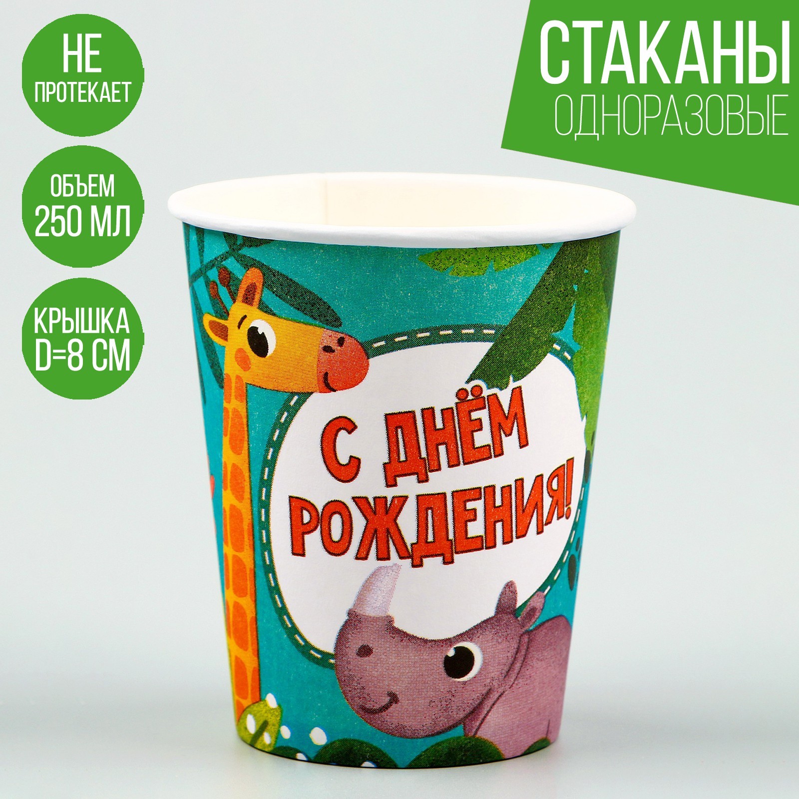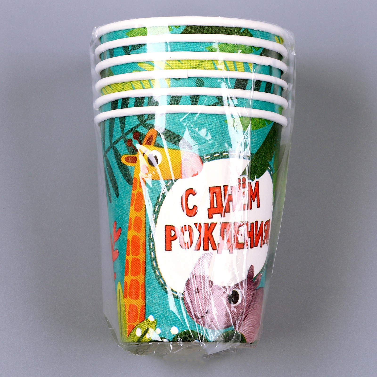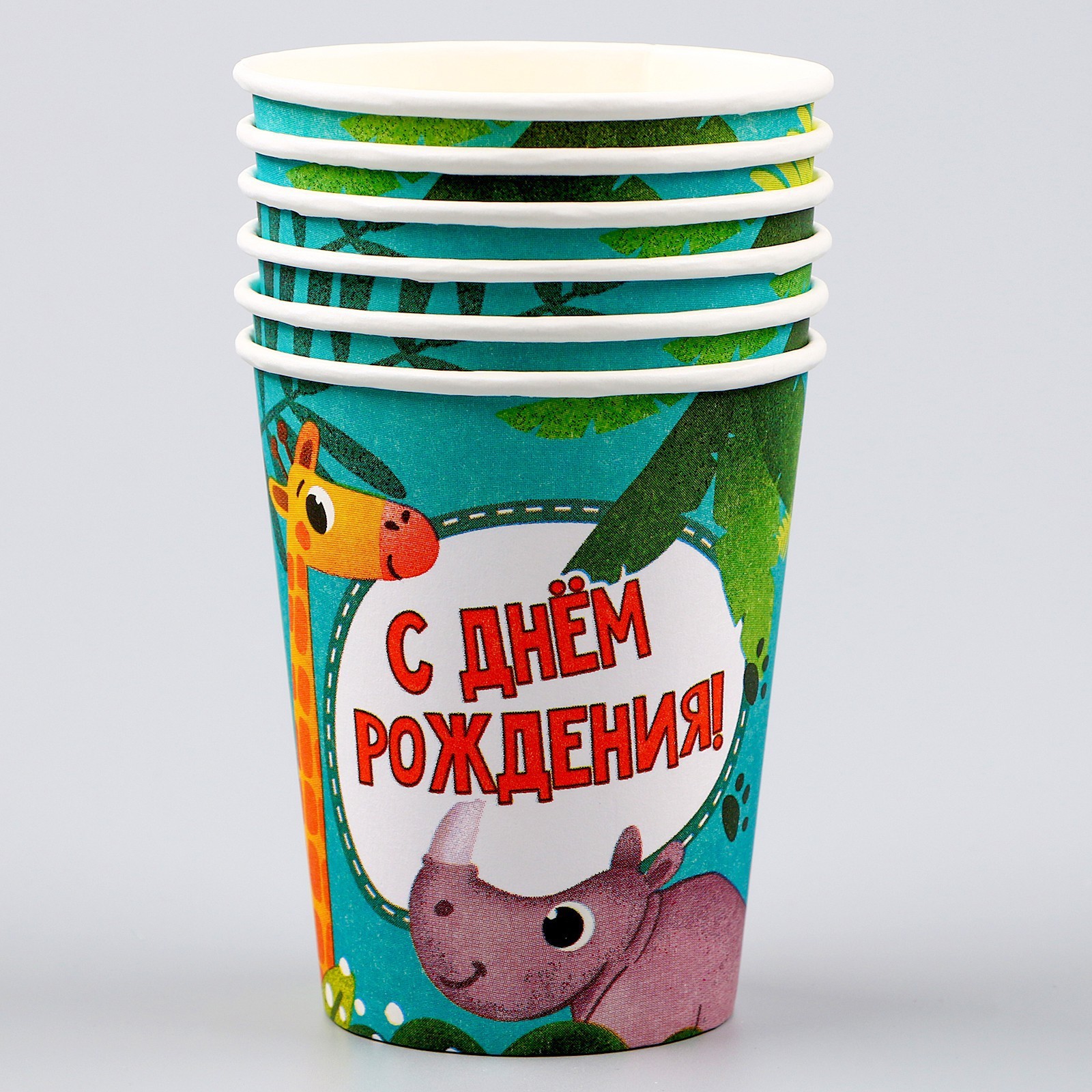 Стакан одноразовый бумажный "с днём рождения"животные, 250 мл, набор 6 штук