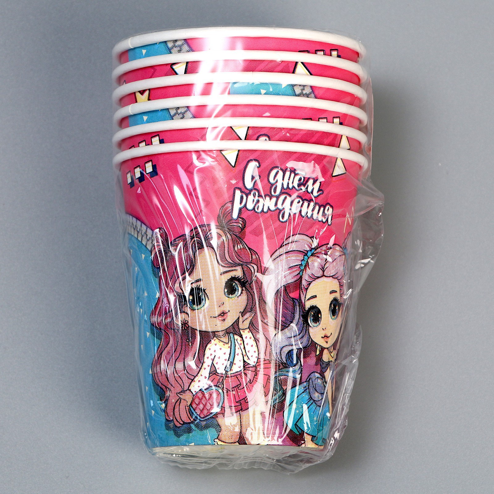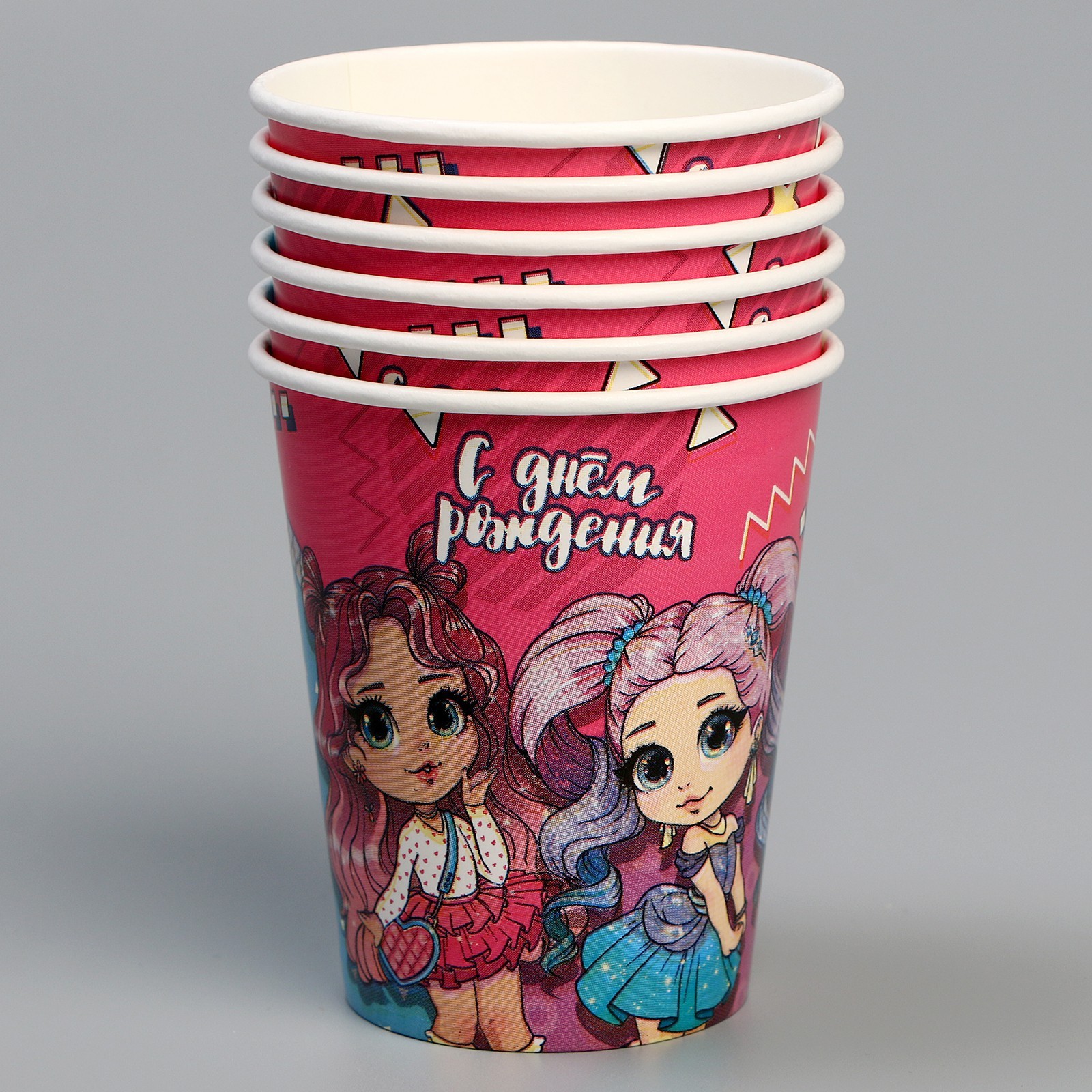 Стакан одноразовый бумажный "красотка" 250 мл, набор 6 штук