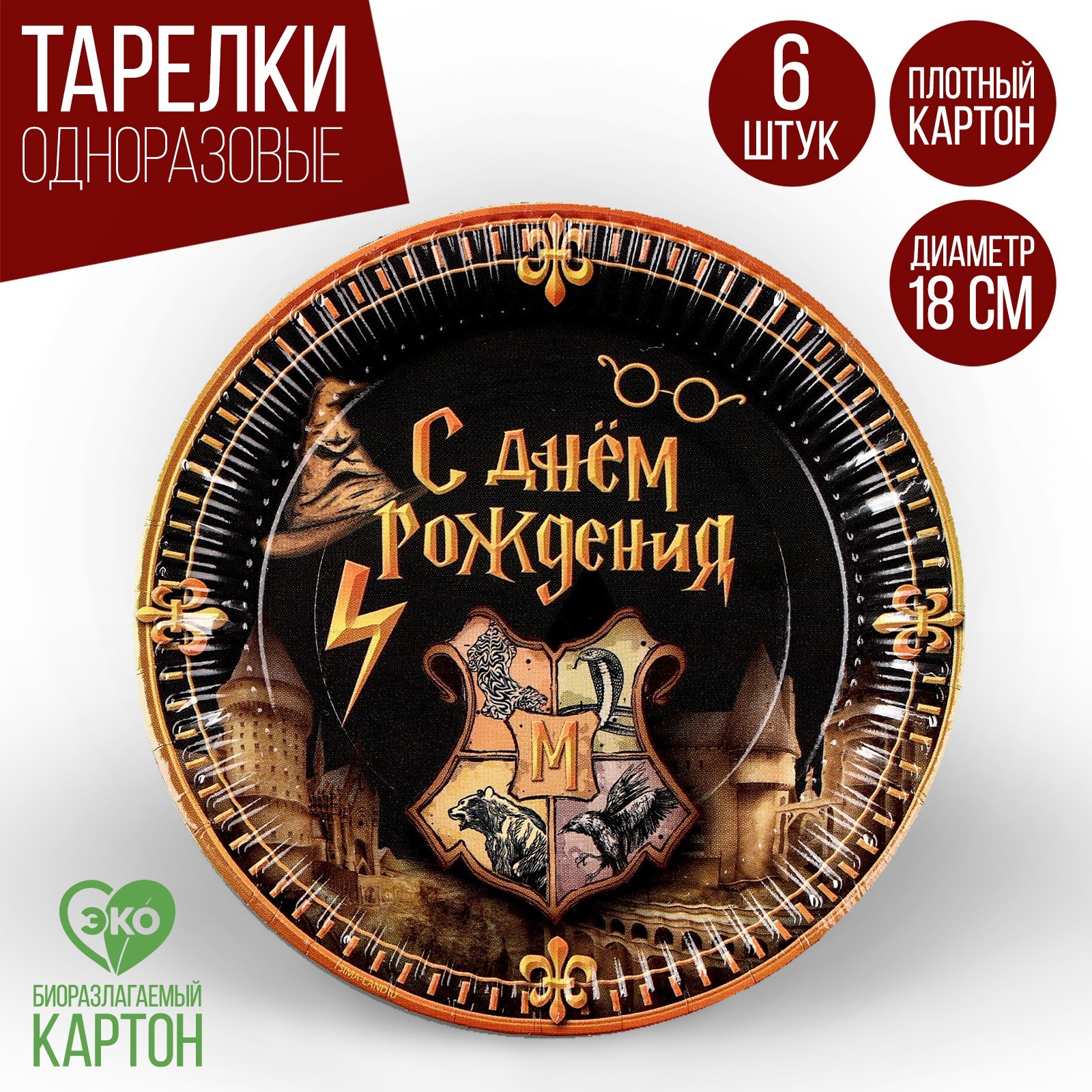 Тарелка одноразовая бумажная "волшебство" 18 см, набор 6 штук
