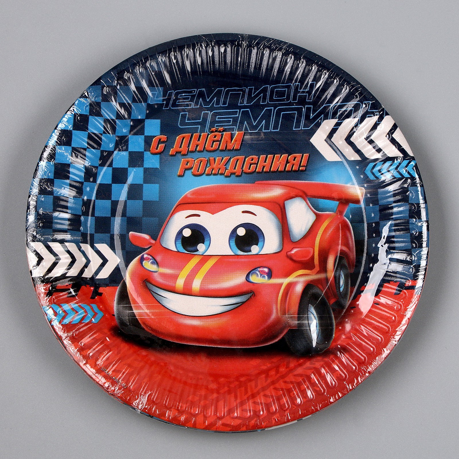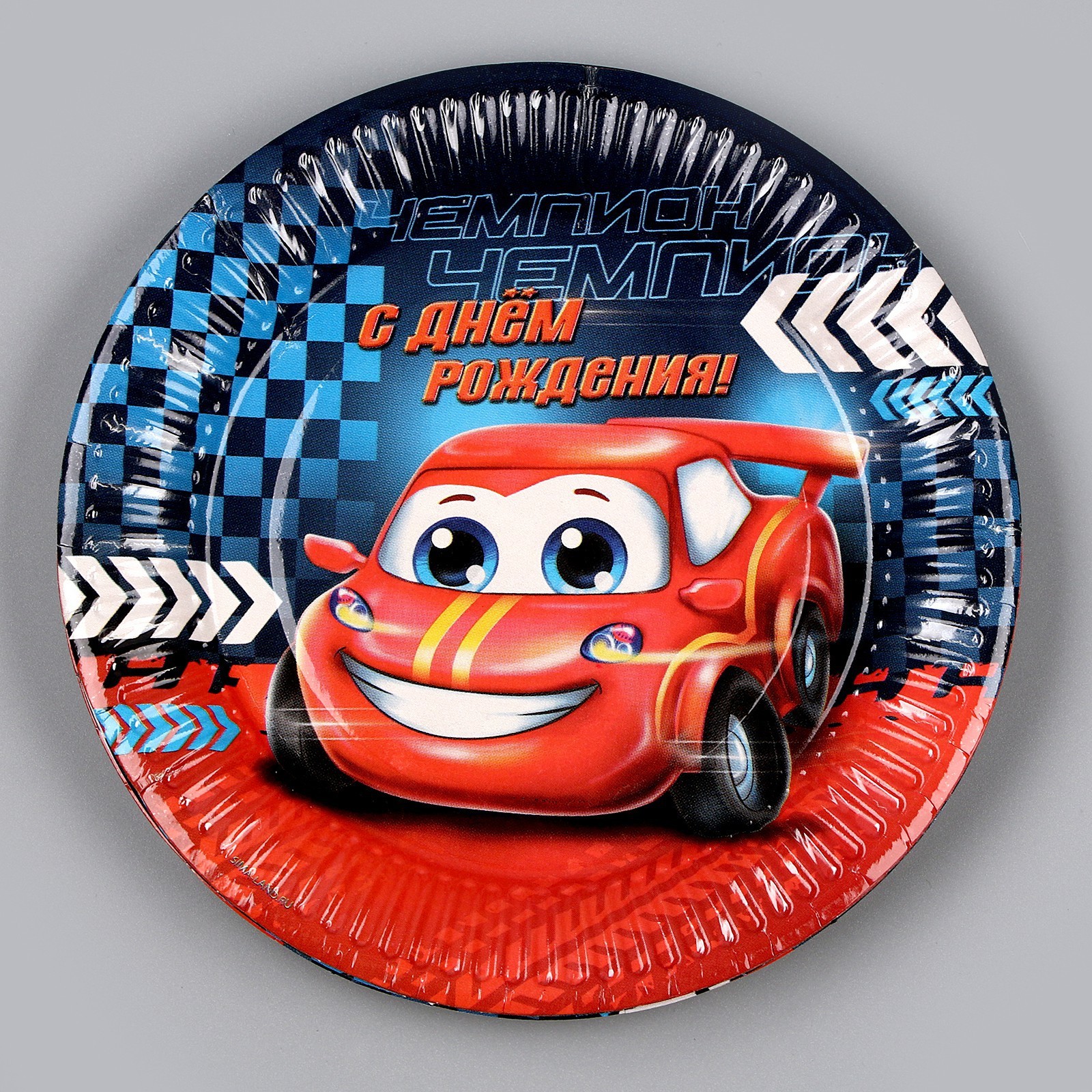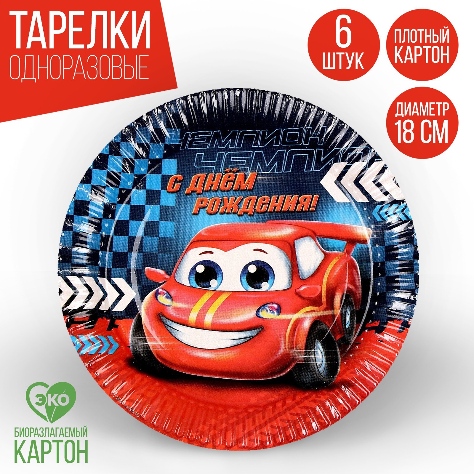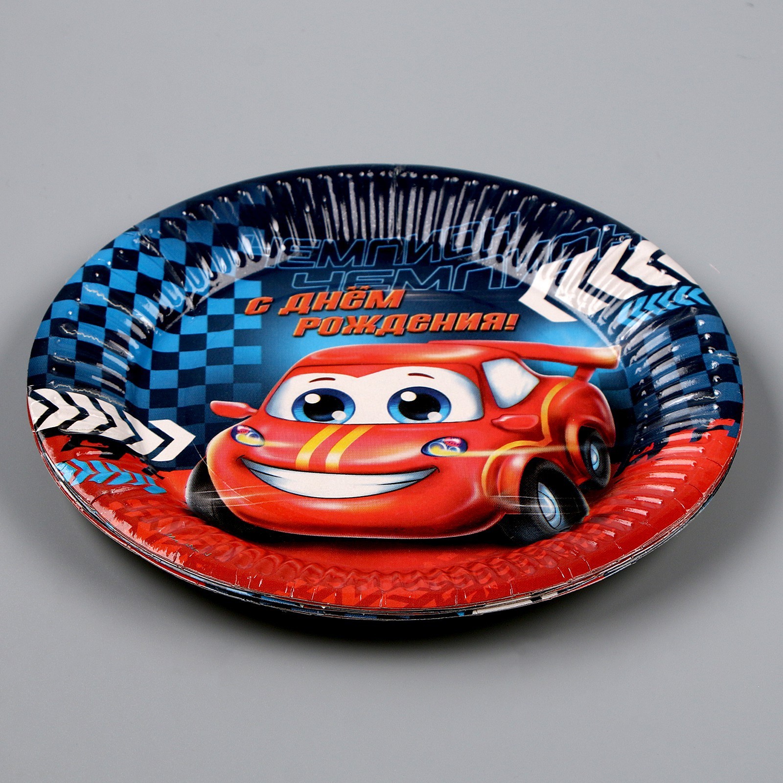 Тарелка одноразовая бумажная "тачка" 18 см, набор 6 штук
