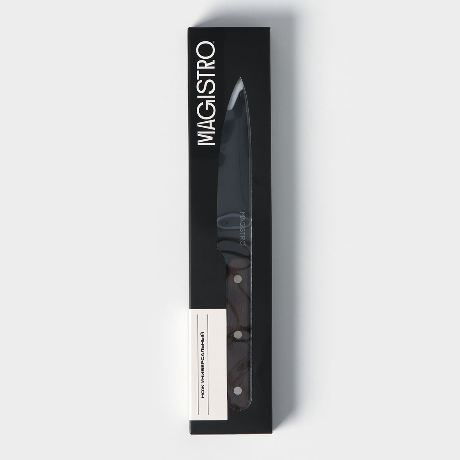 Нож кухонный универсальный Magistro Dark Wood, длина лезвия 12,7 см, цвет чёрный