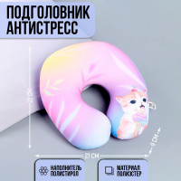 Подушка для путешествий антистресс «котик с мороженым». Подушка для путешествий - необходимый аксессуар для тех, кто много путешествует, проводит много часов за рулем и просто в переездах. Она идеально поддерживает шею, предотвращая неприятные ощущения и усталость, а также дает возможность отдохнуть даже в самых трудных условиях. Подушка легко помещается в ручную кладь и занимает минимум места, поэтому можно взять в самолет, машину, и даже в поездку на поезде. Цвет: Розовый Для кого: Унисекс Вид: Кошка, кот Материал: Полиэстер Особенности: Антистресс Особенности: Для авто Особенности: Подголовники Температурное ограничение: Нет Тематика игрушки: Наземные животные  развернуть описание ▼