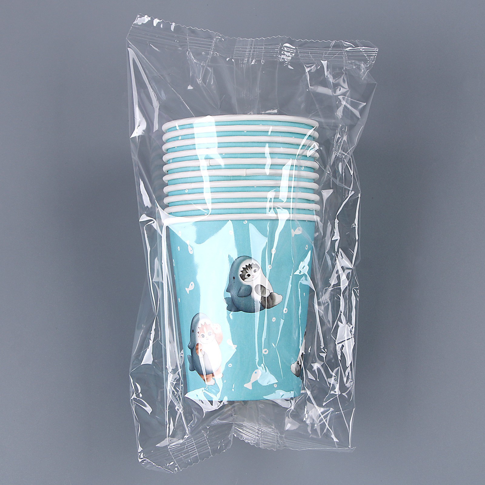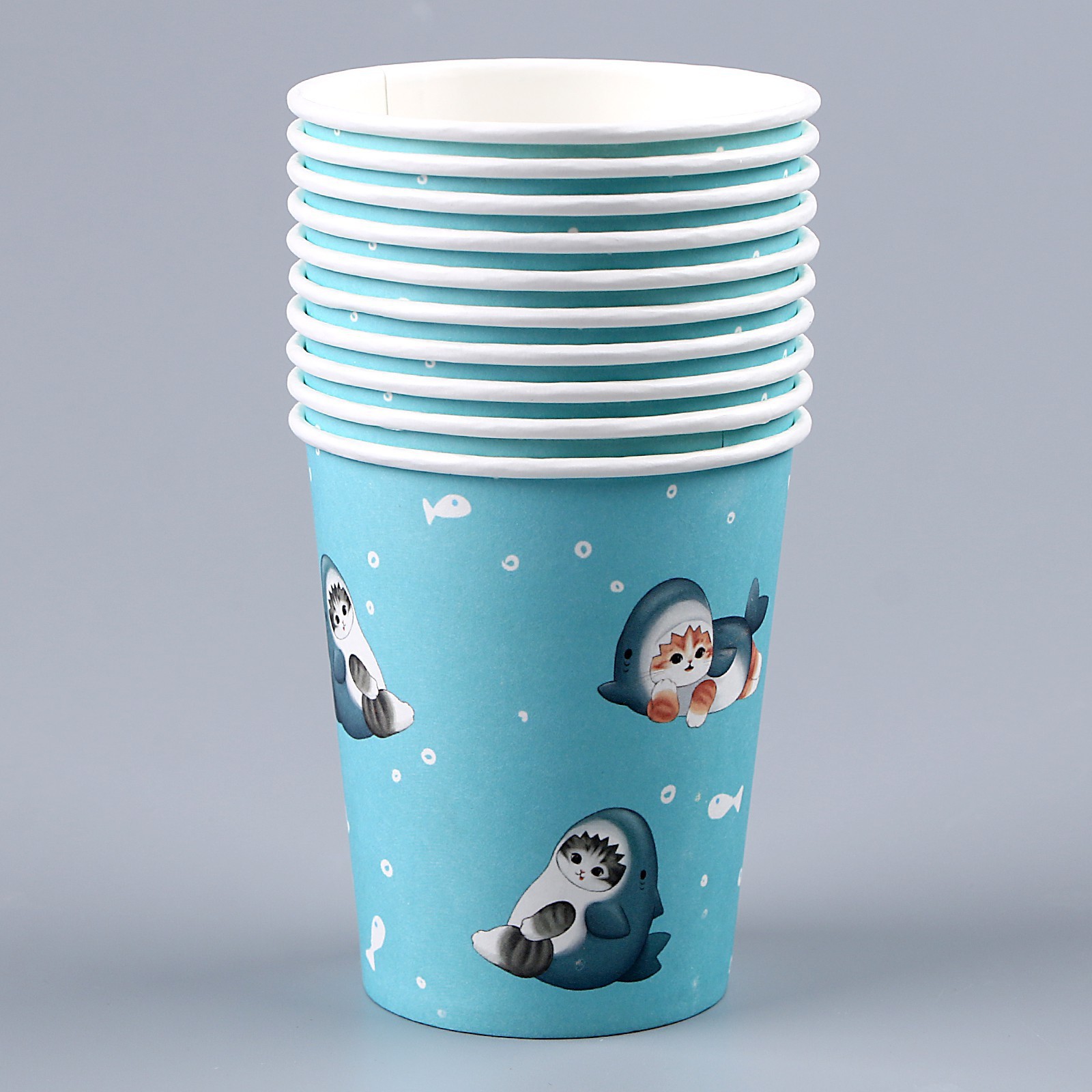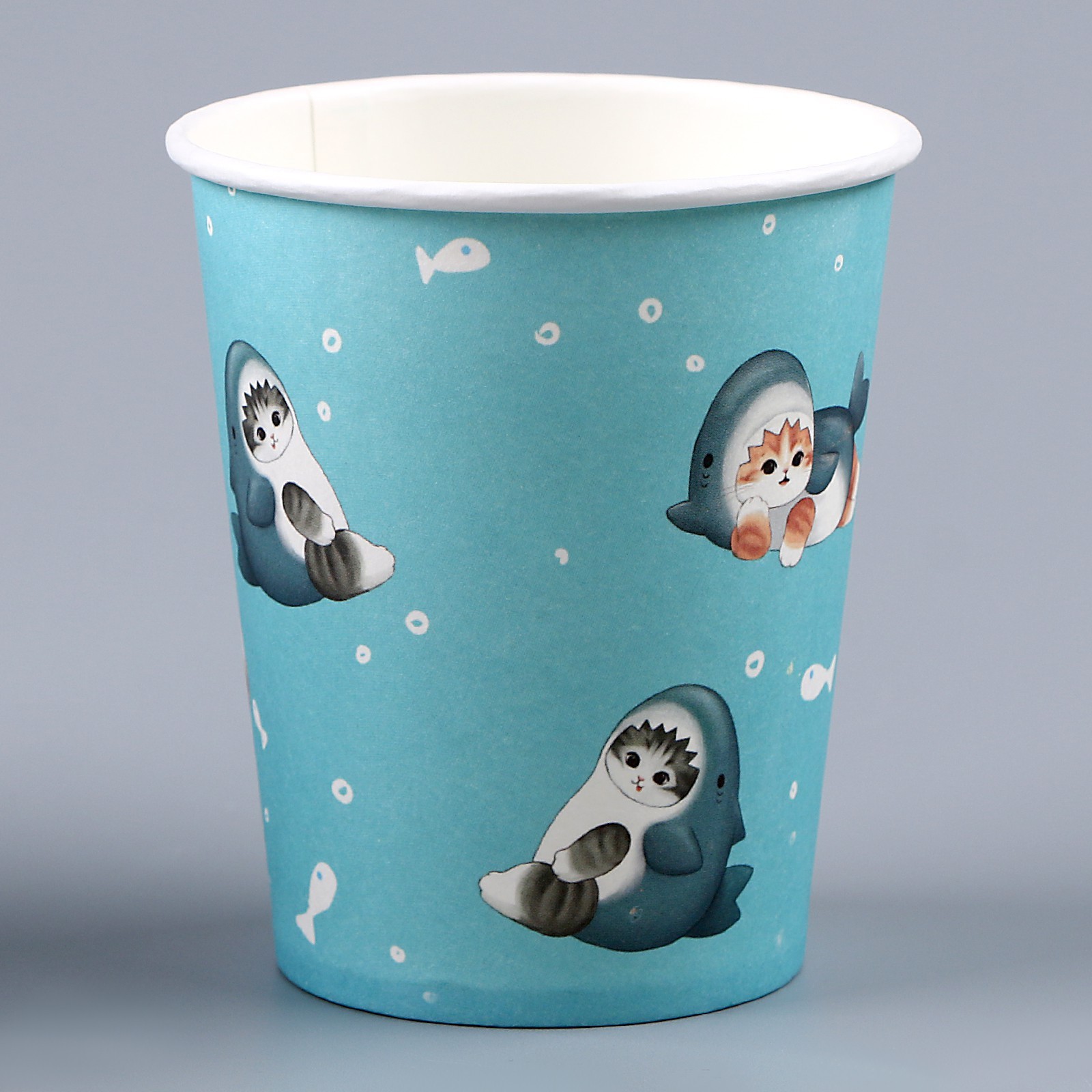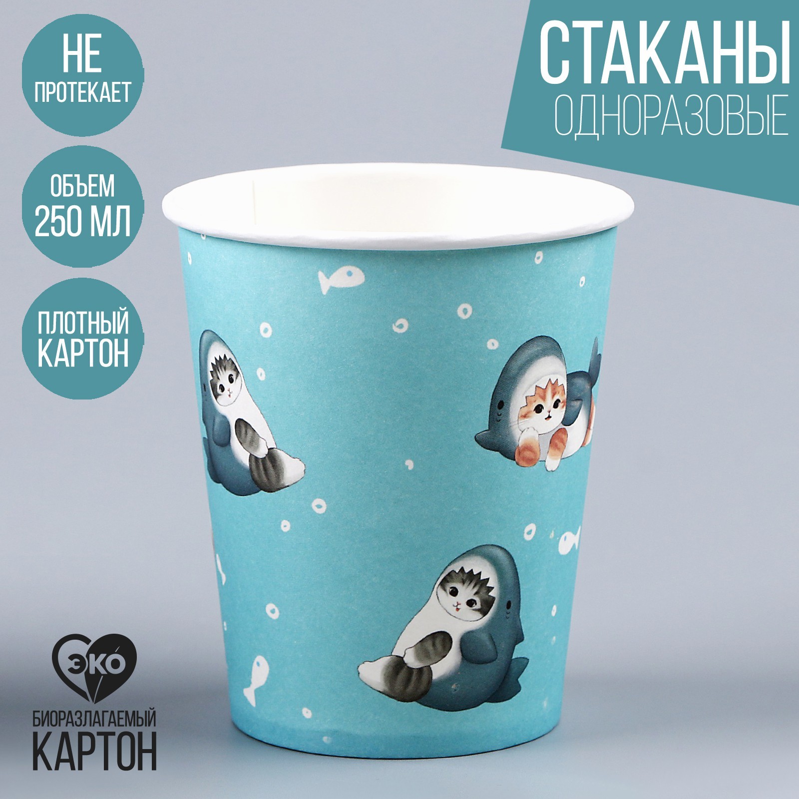 Стакан одноразовый бумажный "котики", акула, 250мл