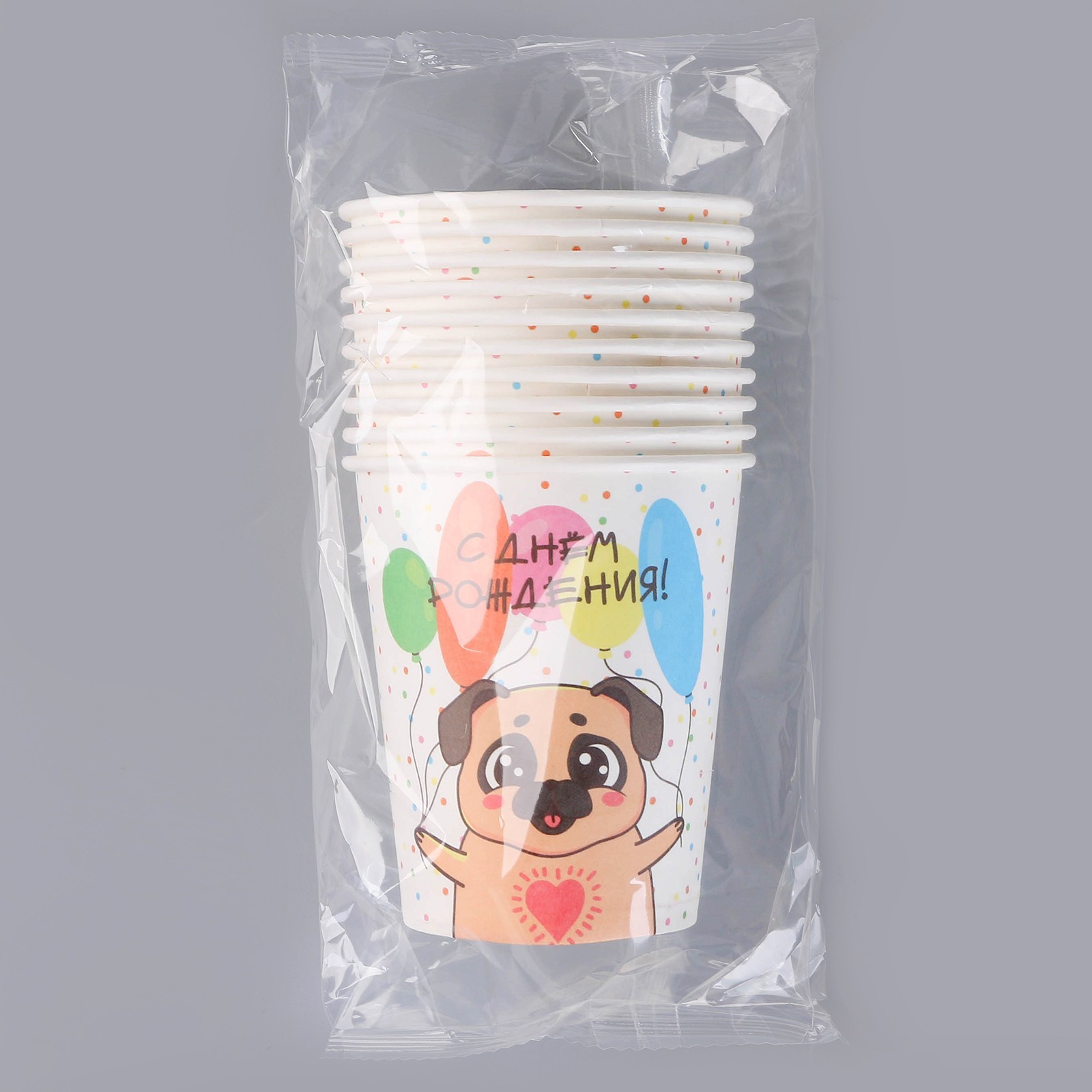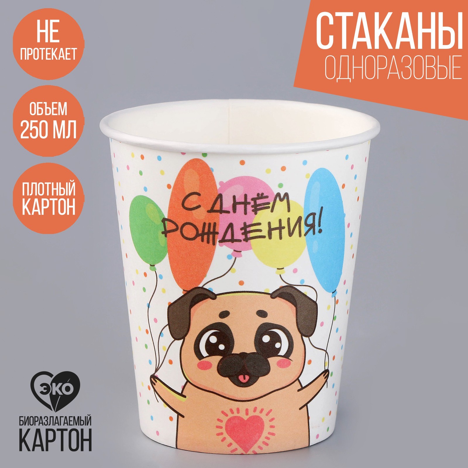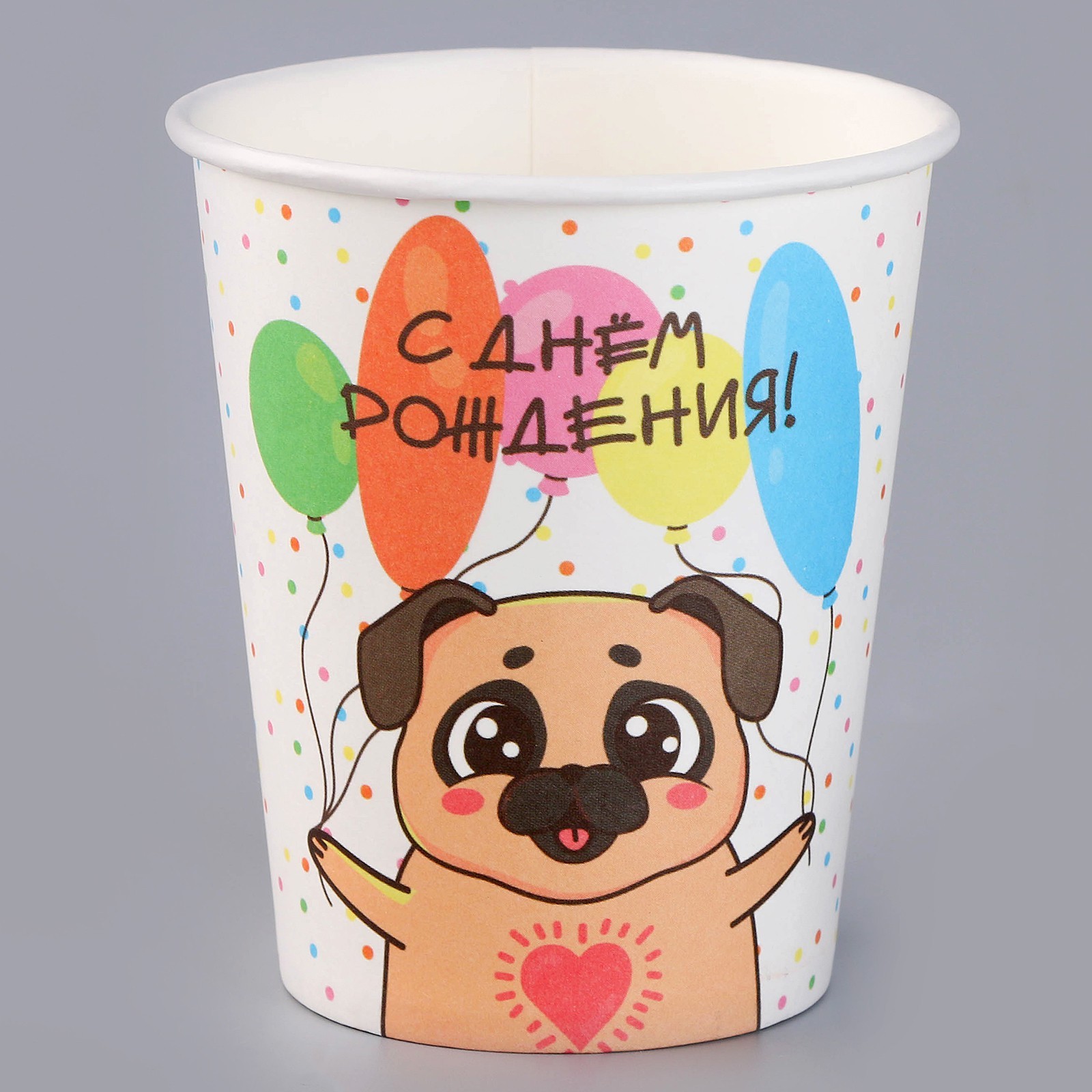 Стакан одноразовый бумажный "с днём рождения",собака", 250мл