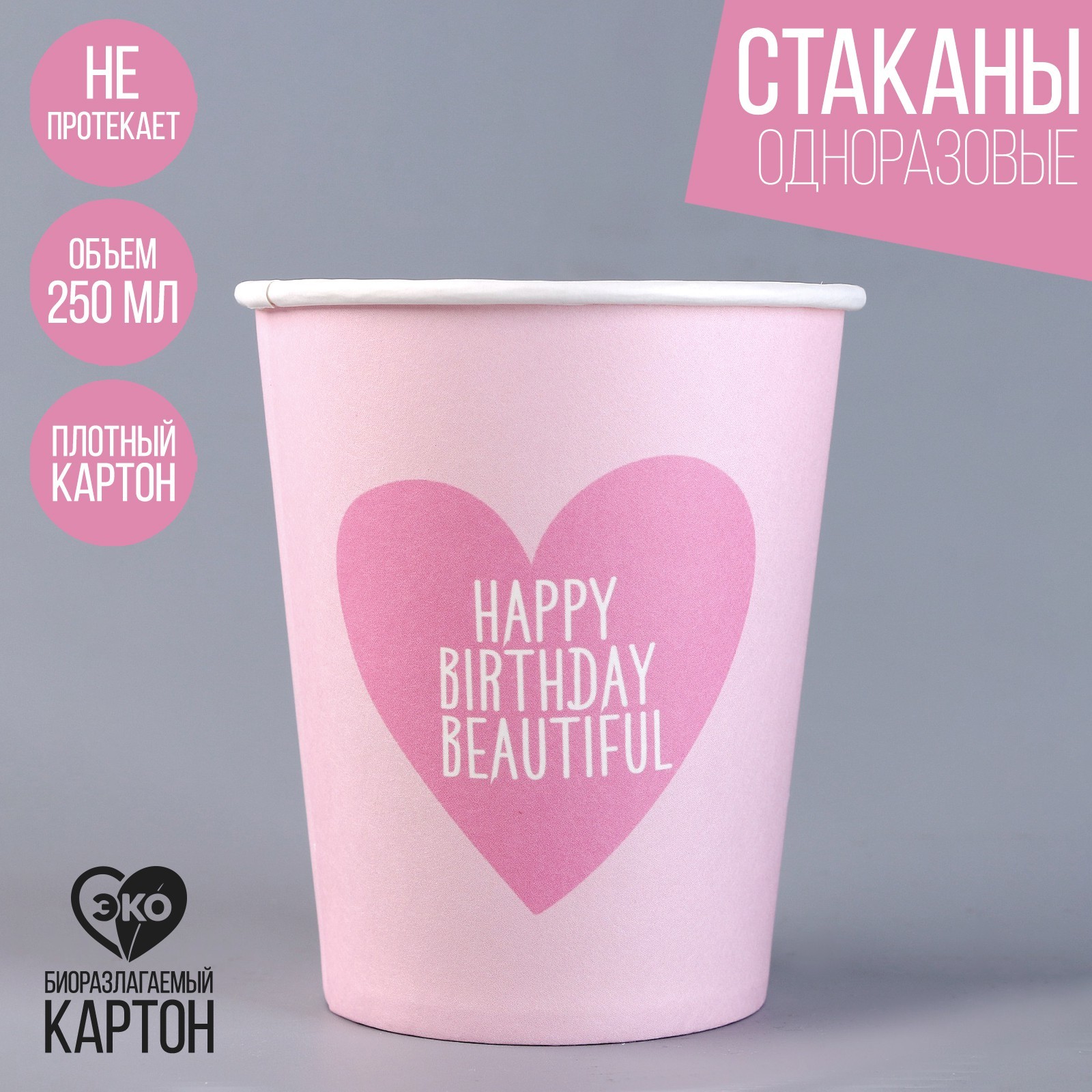 Стакан одноразовый бумажный "с днём рождения",красотка", 250мл