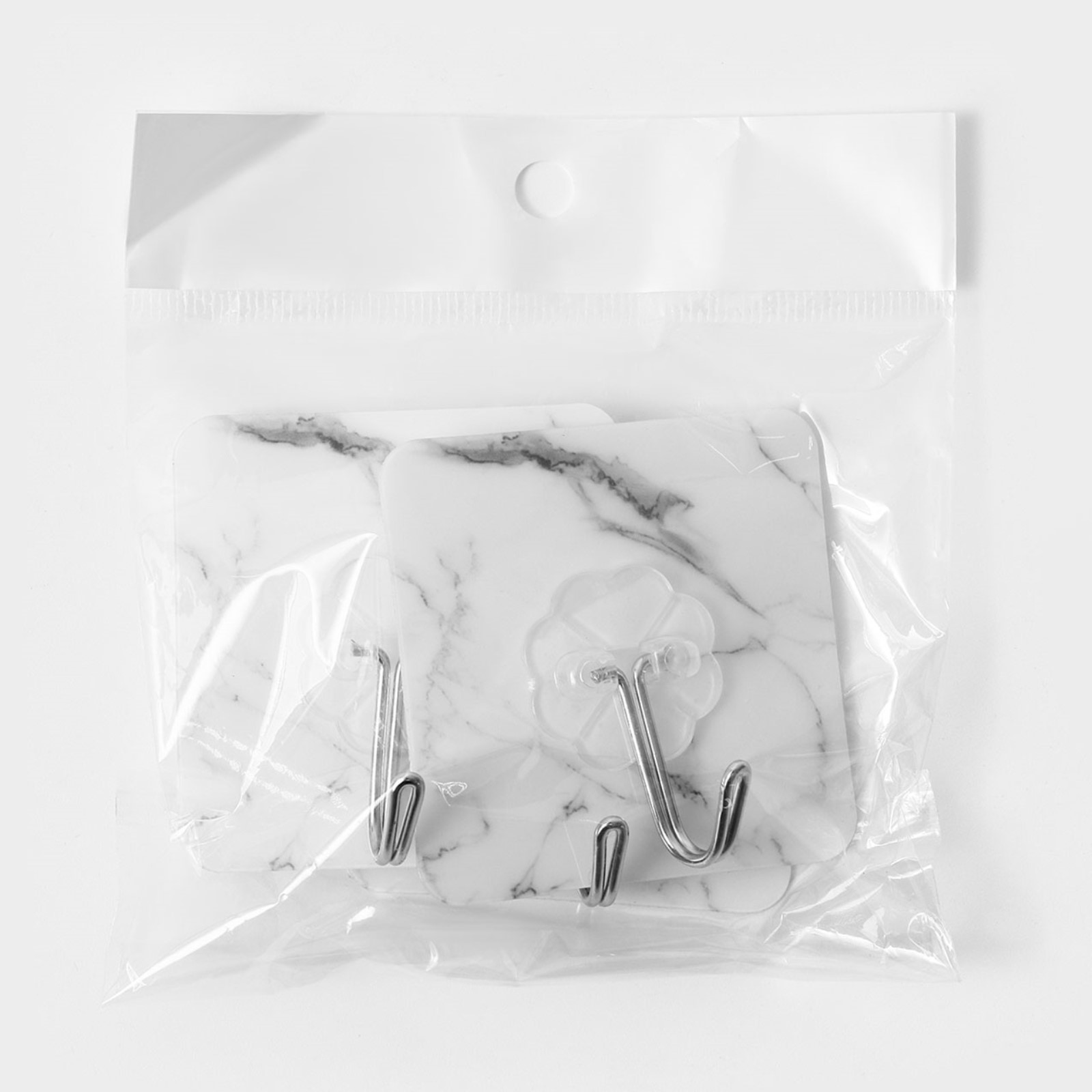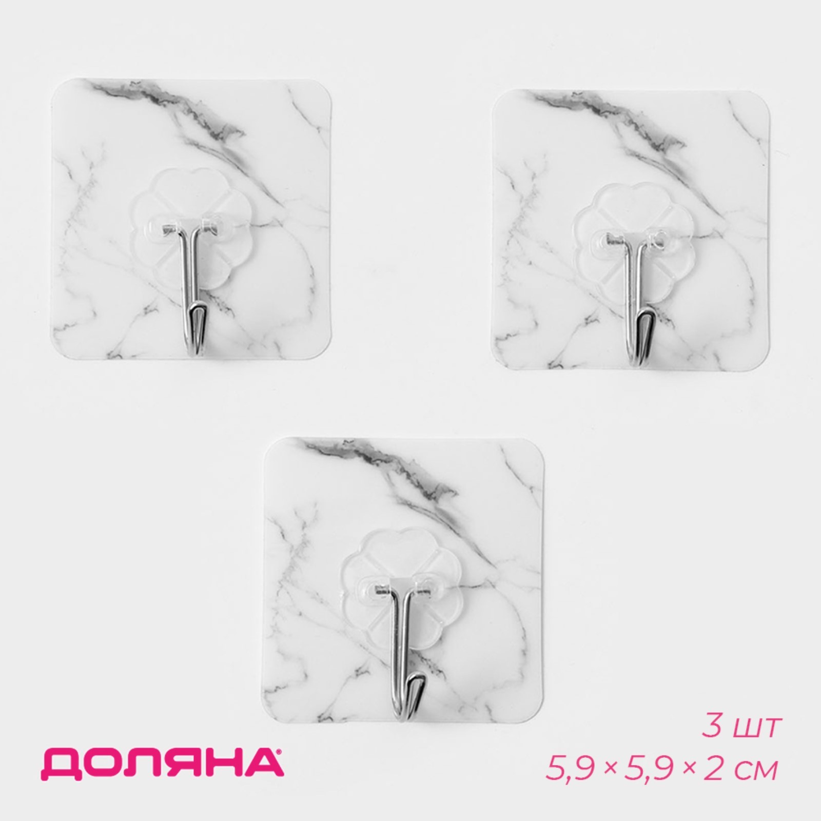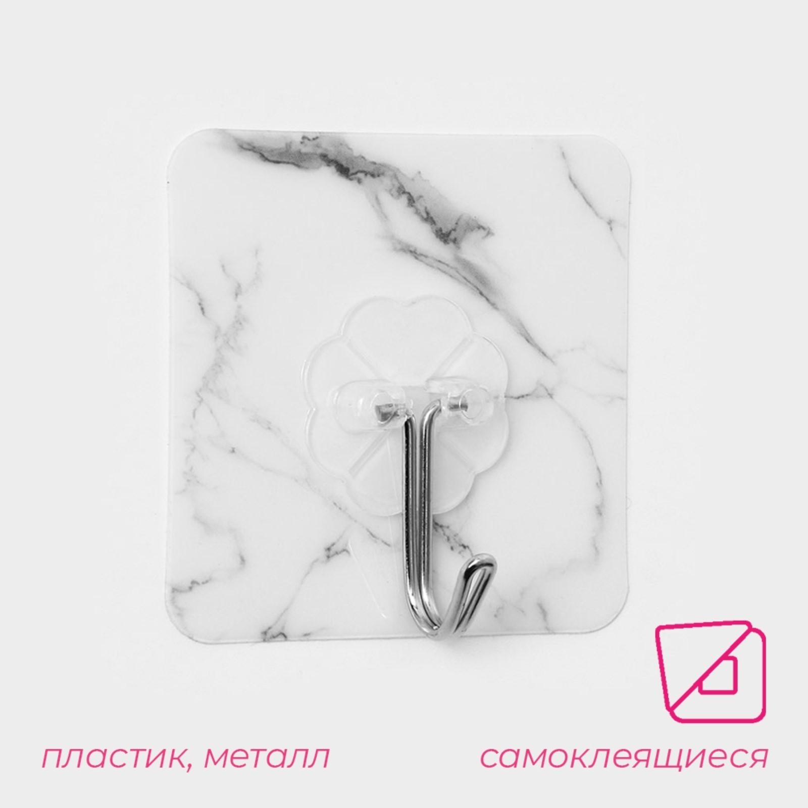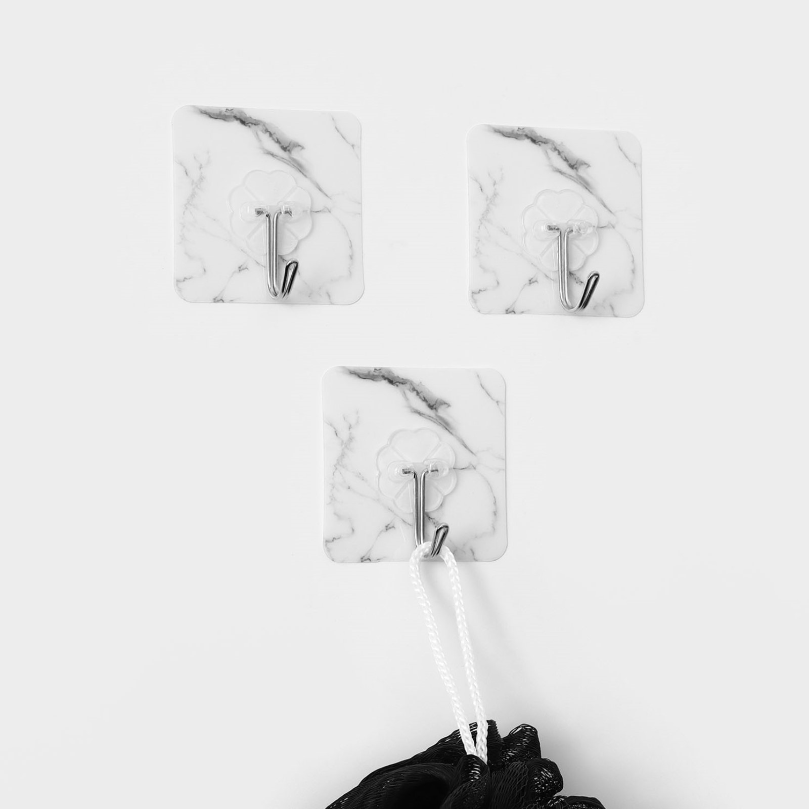 Крючок самоклеящийся «мрамор», 3 шт, цвет белый