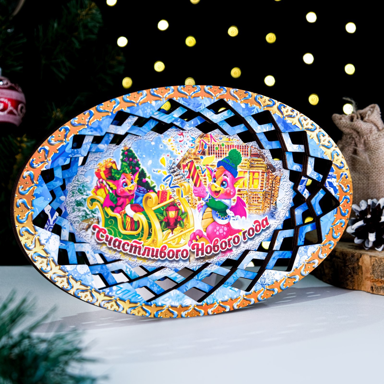 Тарелка конфетница овальная "символ года 2024. драконы на санях"