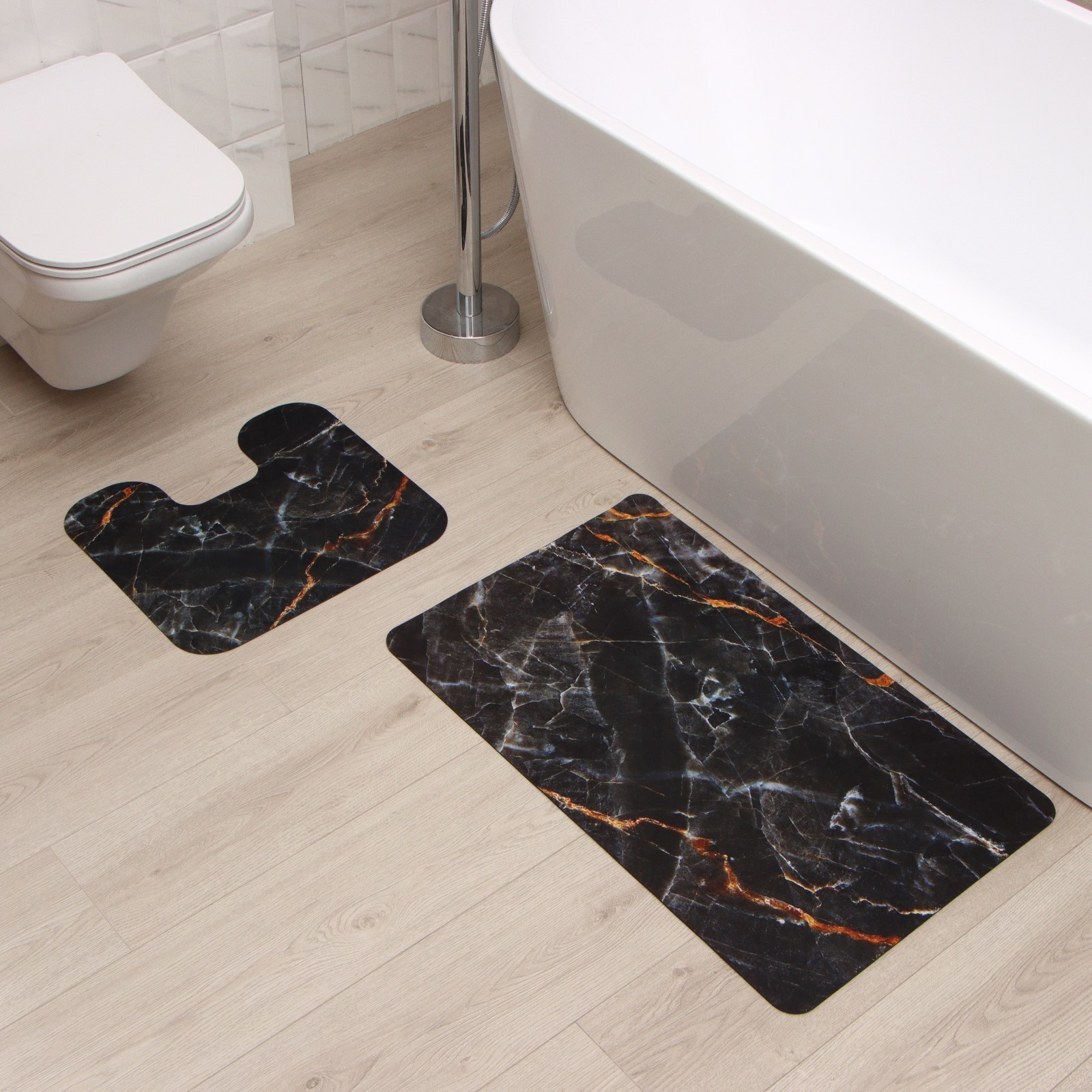 Набор ковриков для ванной этель "роскошь" 2 шт, 48х78 см, 40х45 см. Цвет: Чёрный Форма: Прямоугольная Форма: Фигурная Длина, см: 45 Длина, см: 78 Ширина, см: 40 Ширина, см: 48 Тематика: Мрамор Вид упаковки: PVC-пакет Материал: Резина Декоративные элементы: Без элементов Комплектация: 2 ковра Тип коврика: В ванную комнату Материал основы ковра: Резина Фактура материала: Гладкий Способ производства: Машинный Назначение: Для ванной Назначение: Взрослым Сезон: Лето Сезон: Осень Сезон: Зима Сезон: Весна Форма: Фигурная Форма: Прямоугольник  развернуть описание ▼