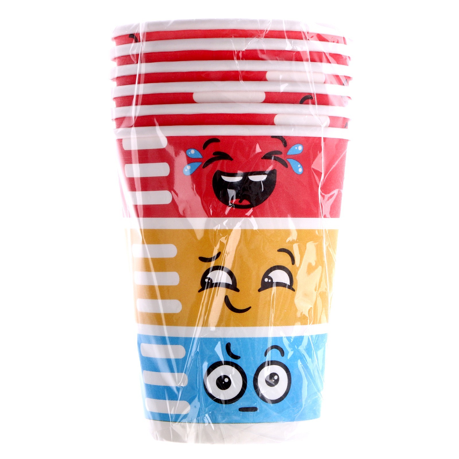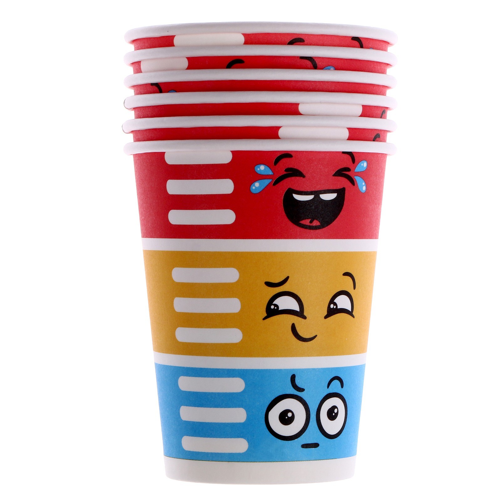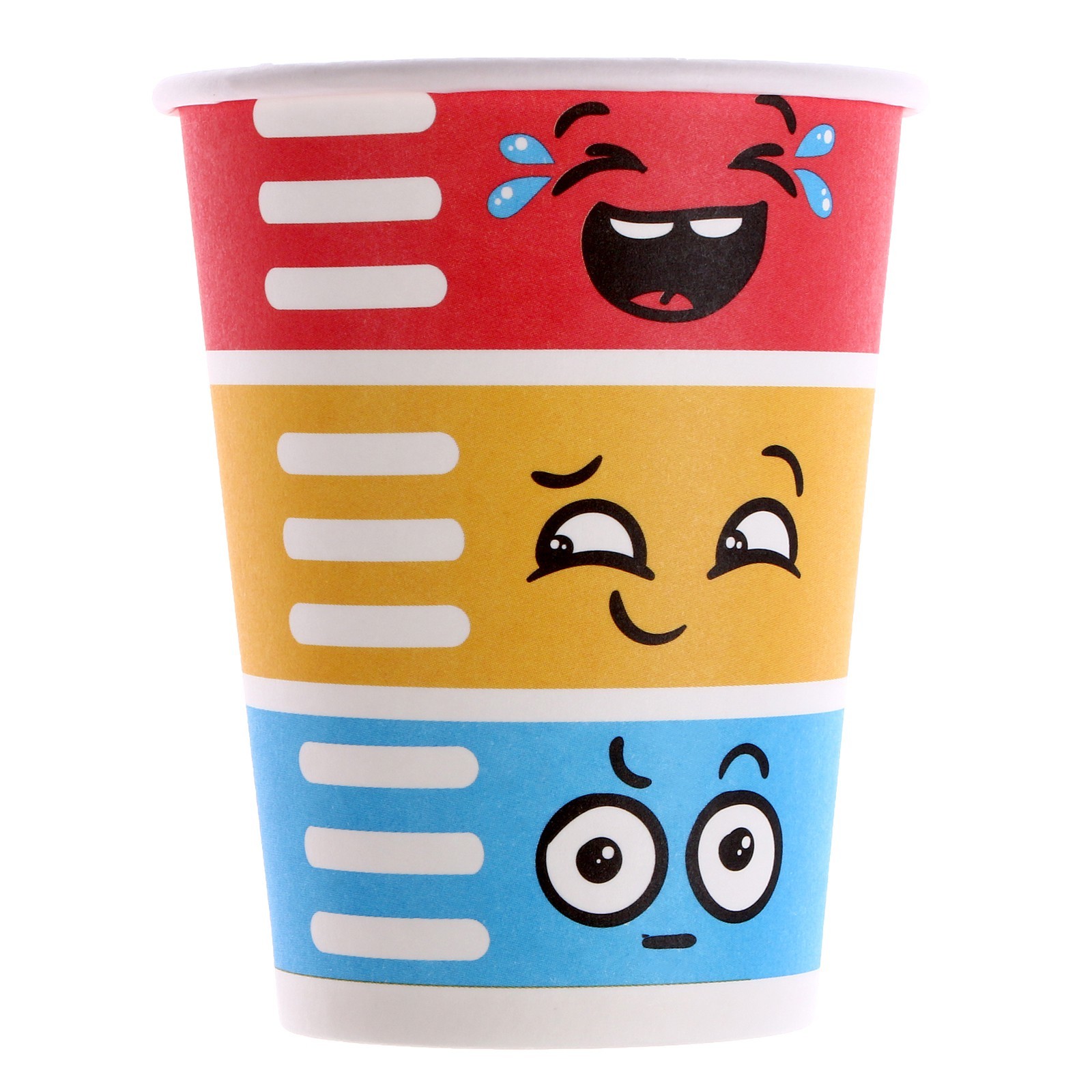 Набор бумажных стаканов «эмоции», в т/у плёнке, 6 шт., 250 мл.   Посуда изготовлена из высококачественной бумаги без добавления поликарбоната, меламина и поливинилхлорида. Такие изделия безопасны, они не «раскисают» при взаимодействиями с продуктами питания.  Преимущества бумажной посудыЭкологически безвредна: полностью разлагается в естественной среде. Гигиеничность и безопасность: при изготовлении используется первичный и вторичный картон с ламинацией, крафт-бумага и пищевые красители. Выдерживает высокую и низкую температуру. Сохраняет вкус еды и напитков, не выделяя вредных веществ, при нагреве. Тарелки и стаканы из бумаги приятнее на ощупь, чем аналогичная посуда из пластика. Такую посуду не надо мыть и невозможно разбить. Где применяется бумажная посуда:детские заведения и мероприятия, организация питание на свежем воздухе, точки продажи фастфуда, летние кафе и бистро, вендинг и офисы, доставка обедов.  Цвет: Разноцветный Диаметр, см: 9 Количество слоёв: 1 В наборе, шт.: 6 Объём, мл: 250 Материал: Бумага Вид: Стакан Температурное ограничение: Нет  развернуть описание ▼